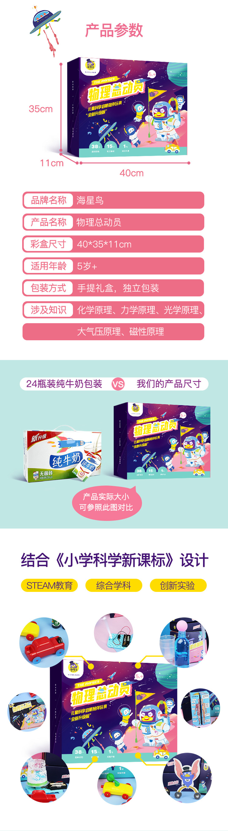 海星鸟物理总动员实验盒子 5岁+ 38个物理实验 科学实验小制作 探索科学奥秘