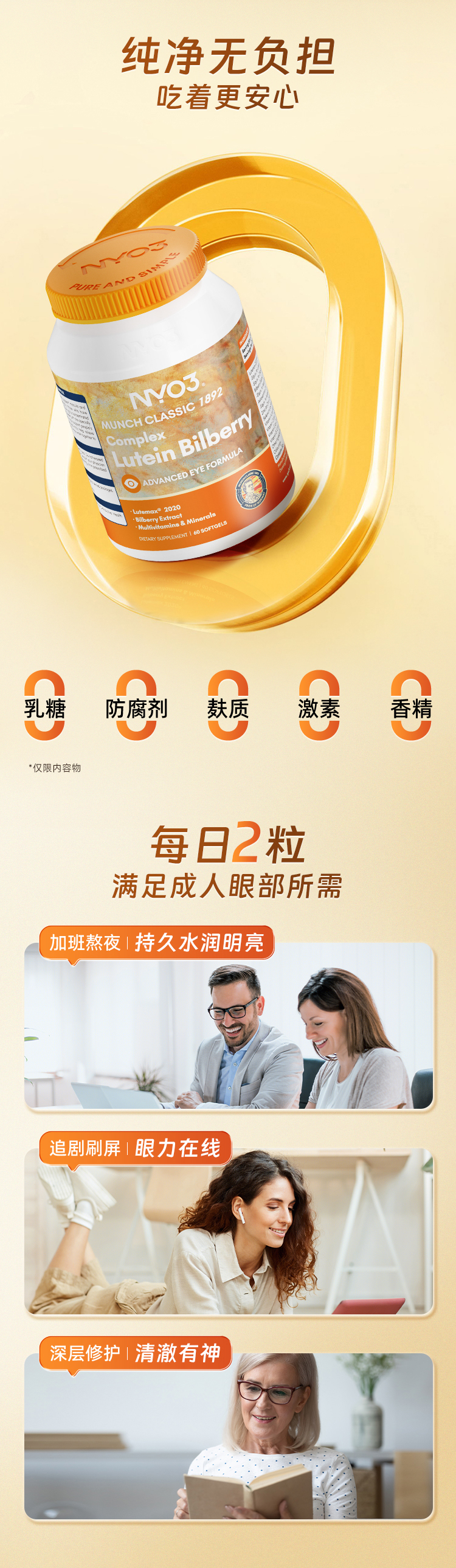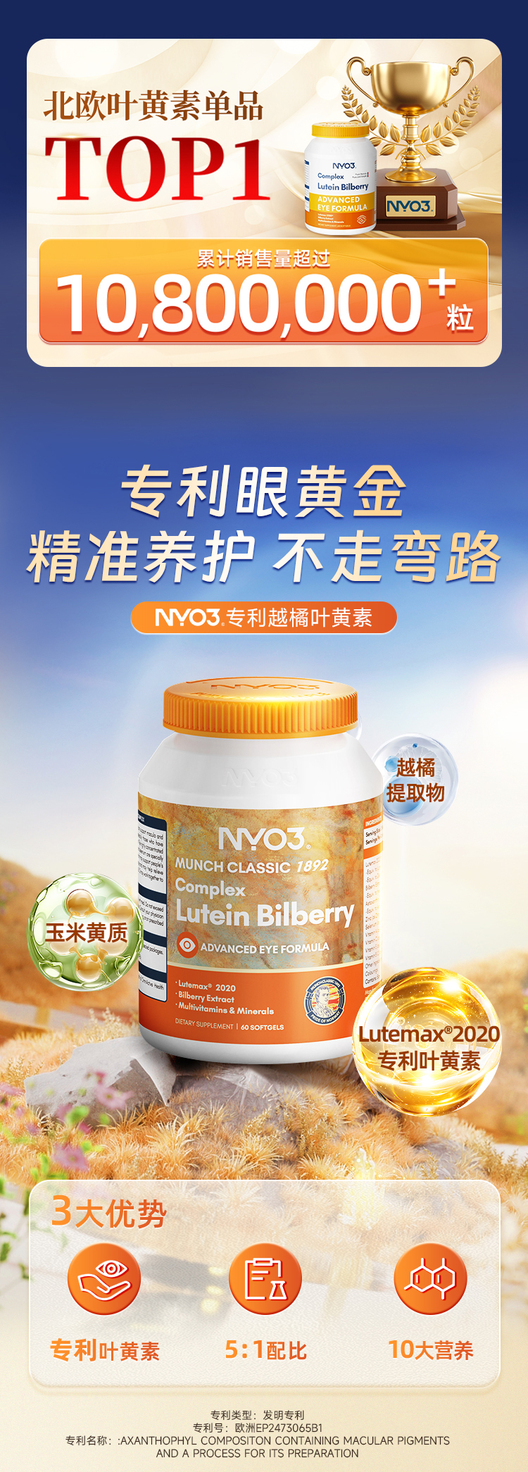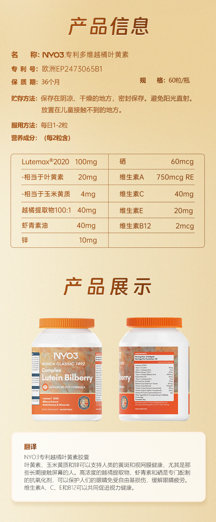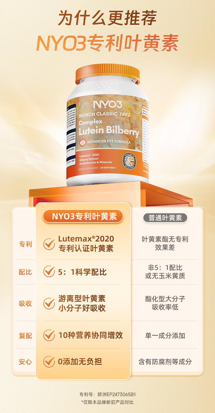 NYO3诺威佳官方旗舰店挪威进口多维越橘专利叶黄素胶囊眼睛成人中老年眼底营养素