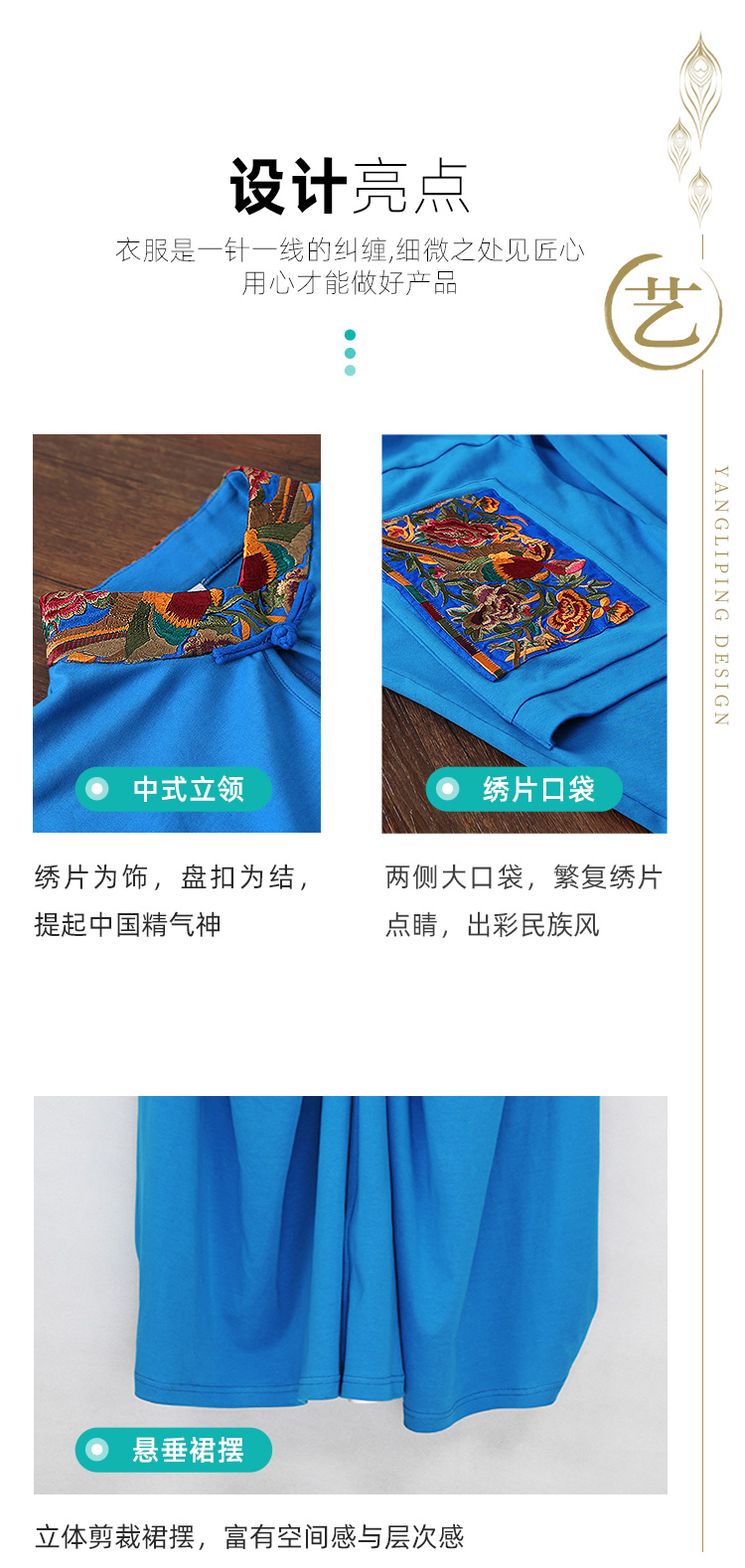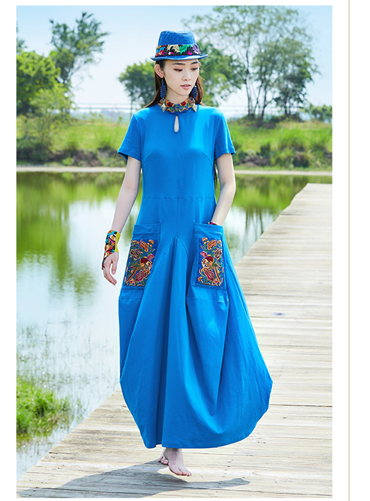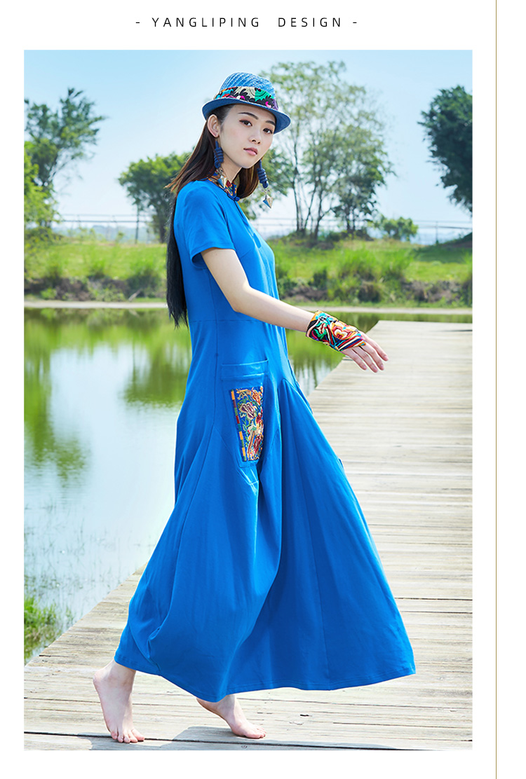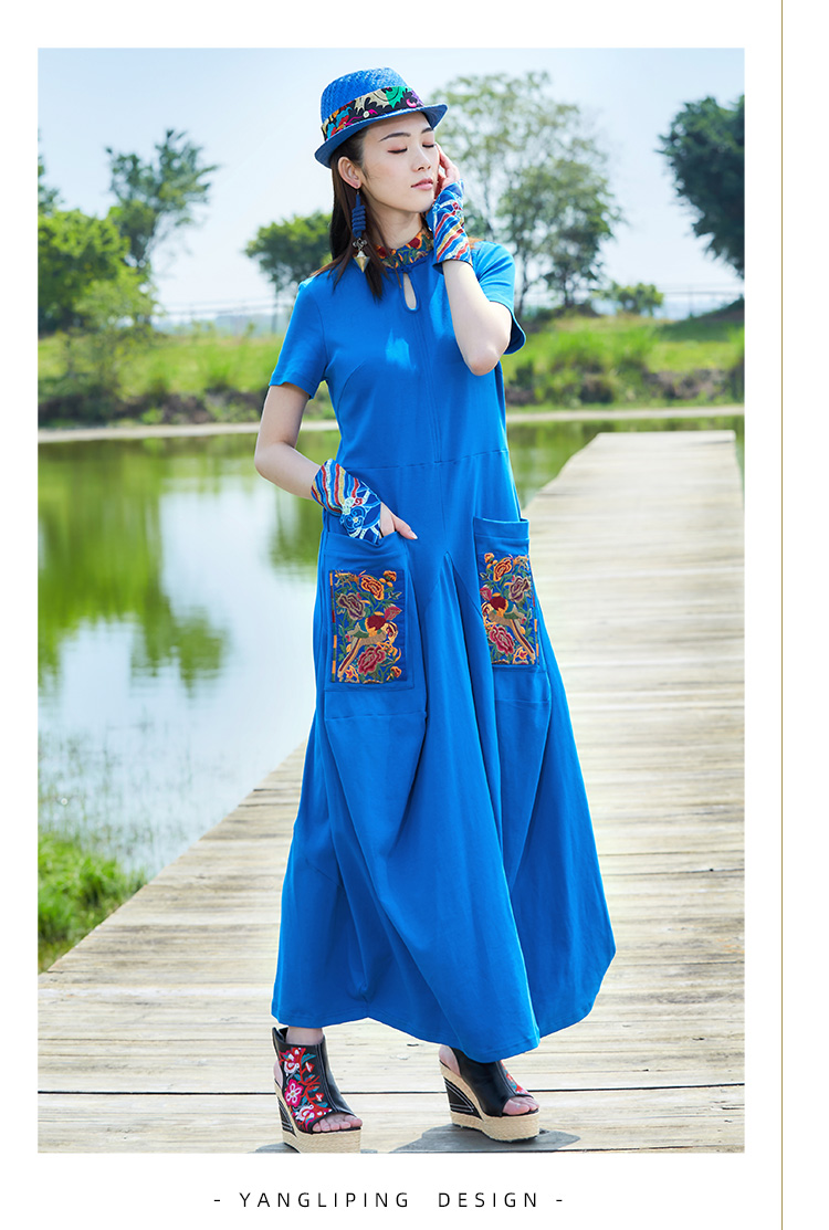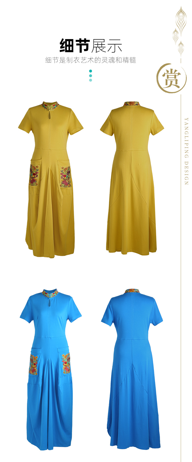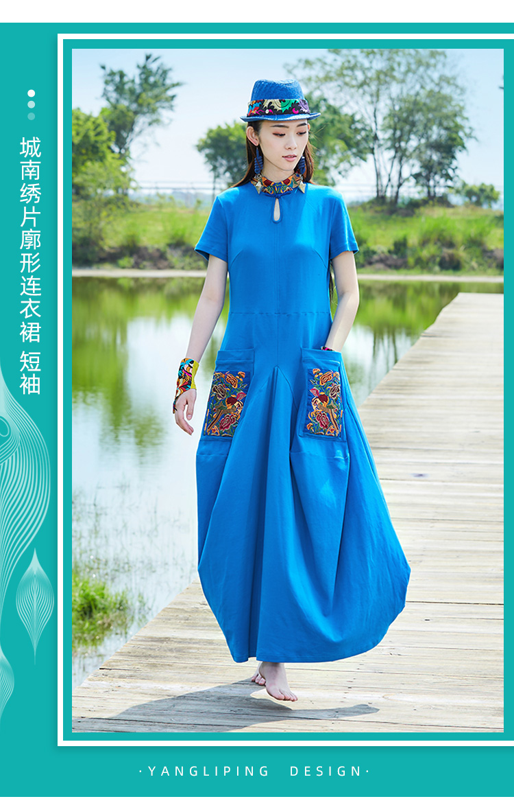 城南绣片廓形连衣裙 / 蓝色 黄色 / 长袖 短袖 / 少量现货
