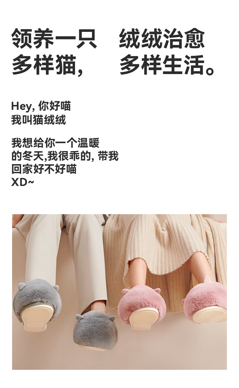【6F】多样屋(TAYOHYA) 猫绒绒保暖棉拖鞋女士家居外穿防滑厚底可爱拖鞋(尺码偏小拍大一码)