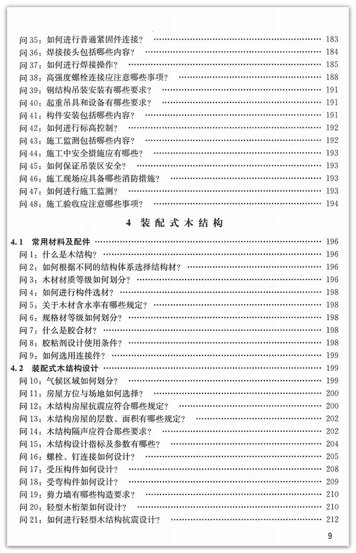 本书为装配式的问答类图书。偏重于施工。内容包括:概述;装配式混凝土结构(装配式混凝土结构设计、装配式混凝土结构构件制作、 装配式混凝土结构施工);装配式钢结构(装配式钢结构设计,装配式钢结构构件制作、运输与储存,装配式钢结构施工);装配式木结构(装配式木结构常用材料及配件、装配式木结构设计、装配式木结构构件制作、装配式木结构施工)。是目前国家的主推方向。