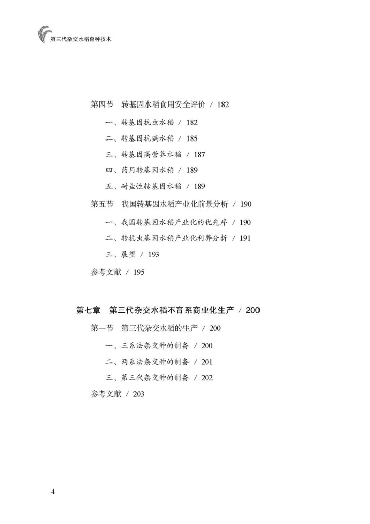 《第三代杂交水稻育种技术》论述了实际育种工作过程中总结的第三代不育系的利用流程和将产生的效果,展现了第三代杂交水稻优势。这为中国杂交水稻的发展提供了方向,是将传统育种和现代分子育种有效结合,是转基因技术对传统育种技术的补充,并将实验室成果转化成生产的成功案例。对广大杂交水稻育种工作者具有非常重要的参考价值。