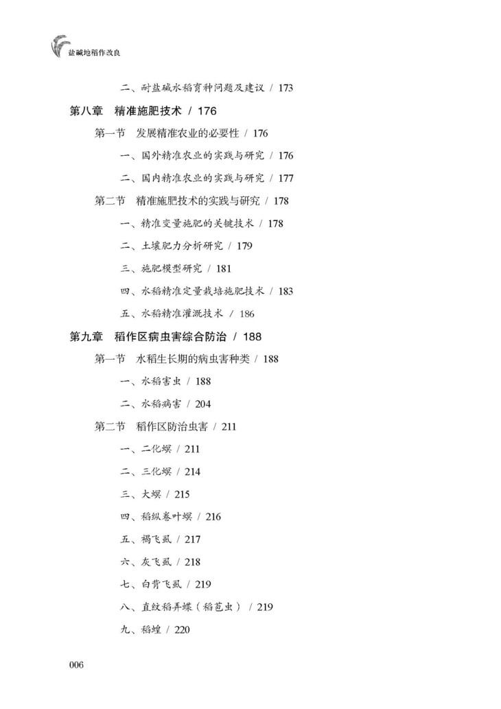 《盐碱地稻作改良技术》介绍了国内外盐碱地改良技术现状,稻作区土壤情况, 稻作区暗管改碱工程,稻作区水稻品种选择,稻作栽培技术,稻作水肥一体化,稻作区水稻收获和加工。