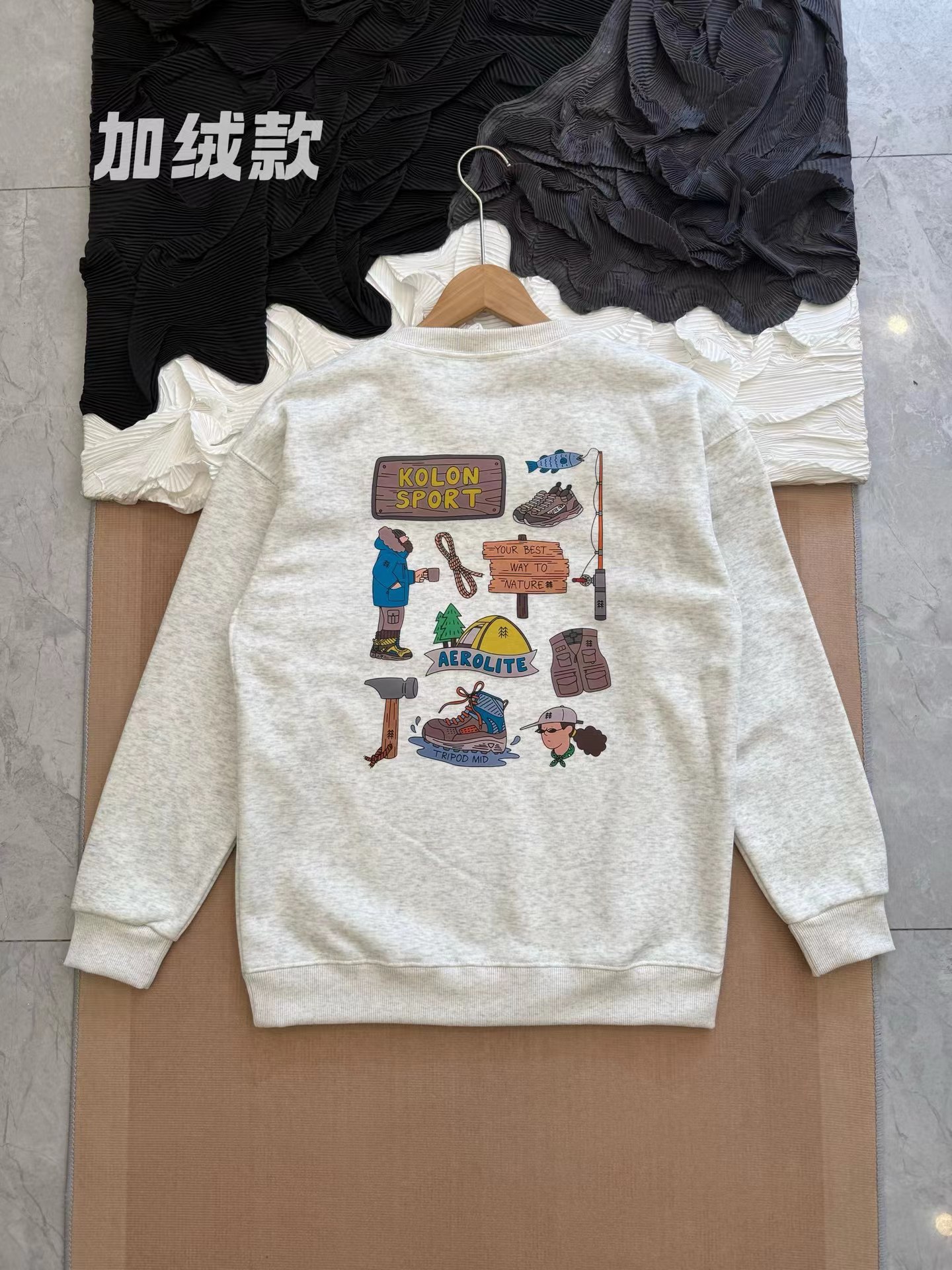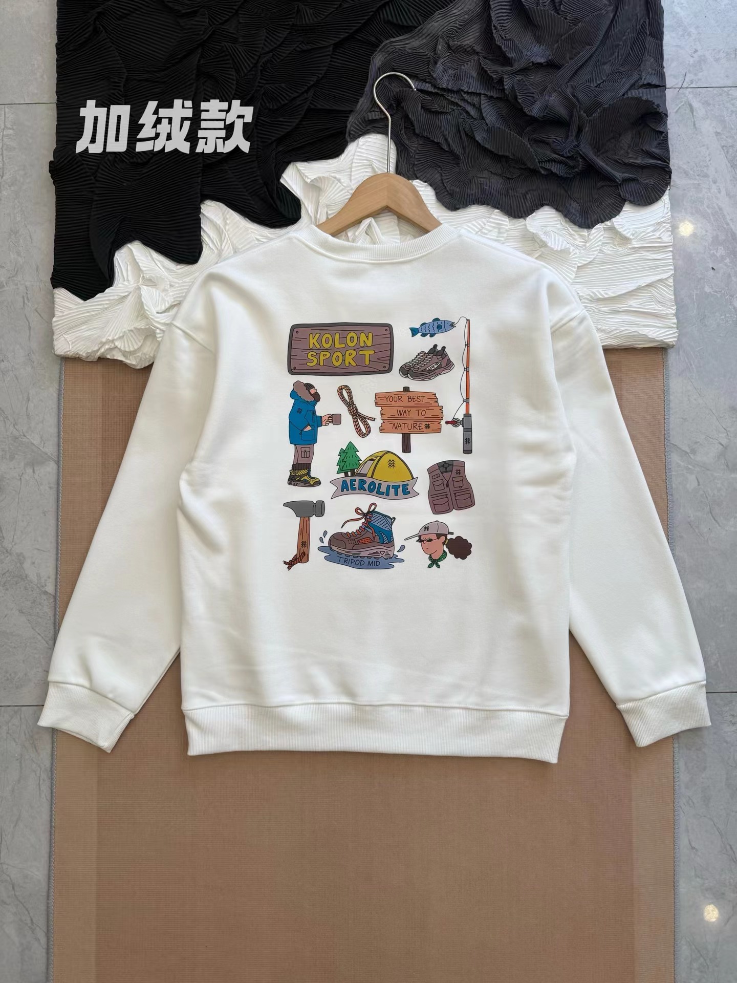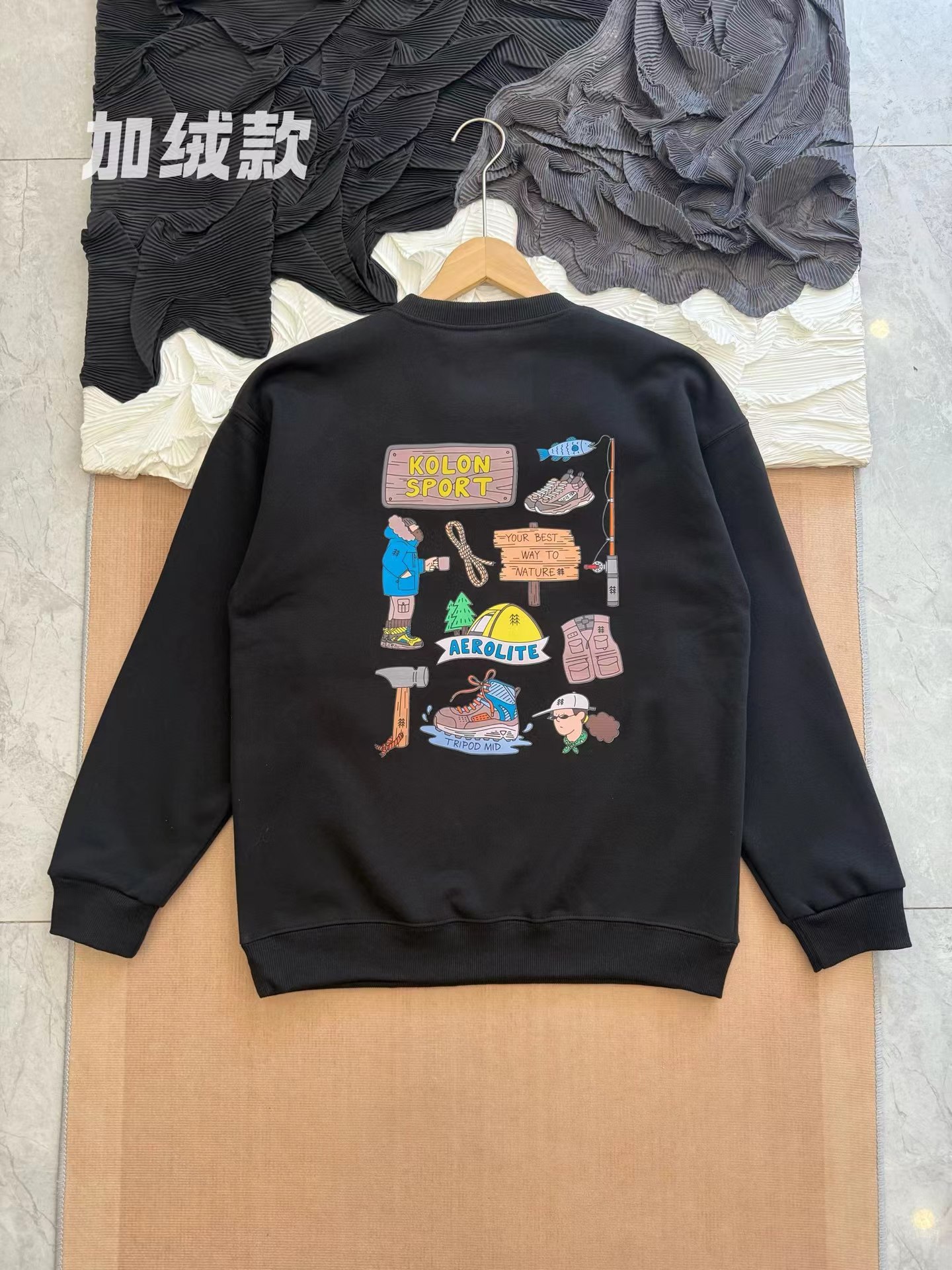 后背多标识印花 加绒圆领长袖卫衣