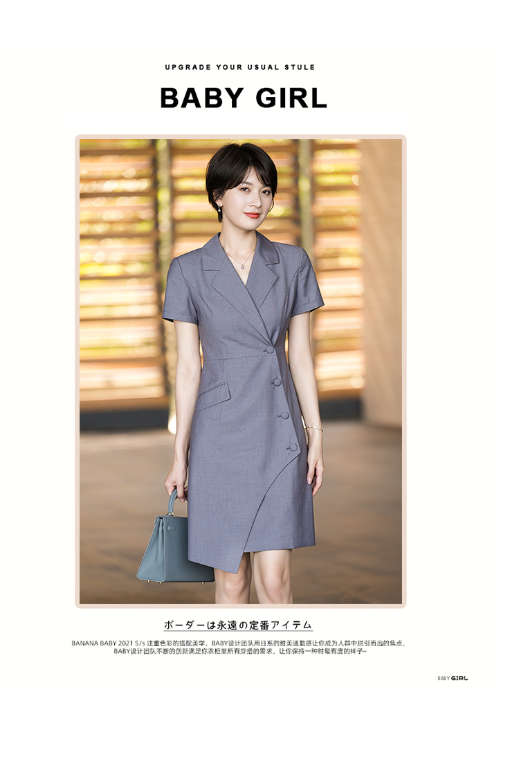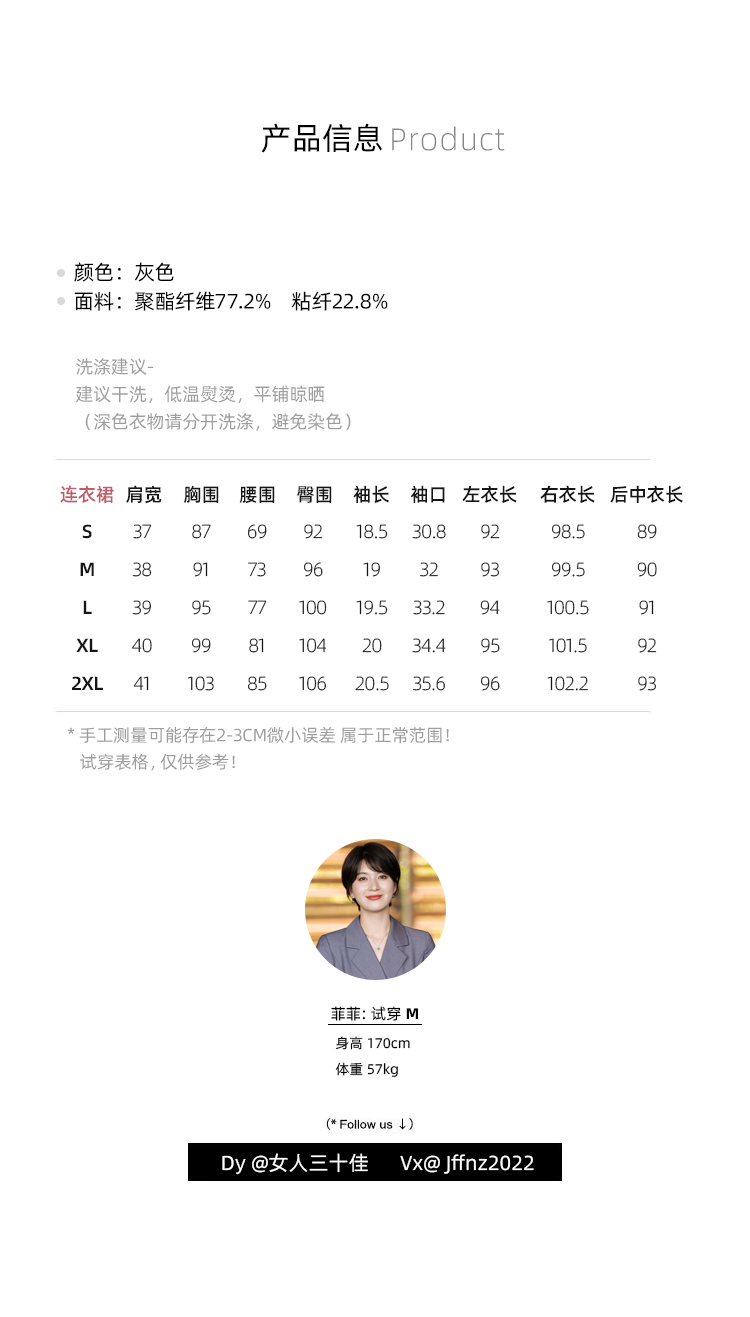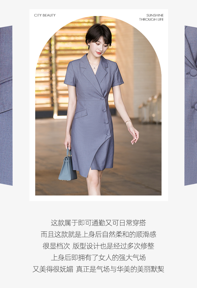 轻熟风西装连衣裙女夏季高级灰色职业正装正式场合工装裙子