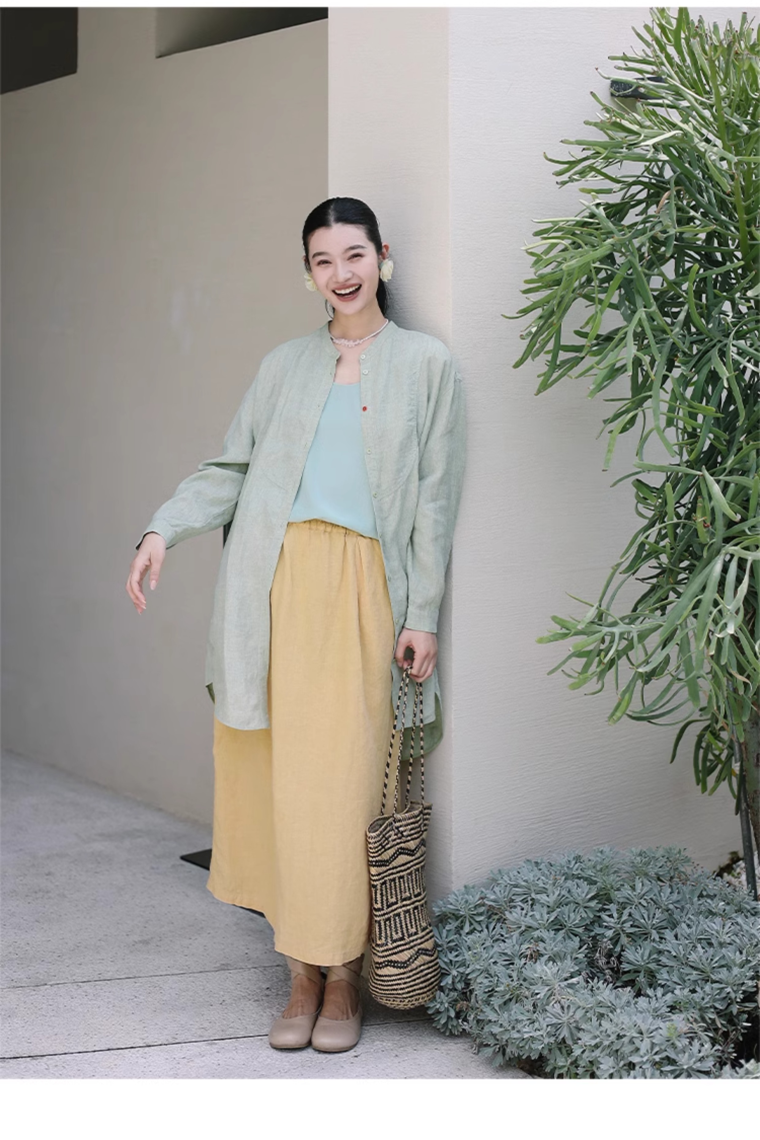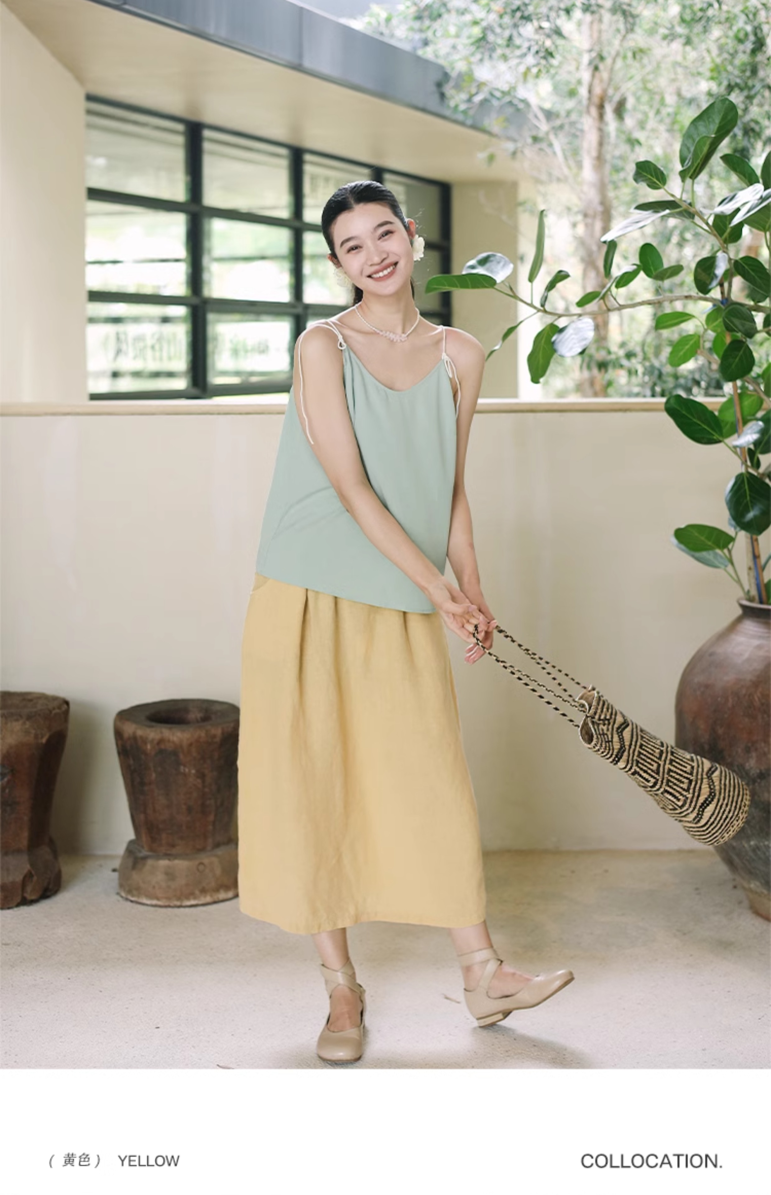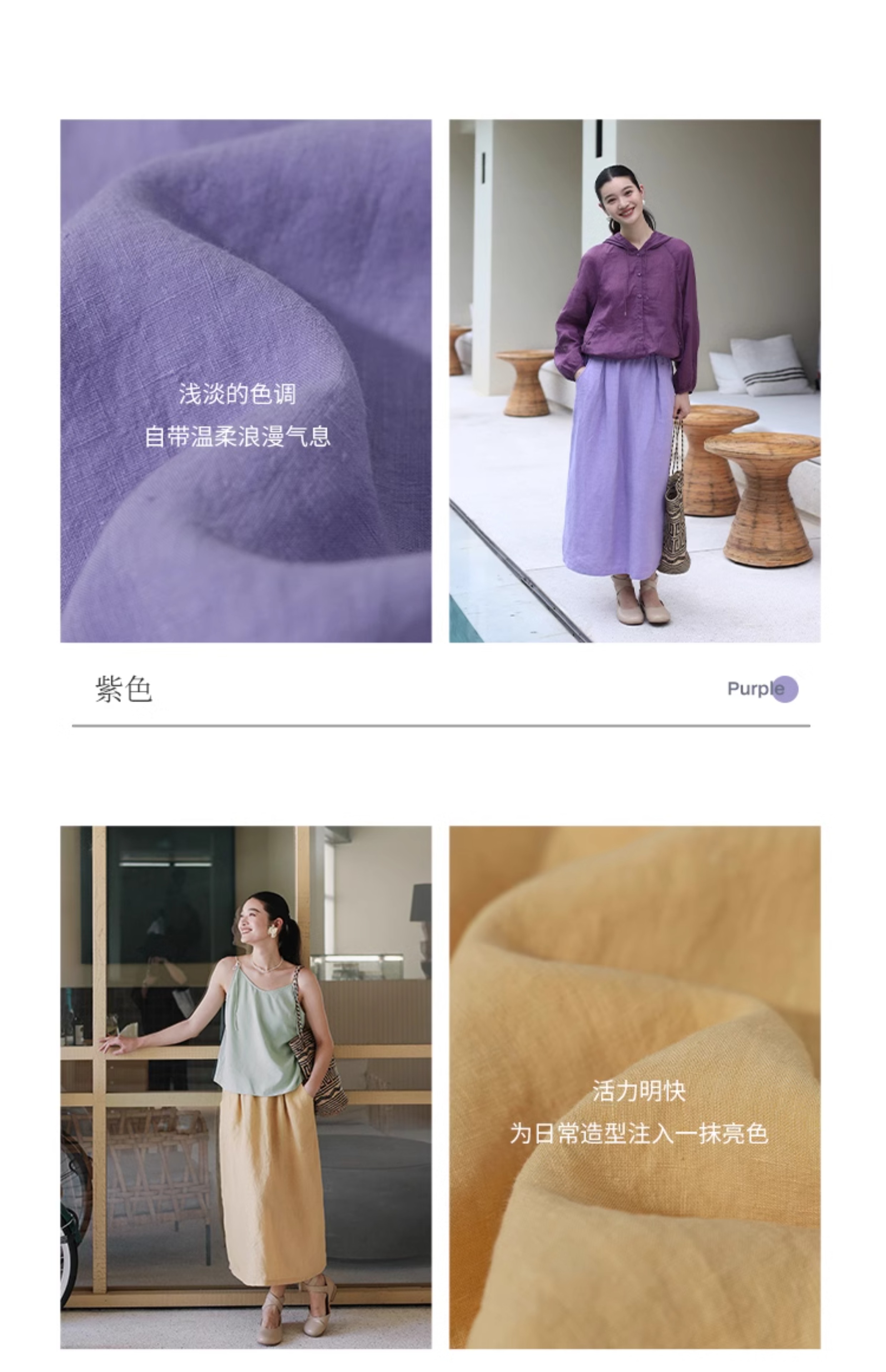 以天然亚麻为载体,融合热烈色彩与自在剪裁为身在城市、心怀远方的女性提供兼具美学与舒适的旅行着装