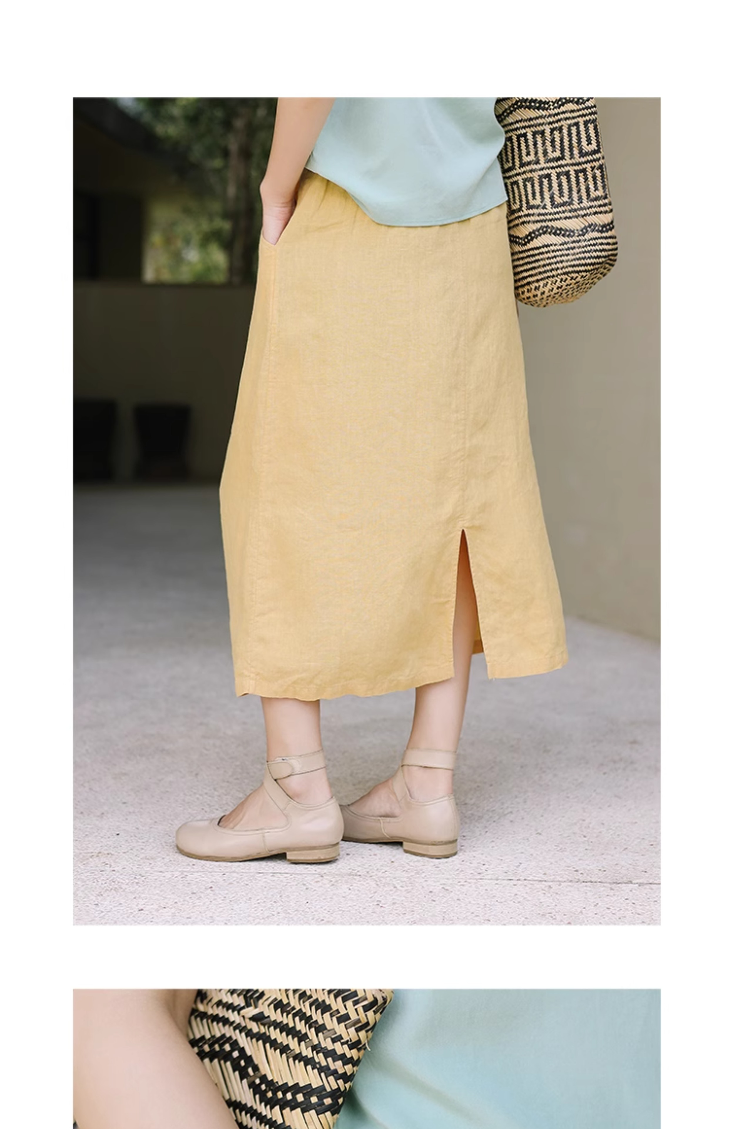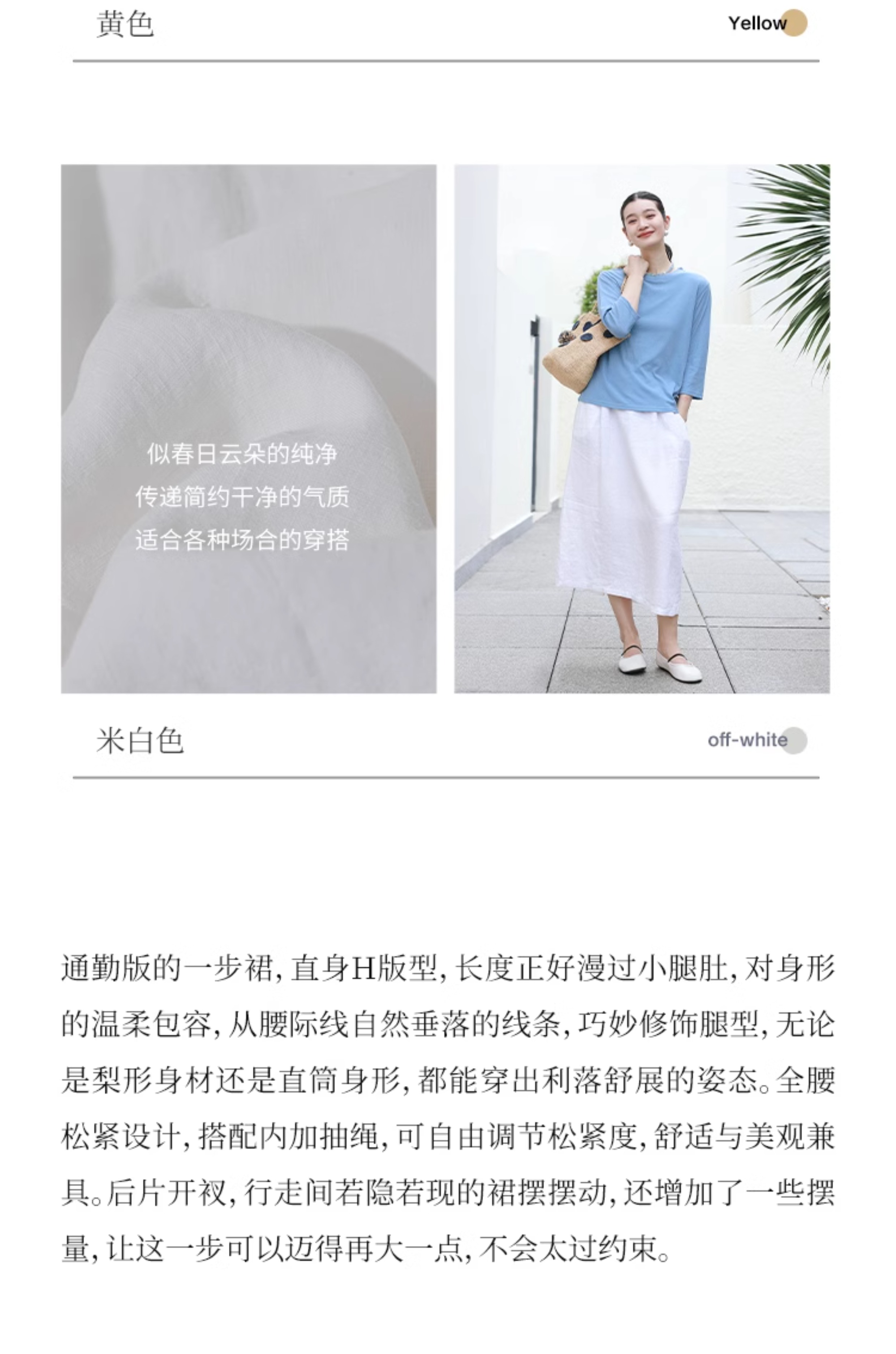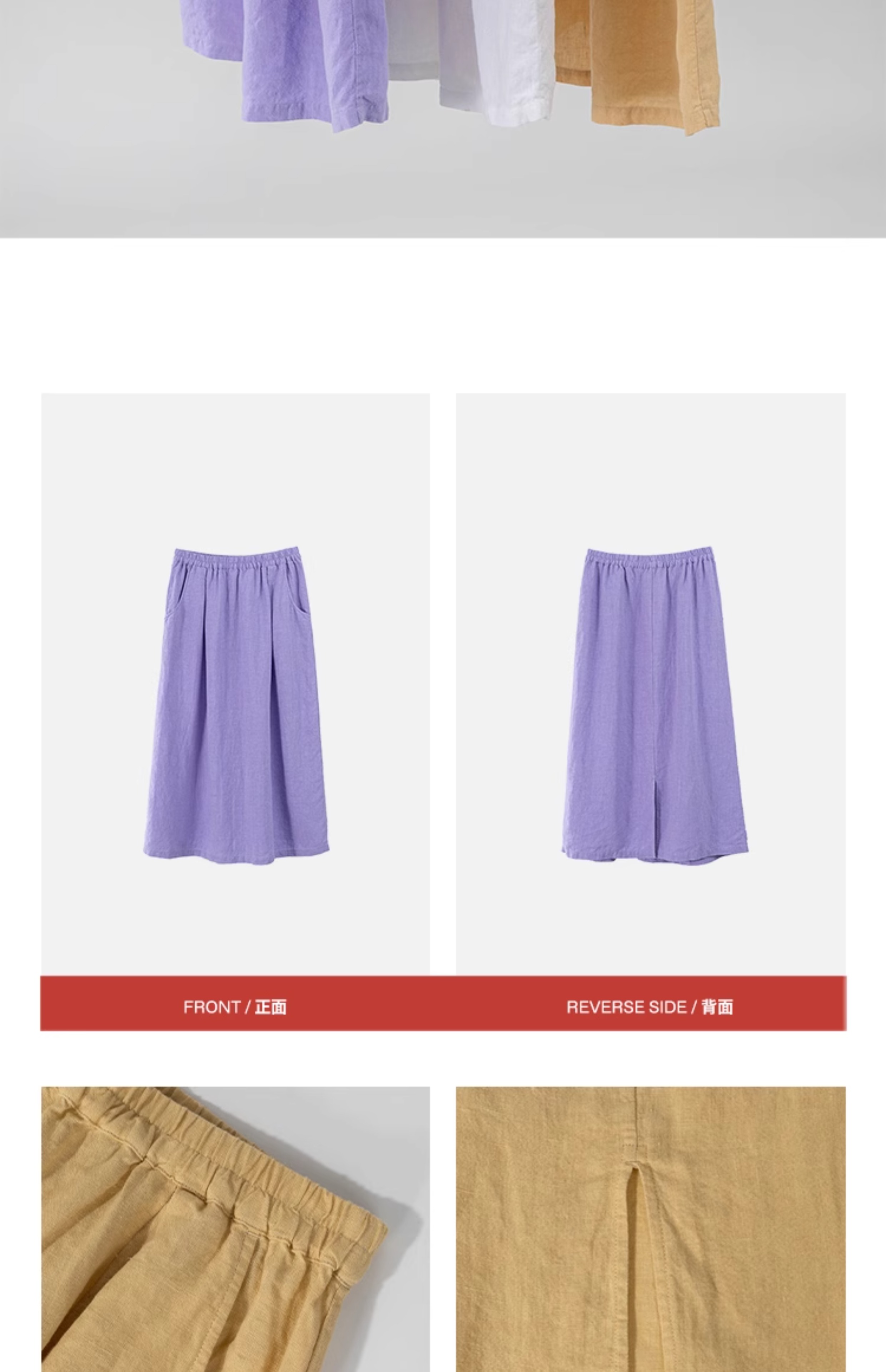 绽放旅行女装197朵/亚麻全腰松紧内加抽绳后开衩宽松显瘦半身裙