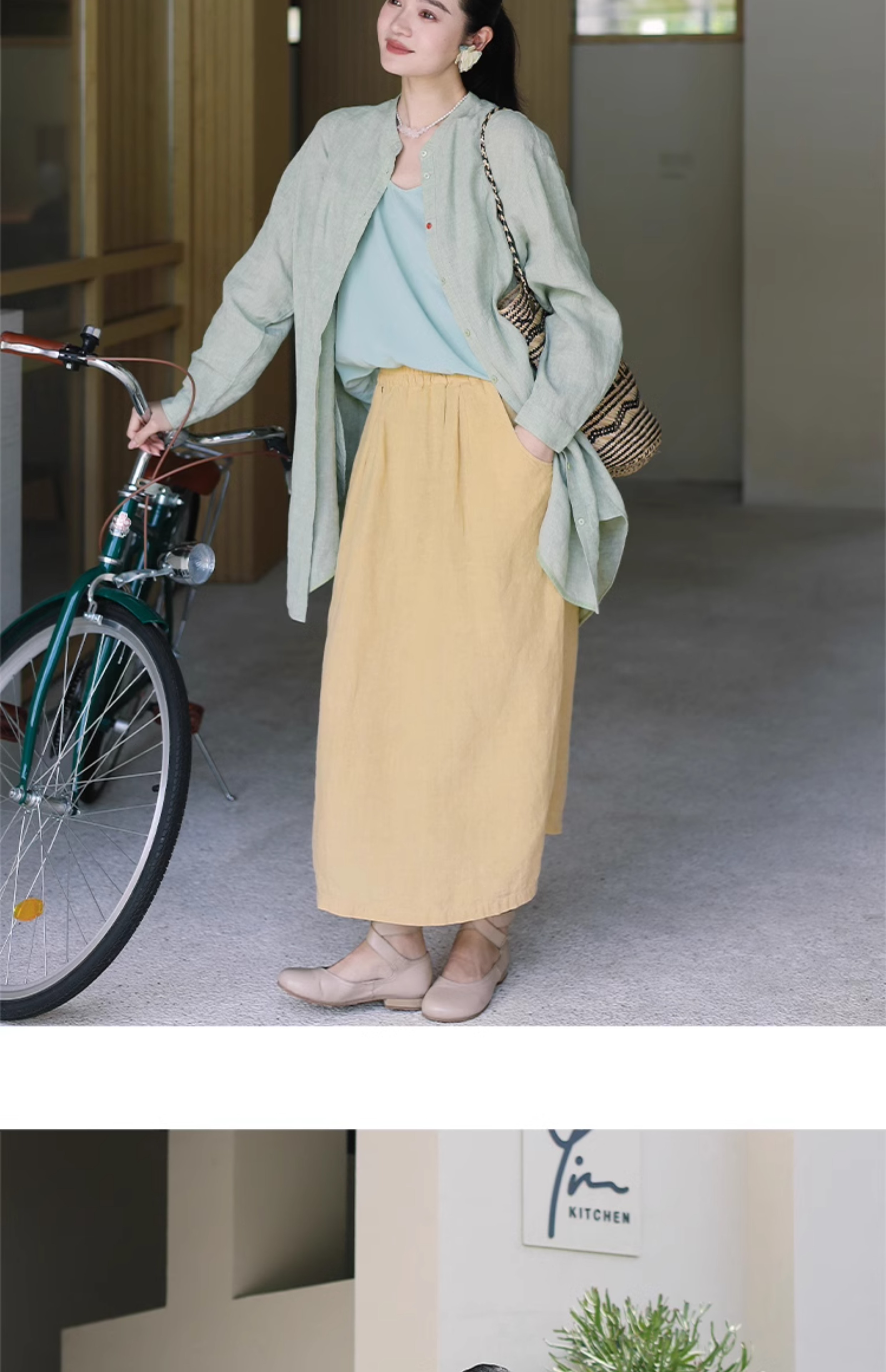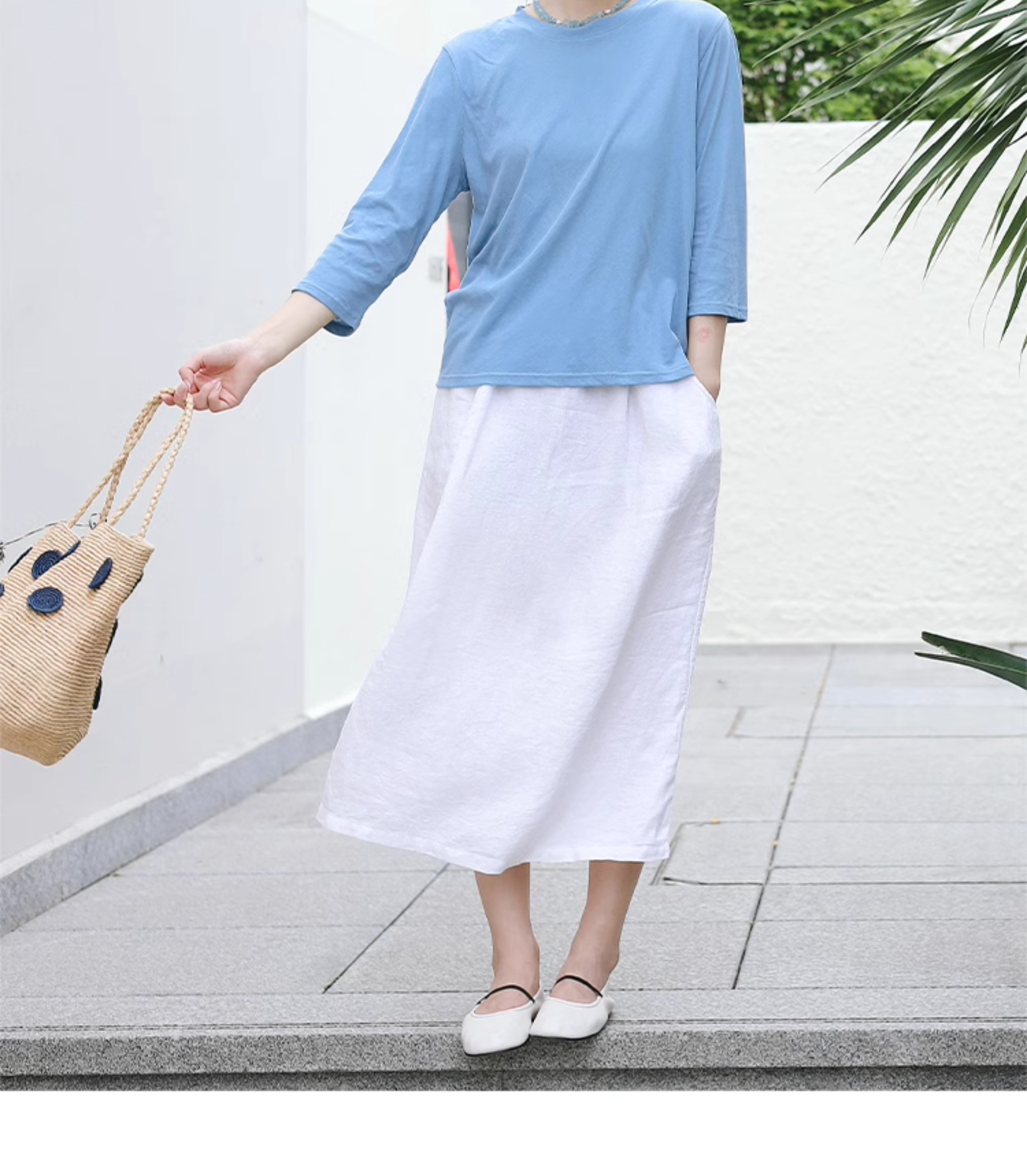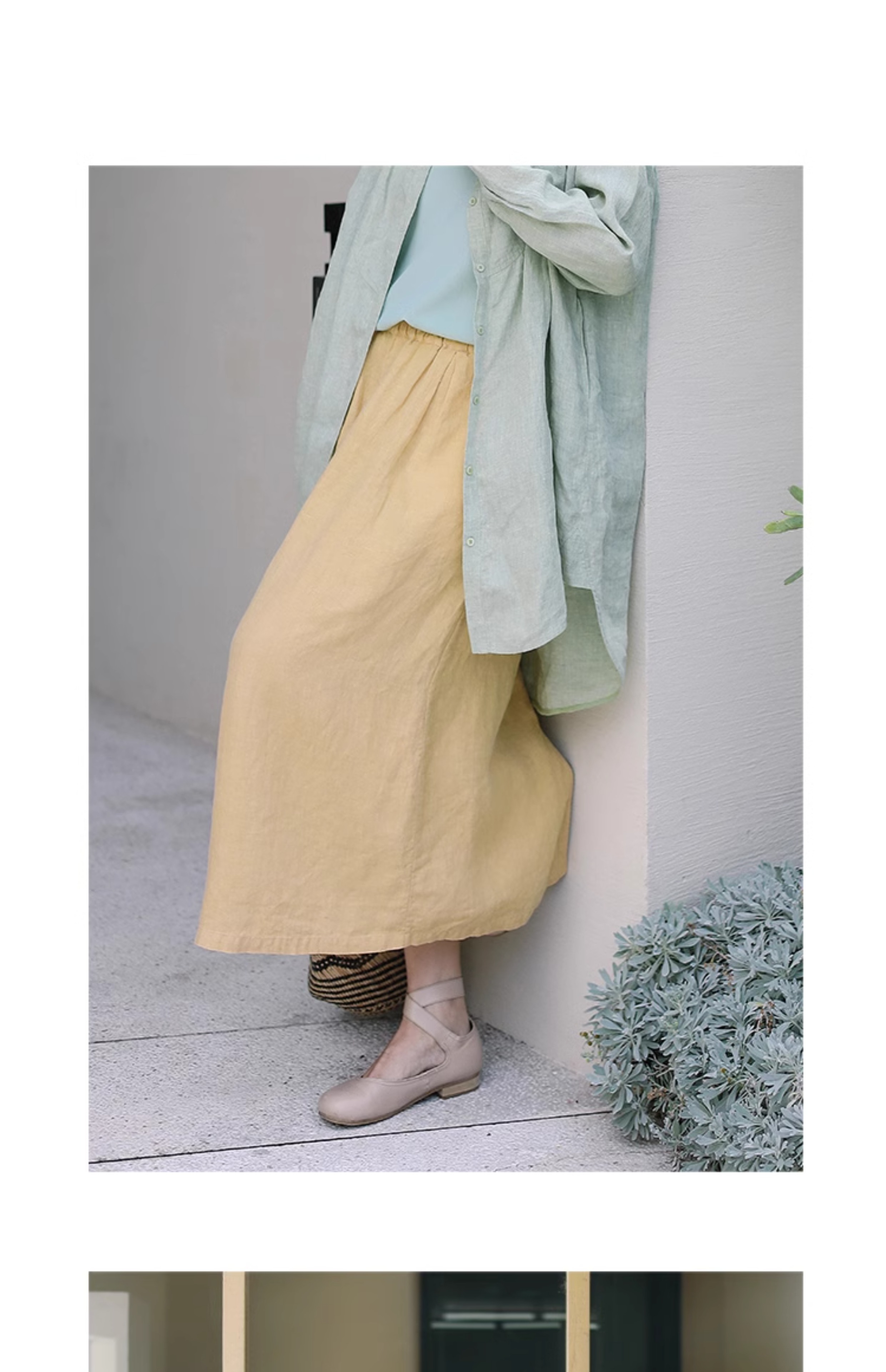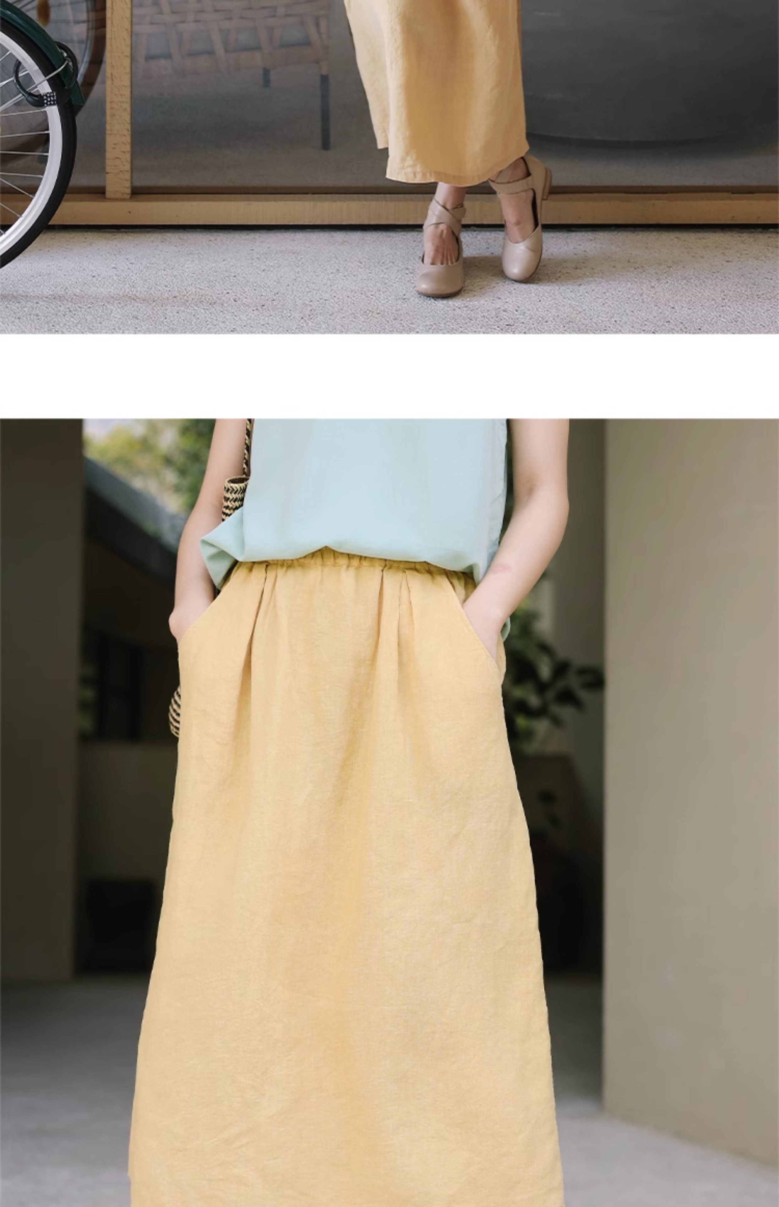 绽放旅行女装197朵/亚麻全腰松紧内加抽绳后开衩宽松显瘦半身裙