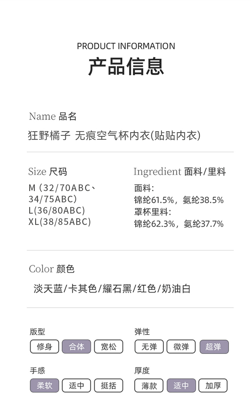 【果冻条承托】狂野橘子 贴贴内衣文胸 提拉聚拢显瘦