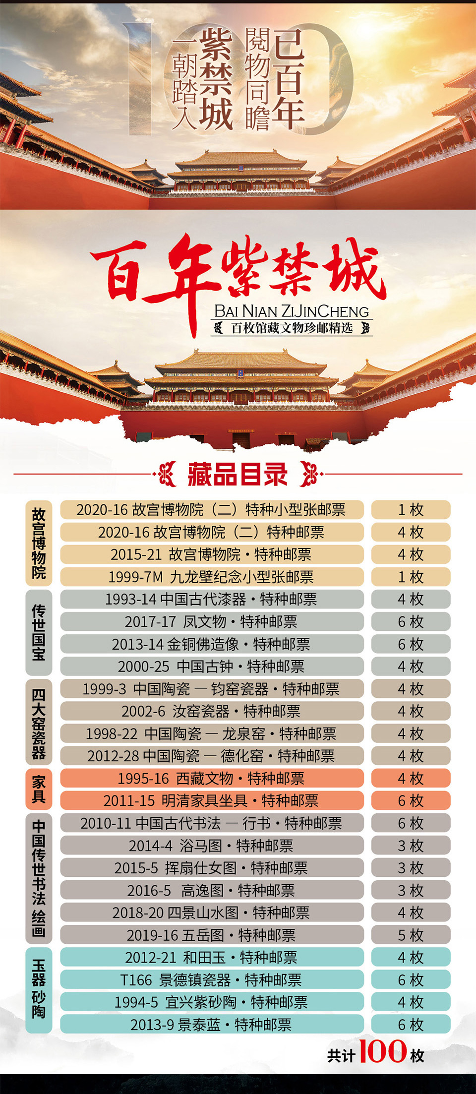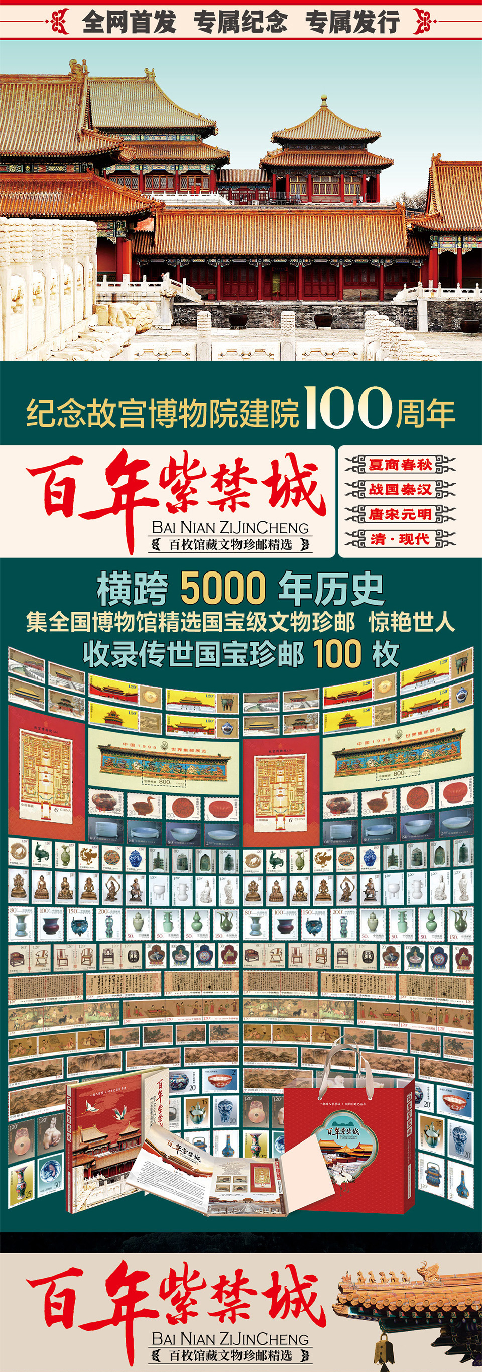 热卖中!!百年紫禁城·绸缎珍邮册 100枚珍邮