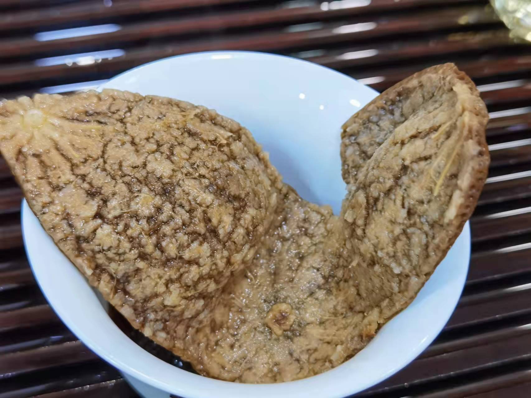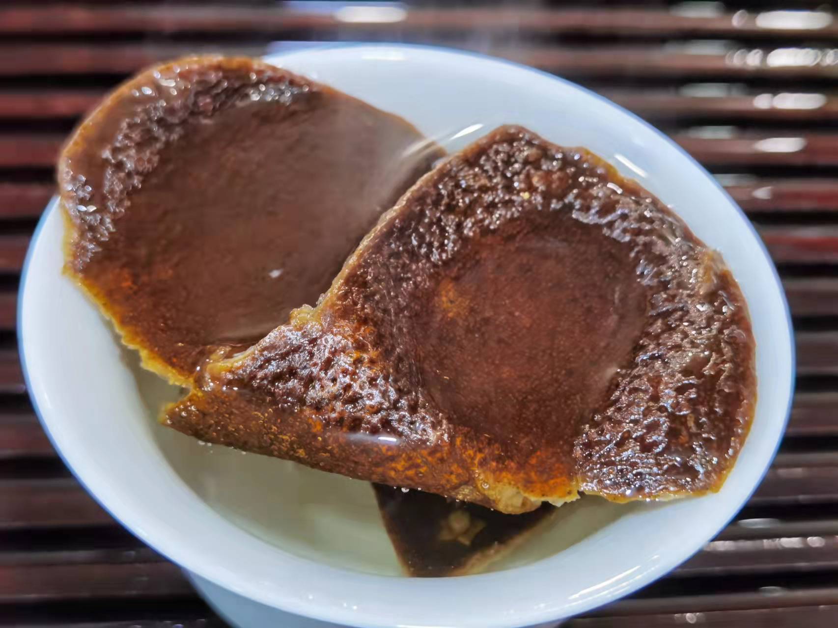 开始冲泡后,内瓤就很多脱落,这是年份特征之一。