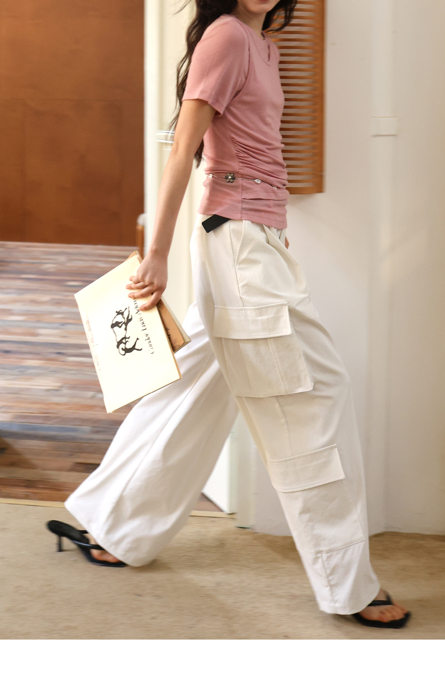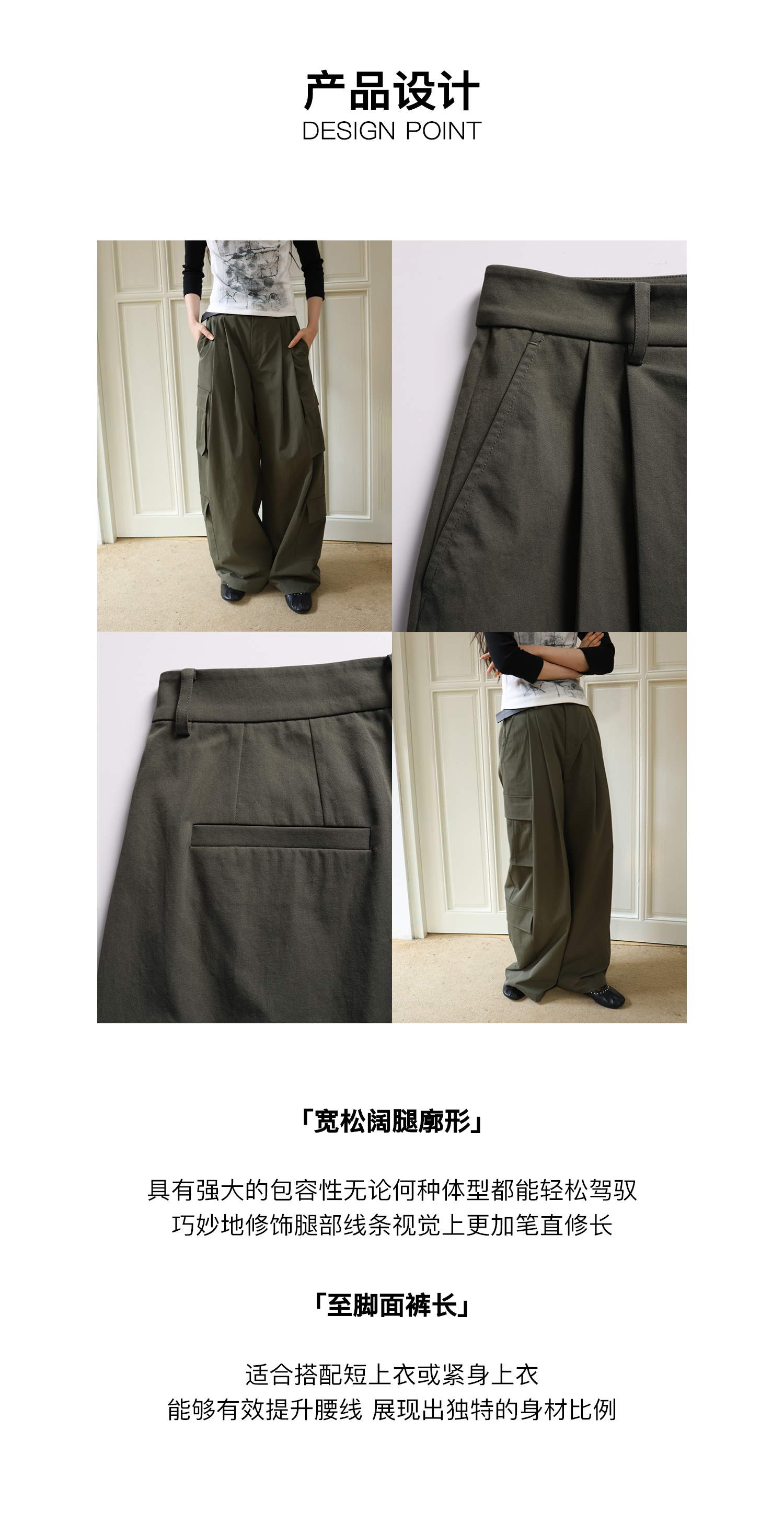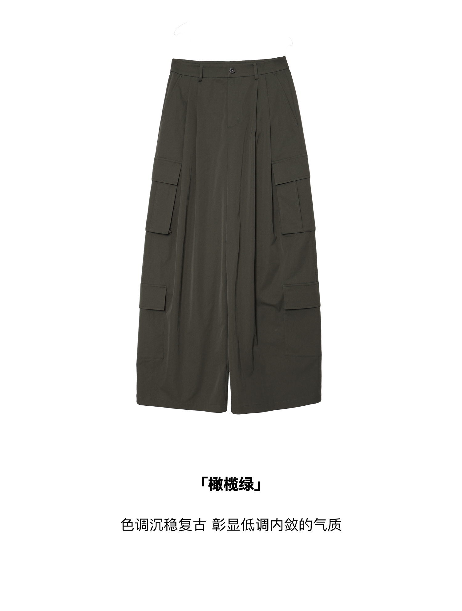 素舶 抗皱亲肤面料两色中腰大口袋阔腿宽松休闲裤SUPERSCAPE