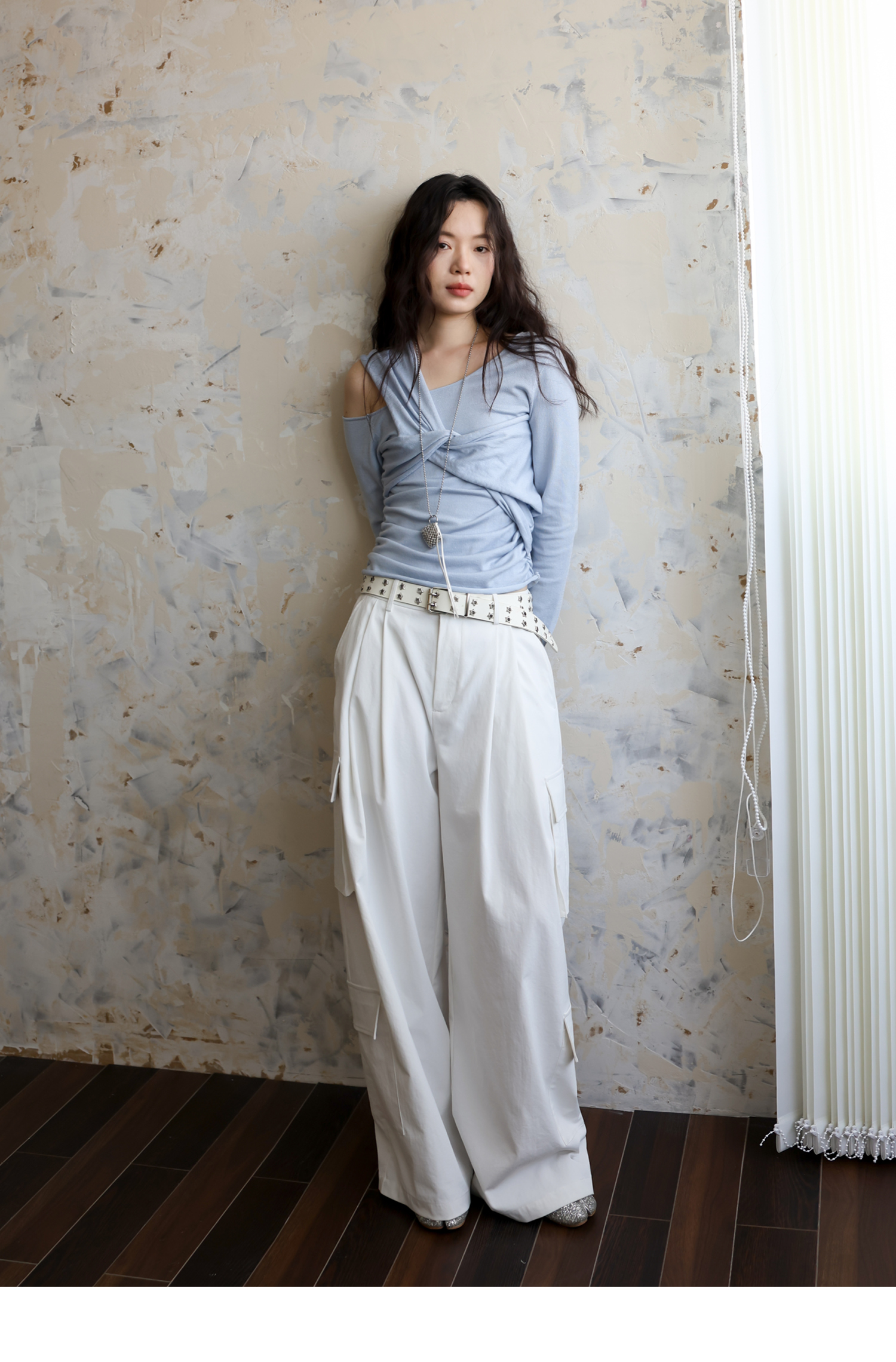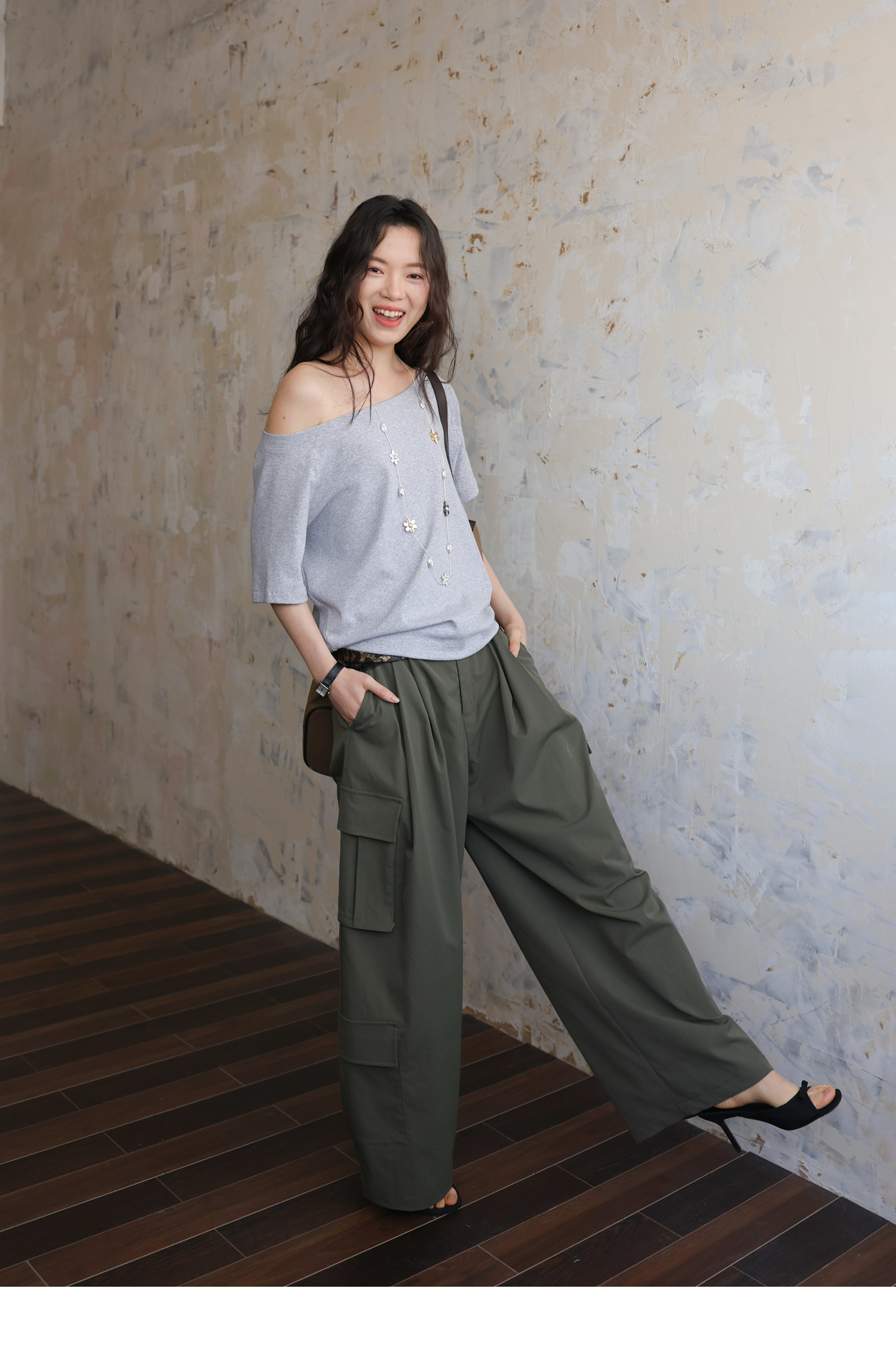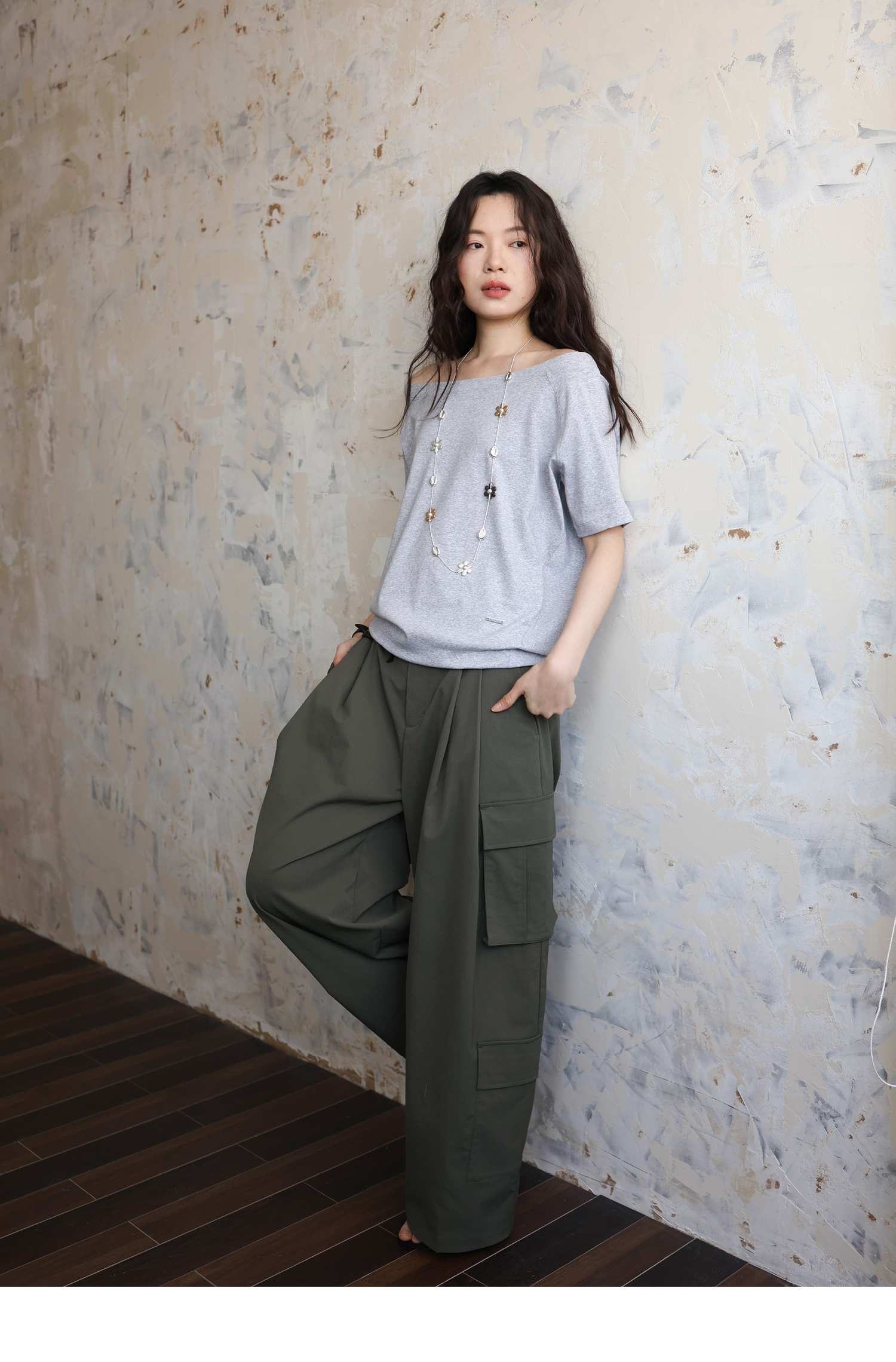 素舶 抗皱亲肤面料两色中腰大口袋阔腿宽松休闲裤SUPERSCAPE