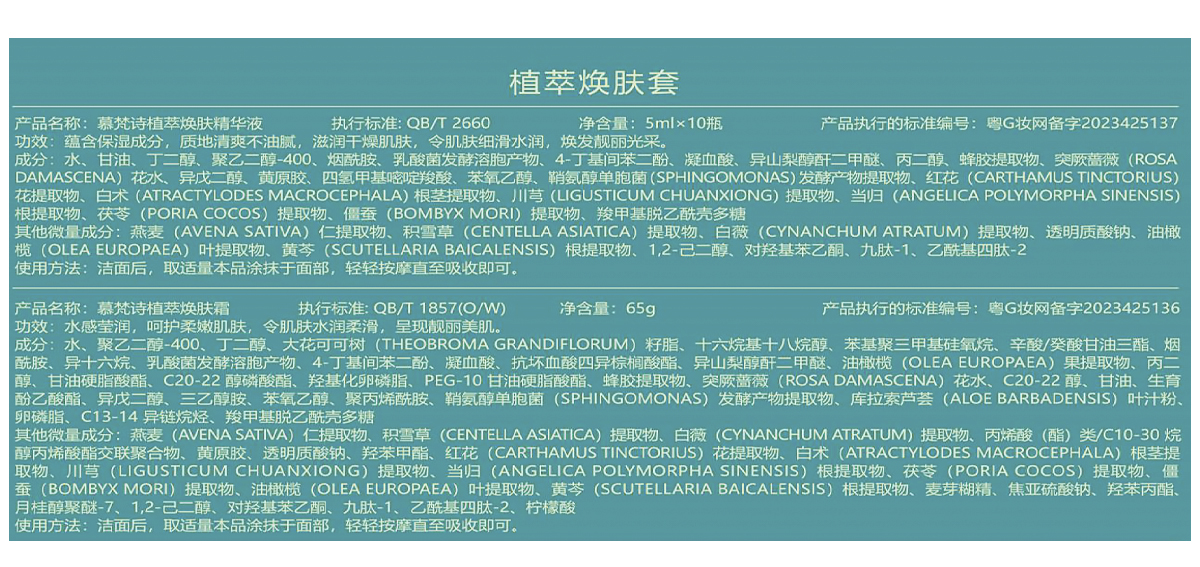 慕梵诗植萃焕肤套美院正品即拍即发面霜精华液