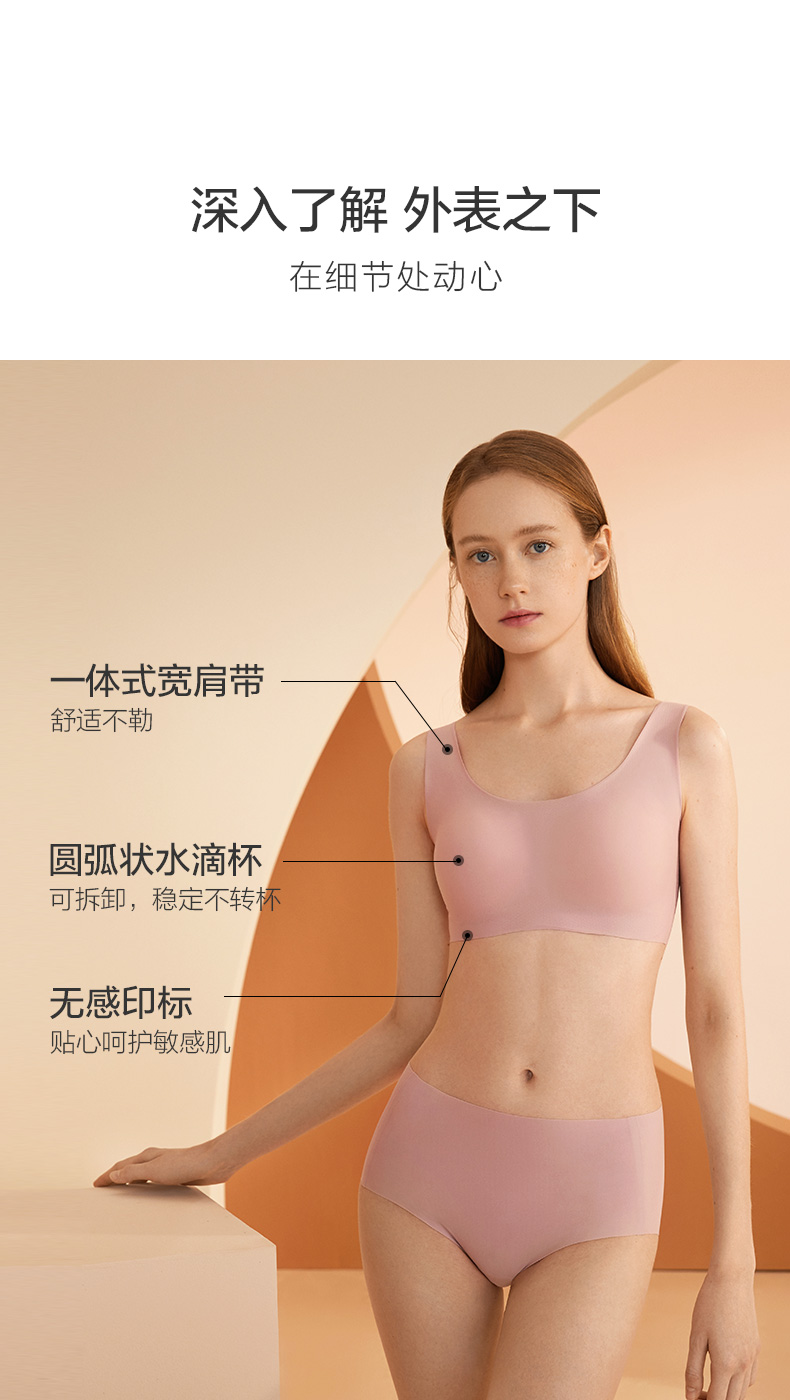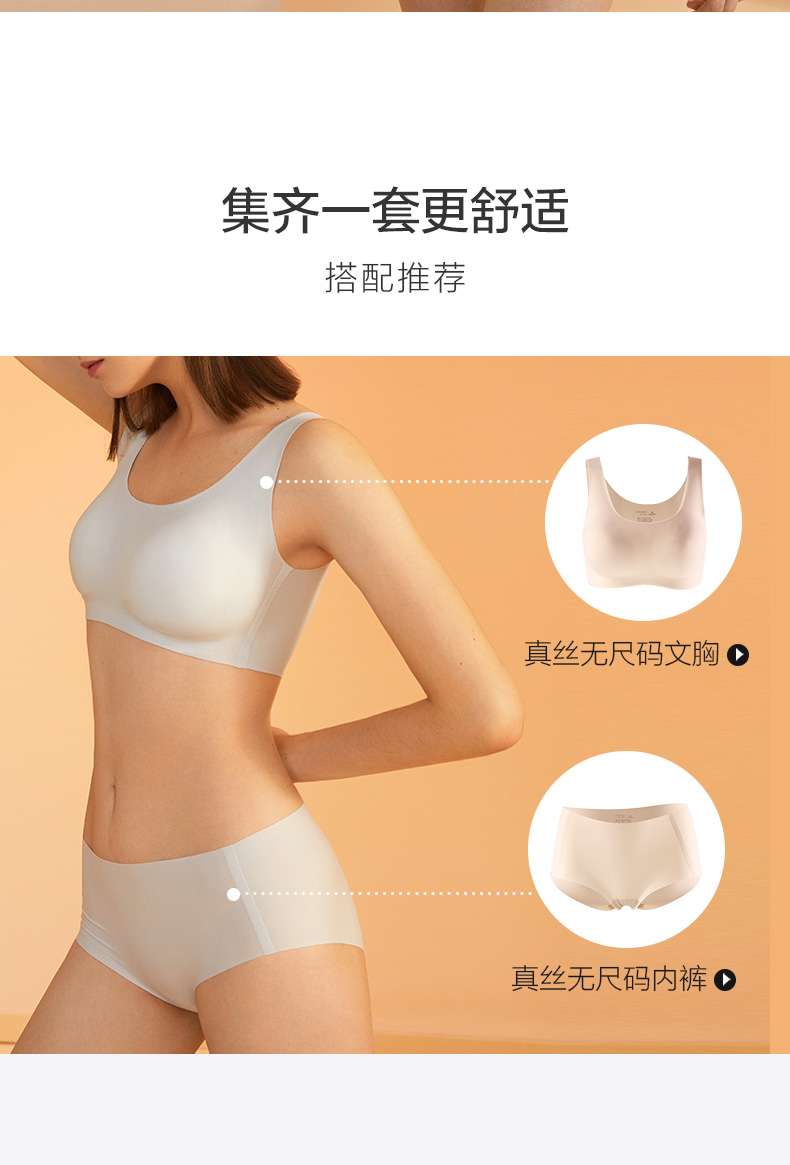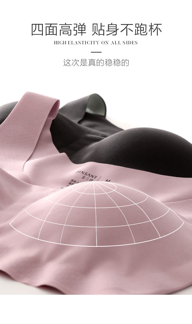 金三塔真丝无尺码抑菌文胸 桑蚕丝弹力一体式内衣女 NZFBA319