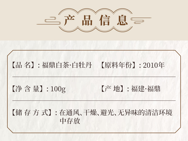 鼎茗荟丨十五年陈年白牡丹 福鼎白茶 2010年原料 100g 醇厚陈香,岁月知味 私藏级陈年老白茶 礼罐配手提袋