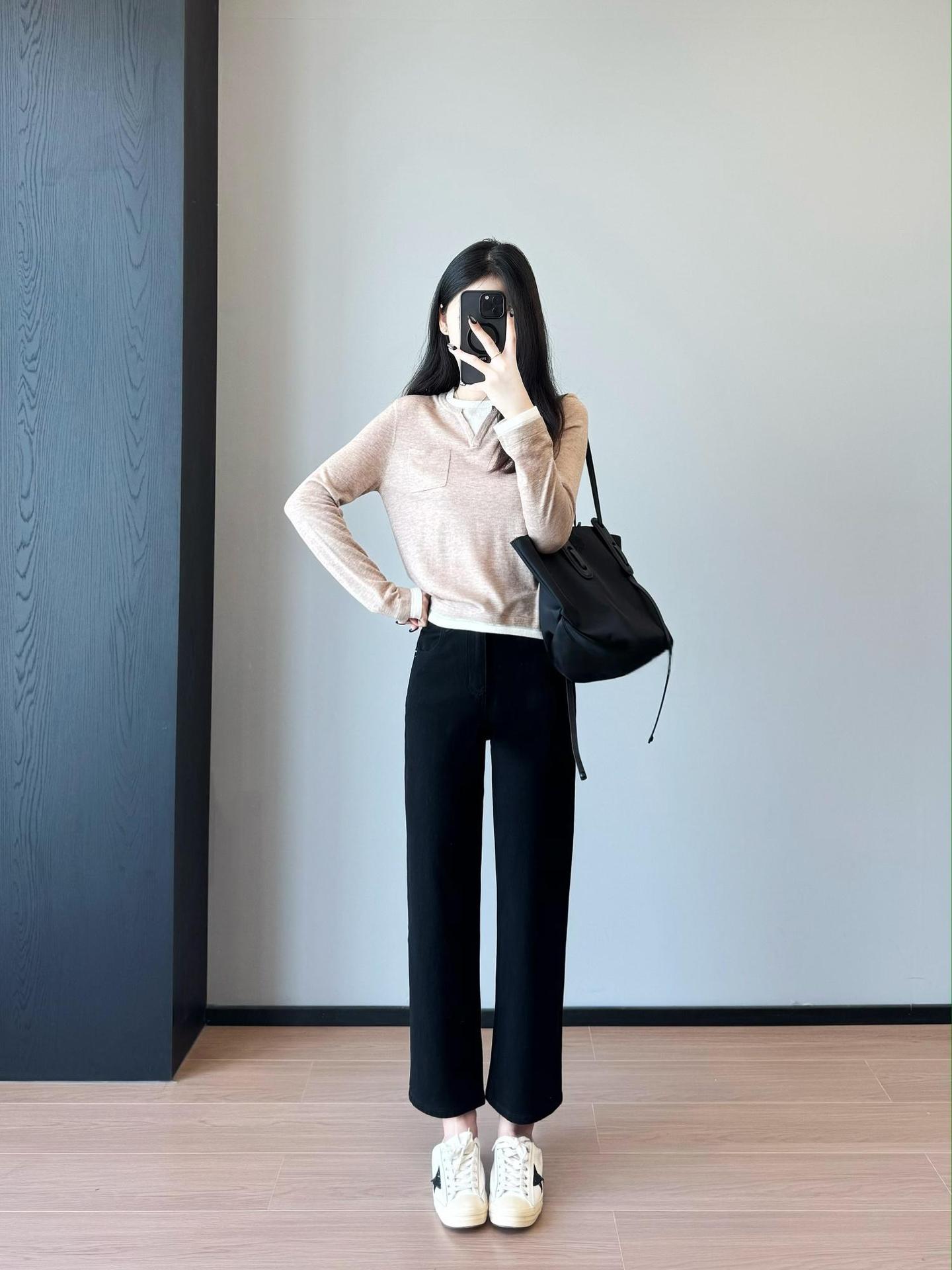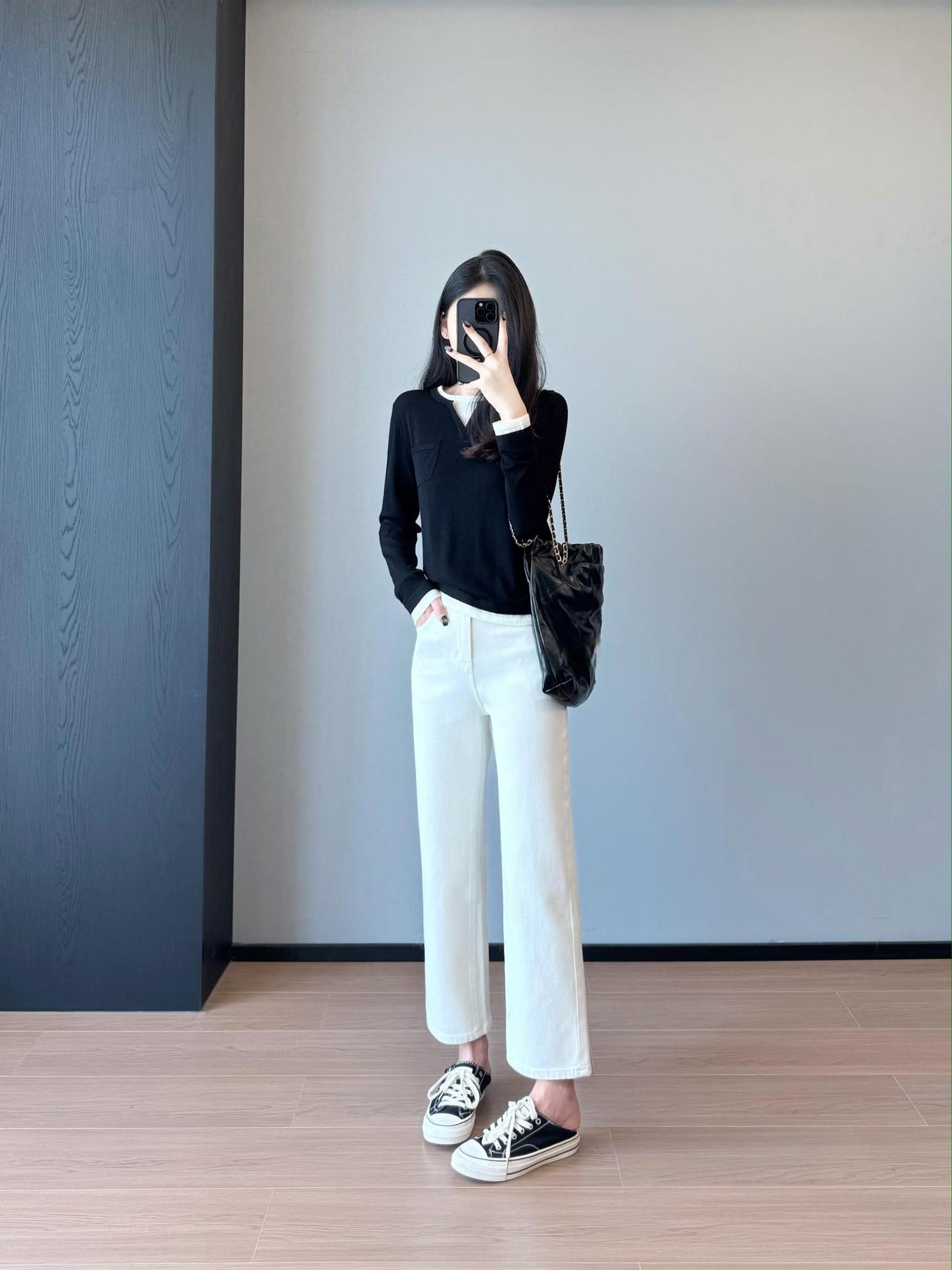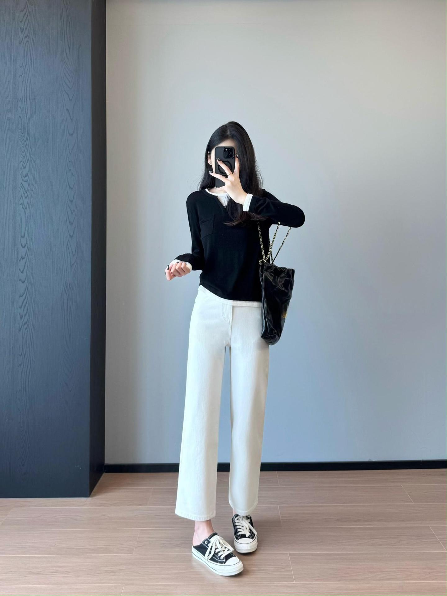 “烟管裤”顾名思义就是,穿上它就会瞬间弱化腿部线条