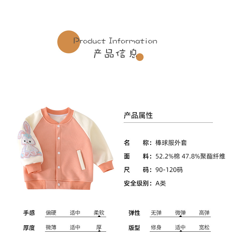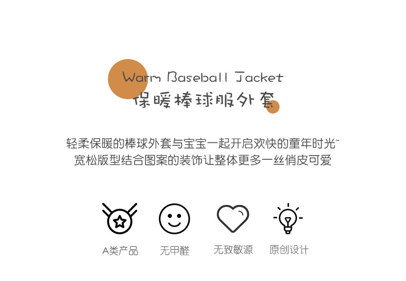 【活力萌趣棒球外套】新款春秋冬季中小童外套童装男女童单排扣长袖短款棒球服运动开衫
