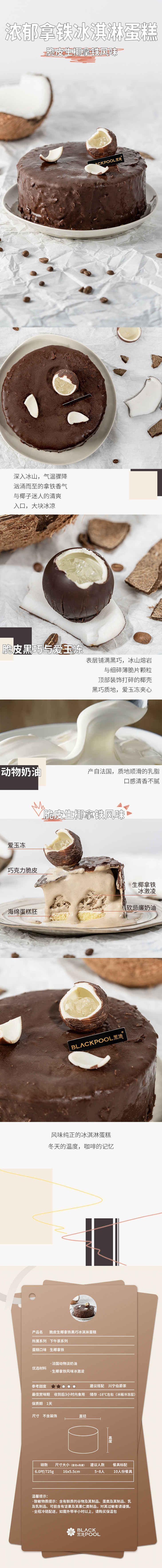 (直播特惠))6.0吋生椰拿铁脆皮黑巧冰淇淋蛋糕 - 黑池蛋糕