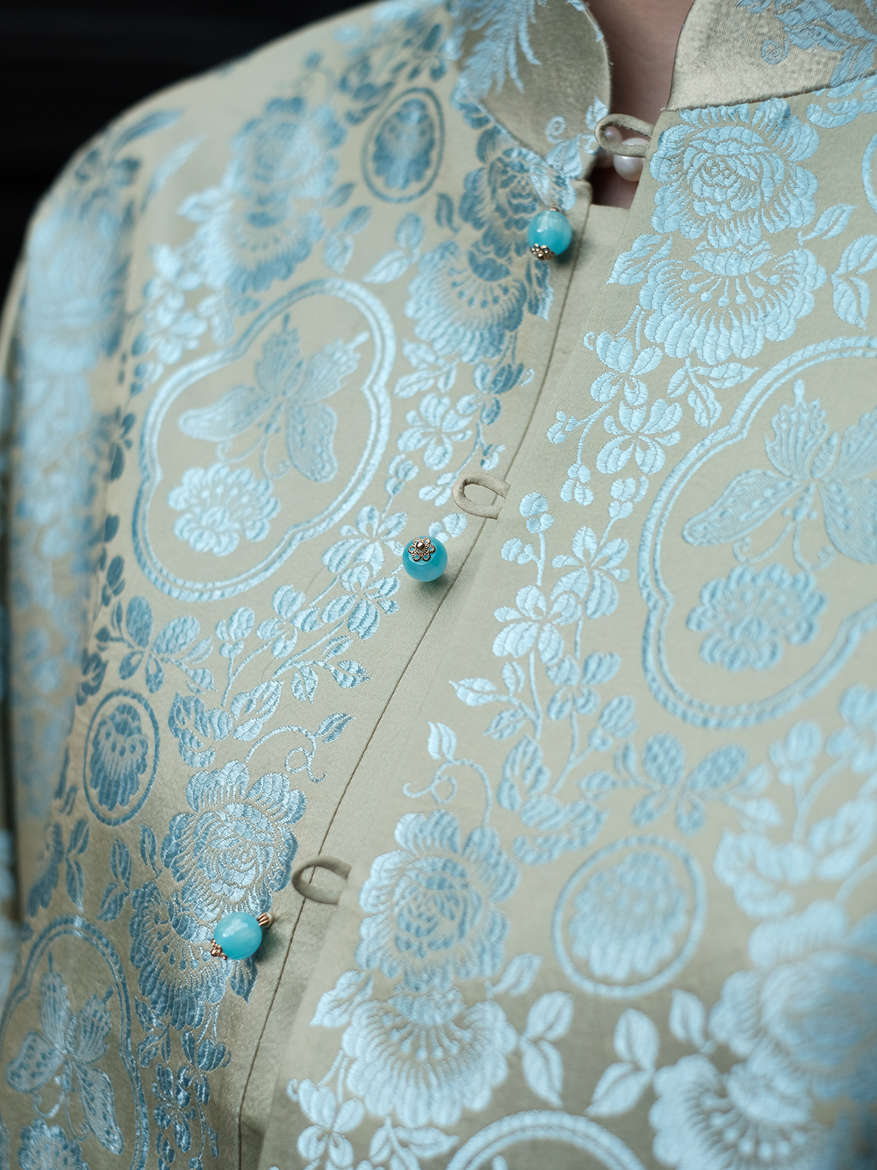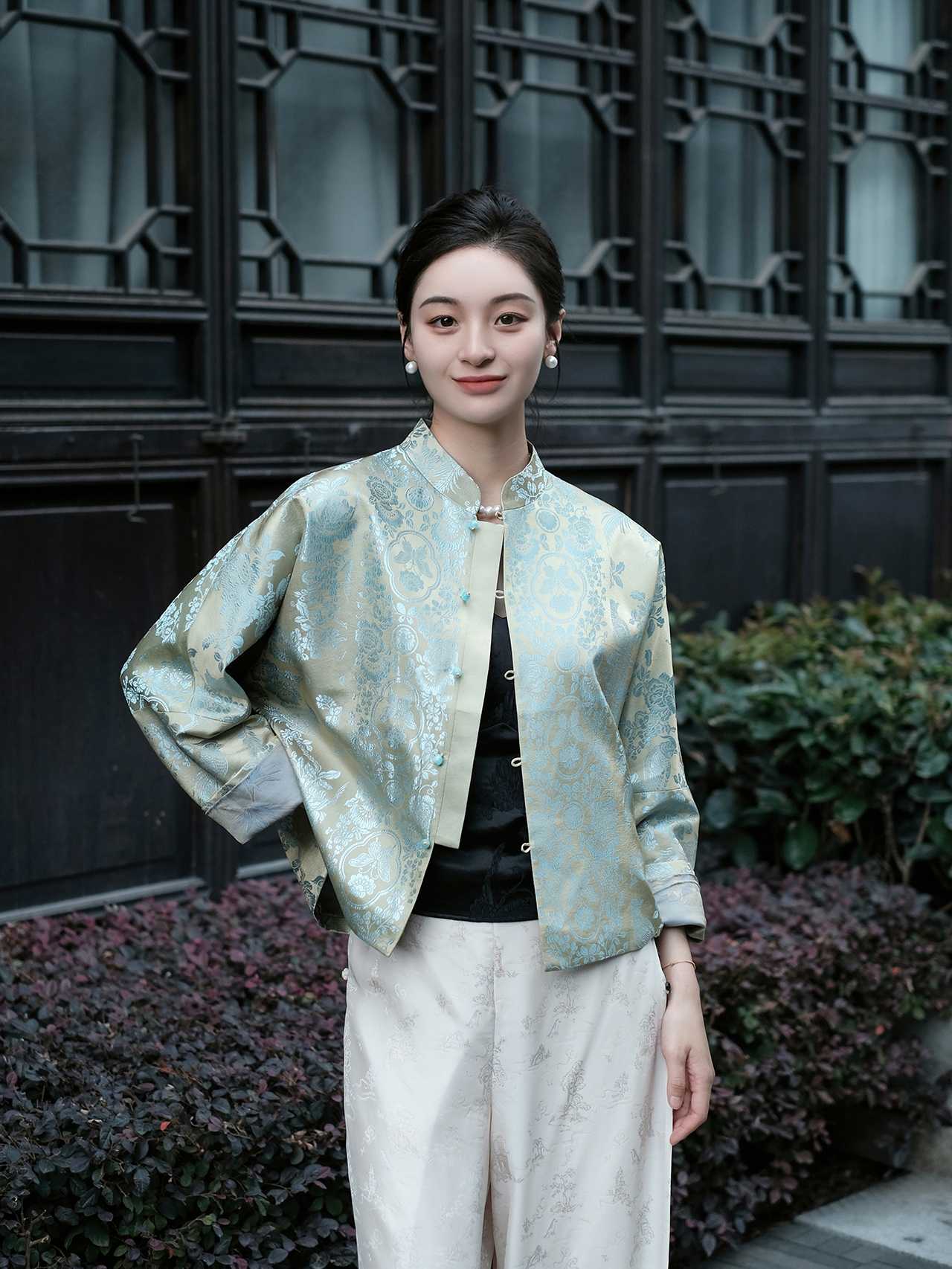 盛唐婧| 重磅桑蚕丝老缎新中式对花外套-翠绿