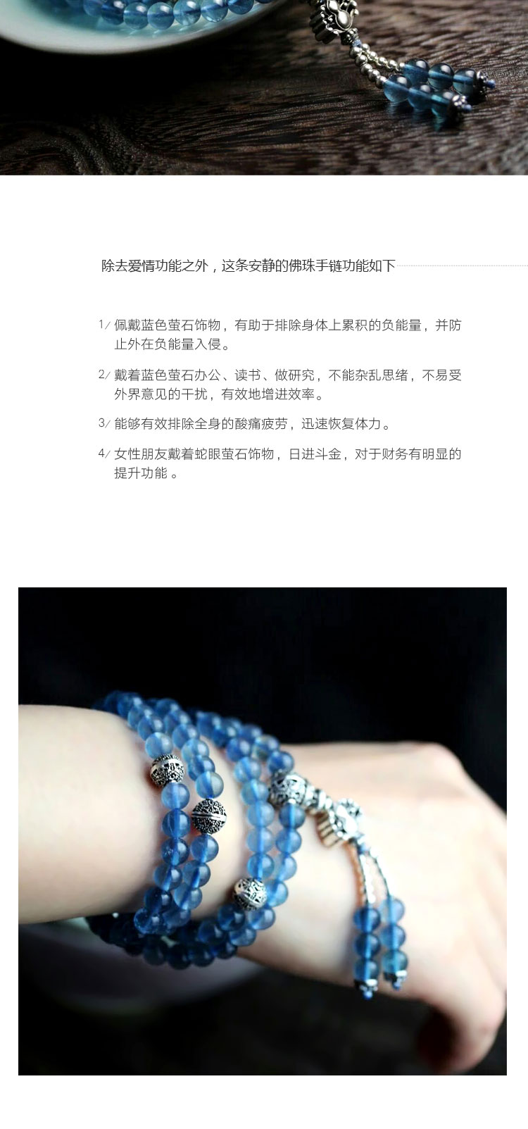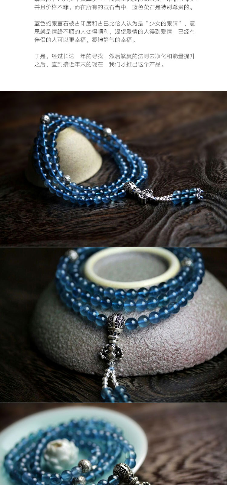 蛇眼蓝萤石多圈搭配银饰水晶手链手串珠串女款