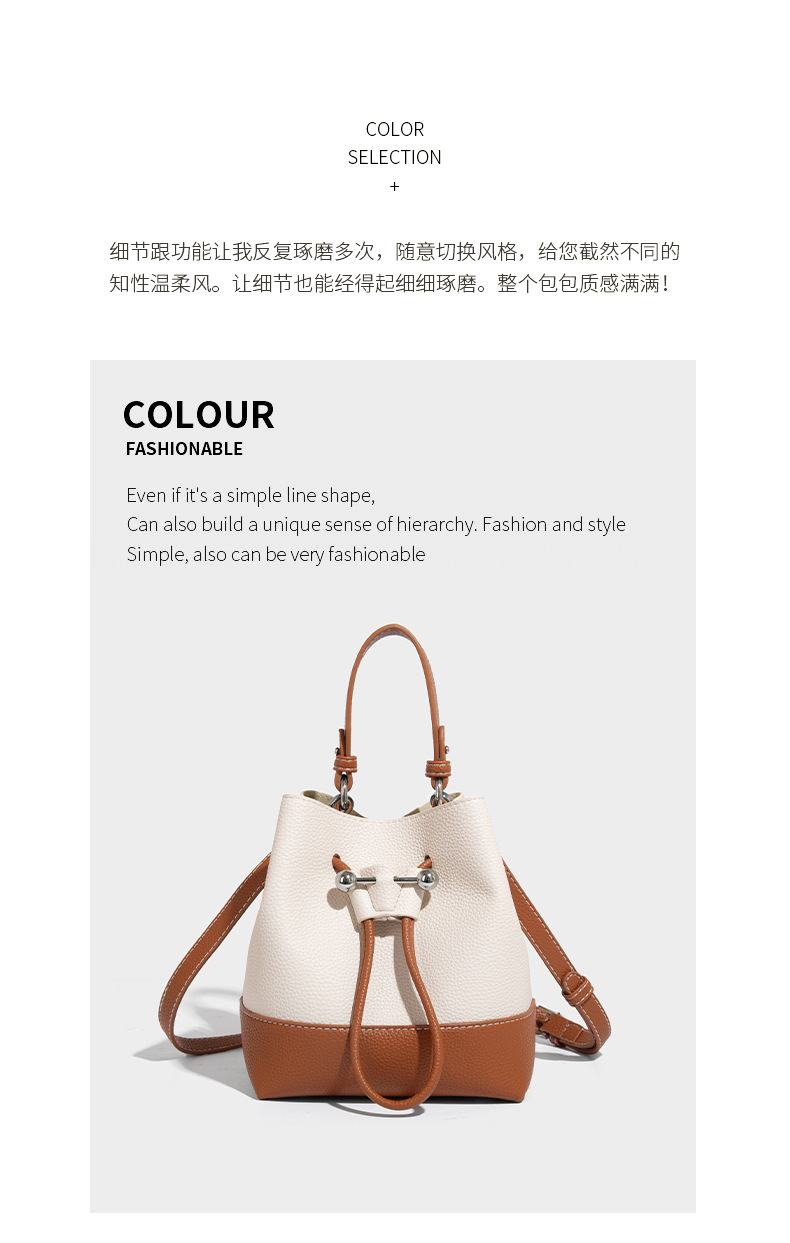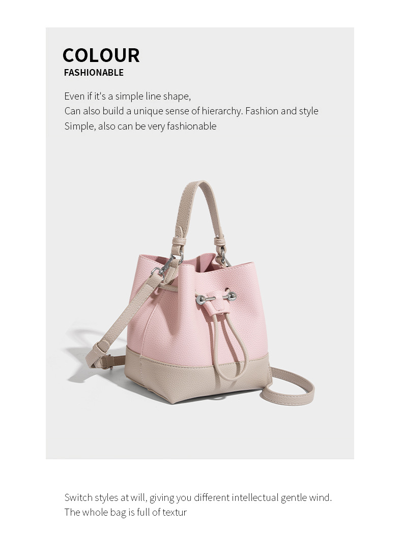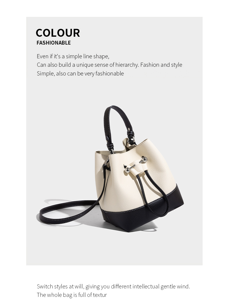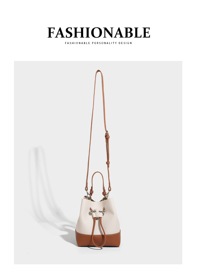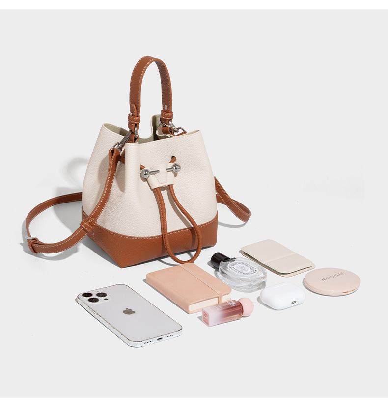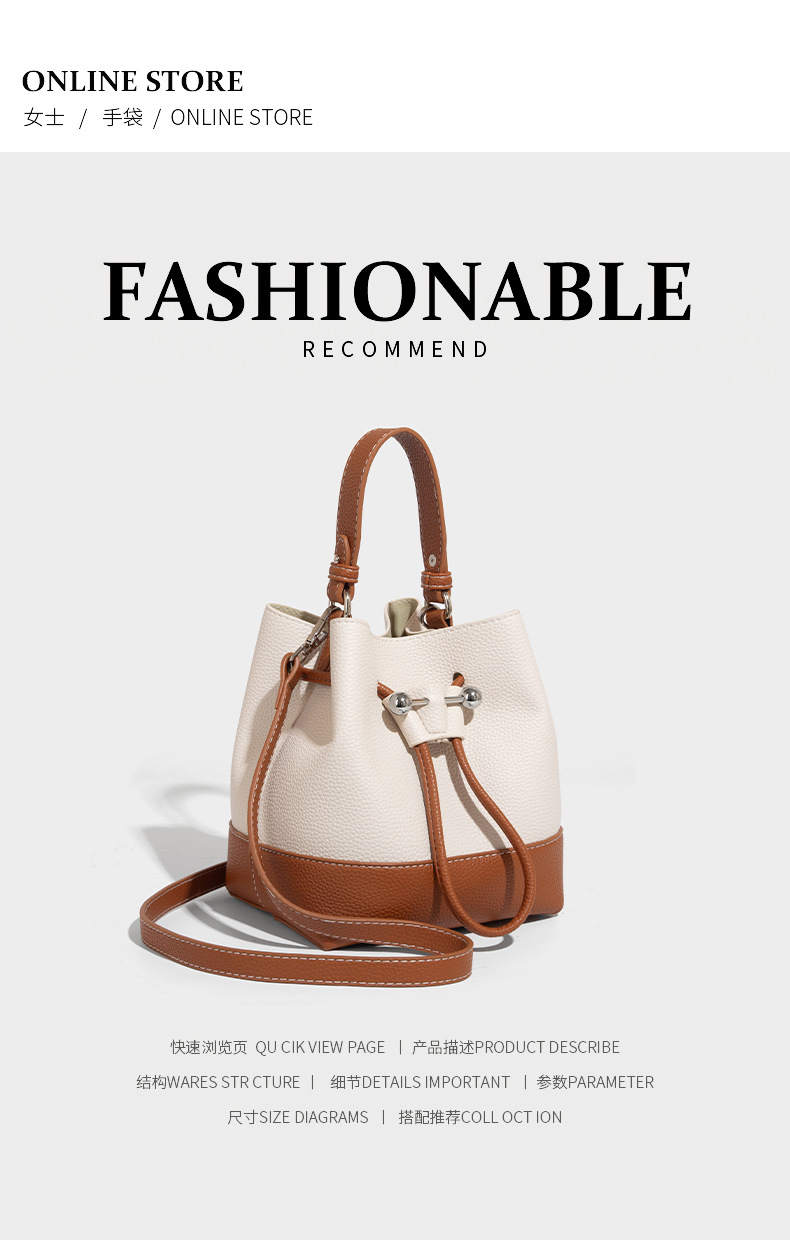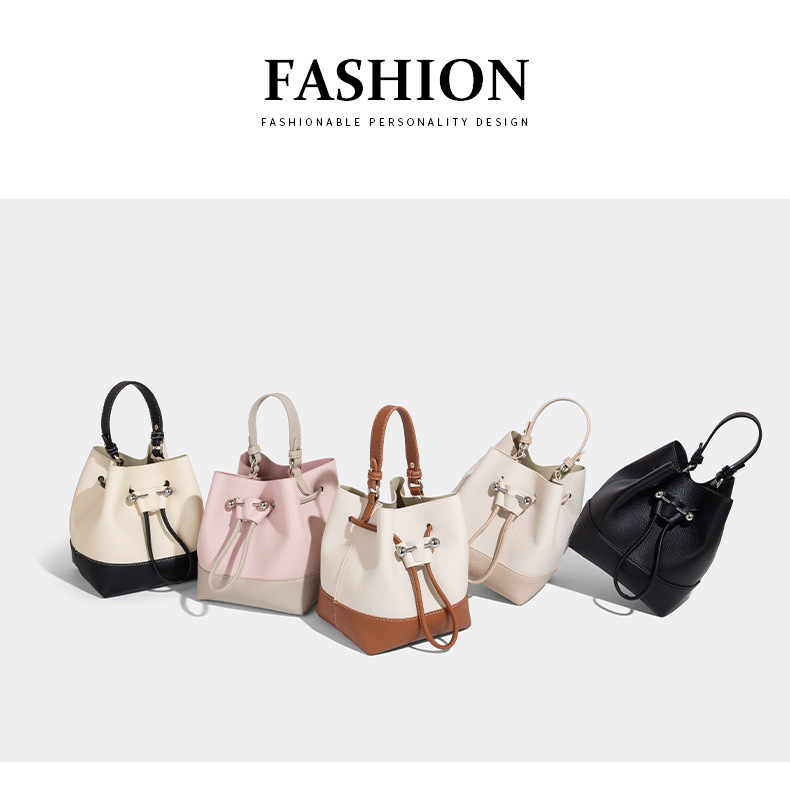 【预售3天】2025新款欧美时尚包包斜挎包抽绳拼接手提水桶包IY8689