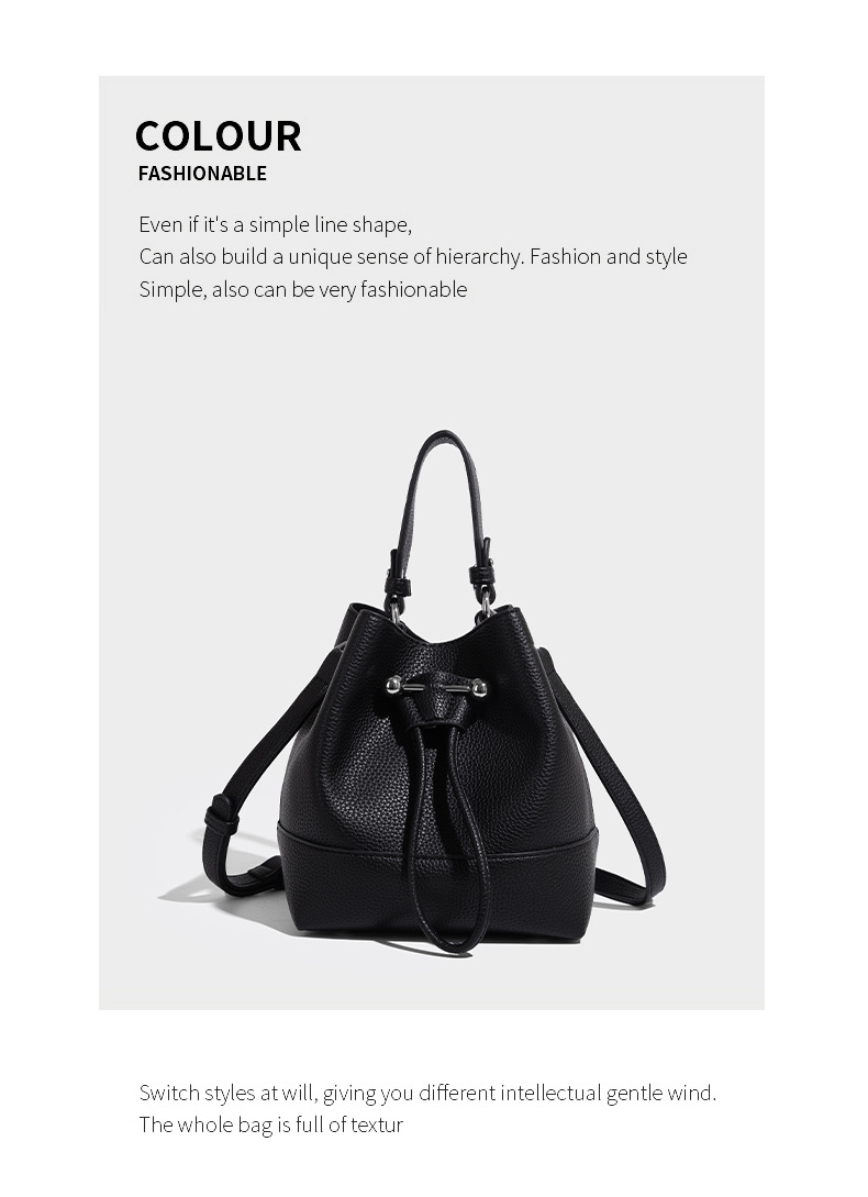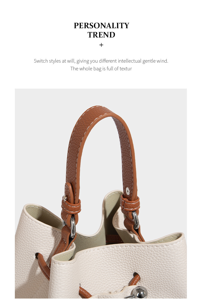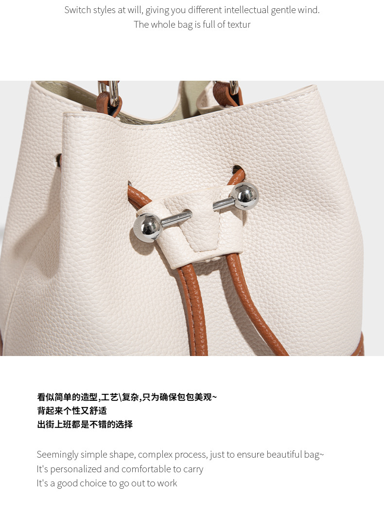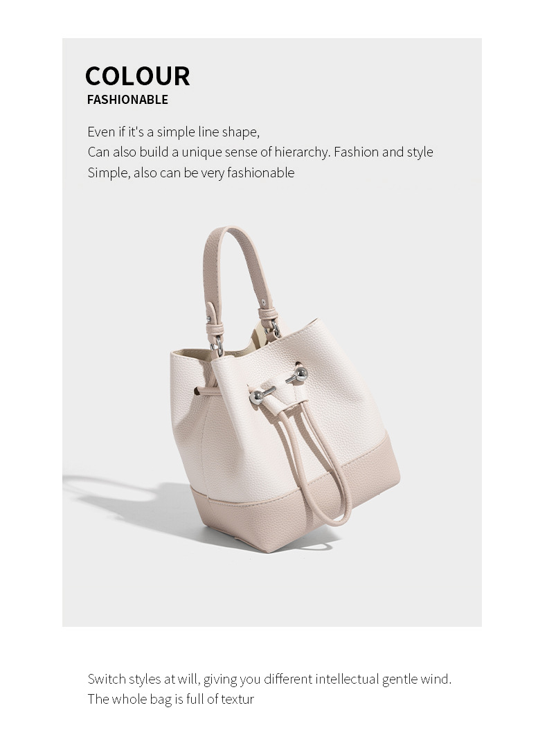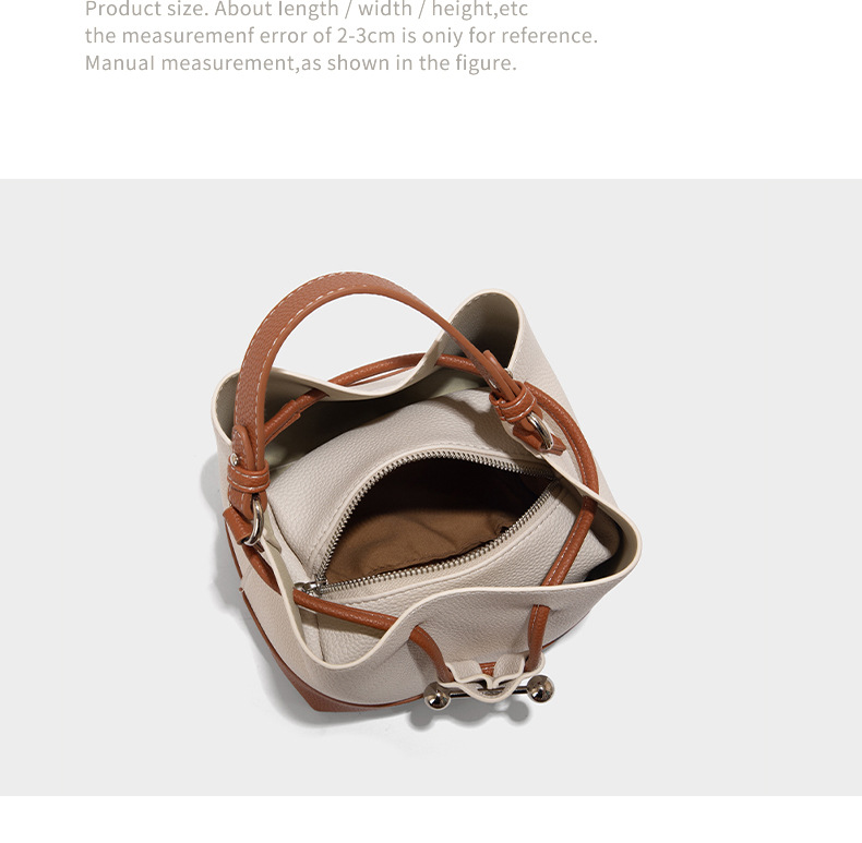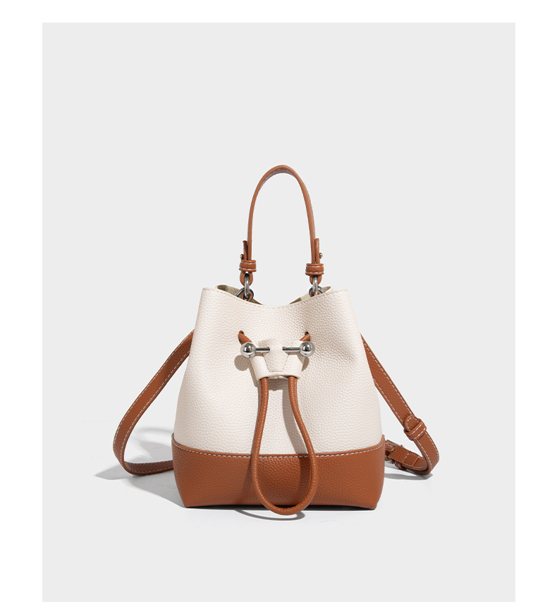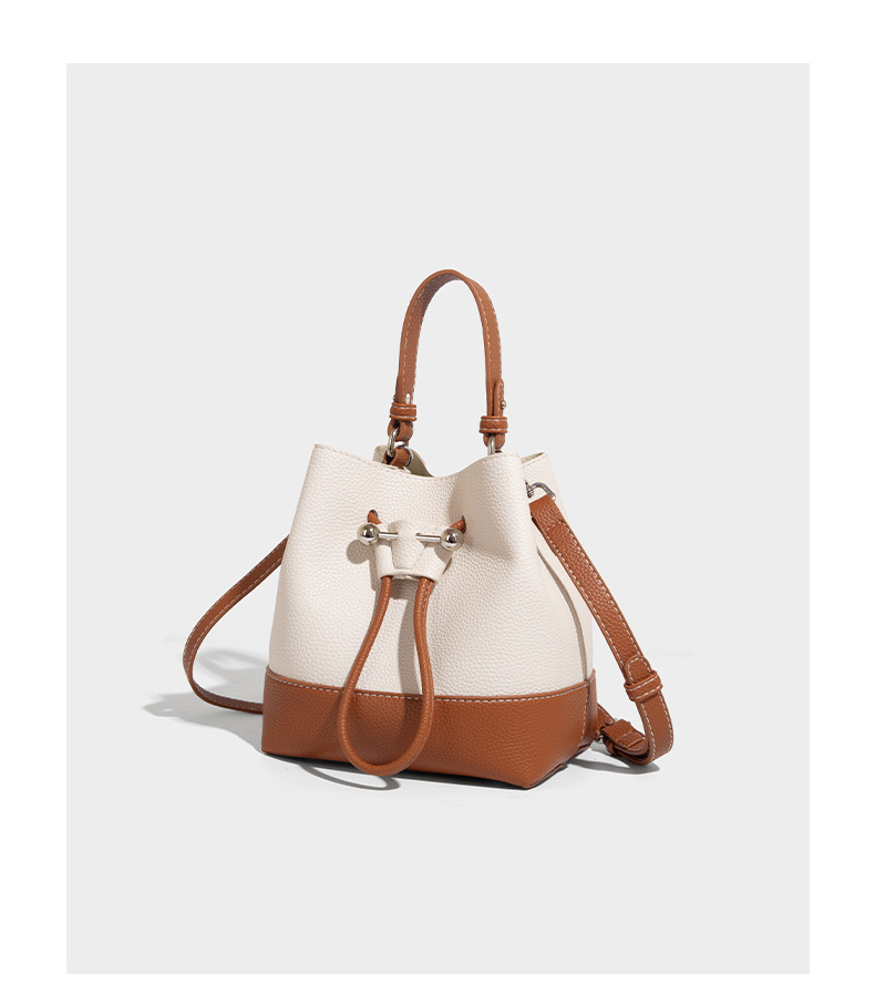 【预售3天】2025新款欧美时尚包包斜挎包抽绳拼接手提水桶包IY8689