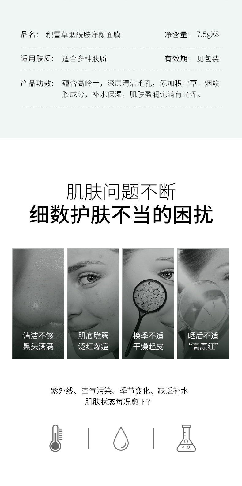 【美妆个护】泊泉雅积雪草烟酰胺净颜面膜补水保湿牛油果睡眠面膜泥膜