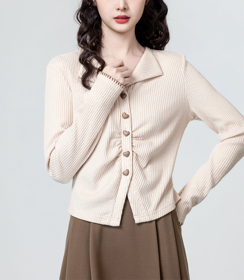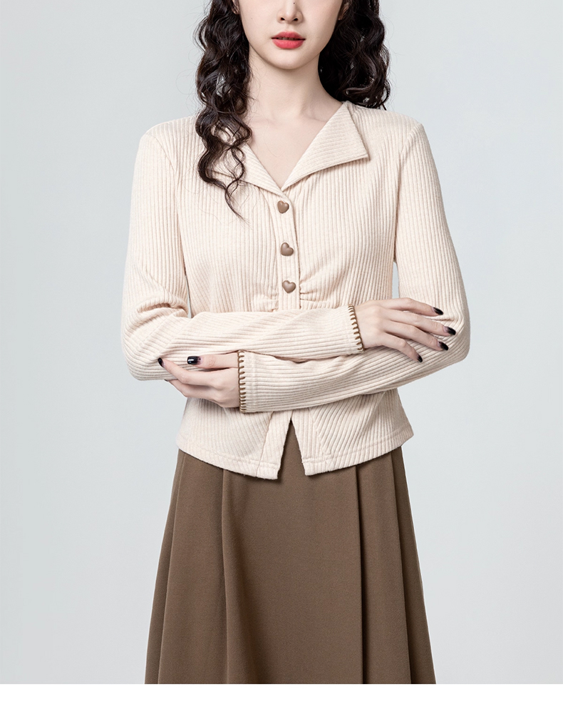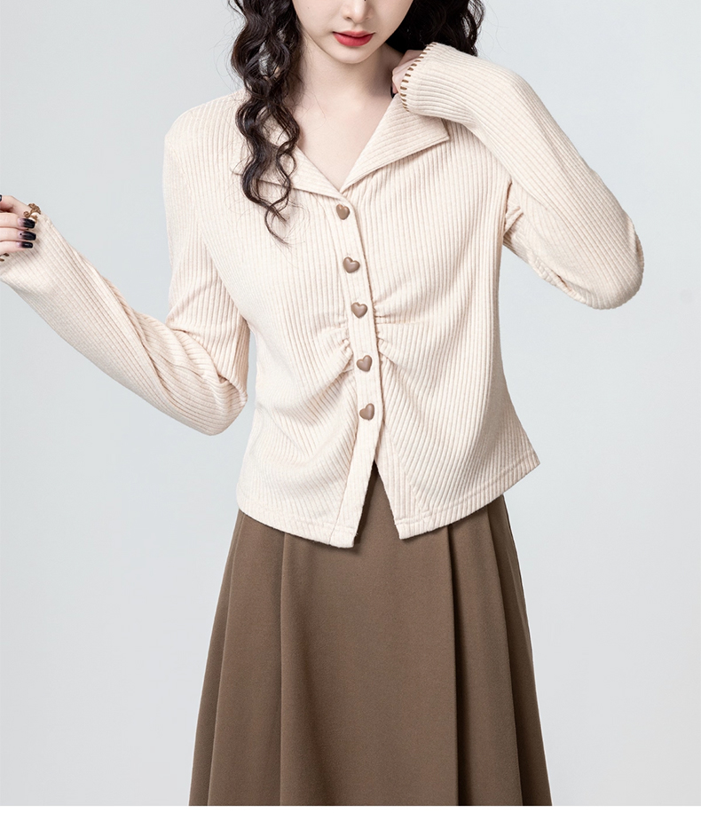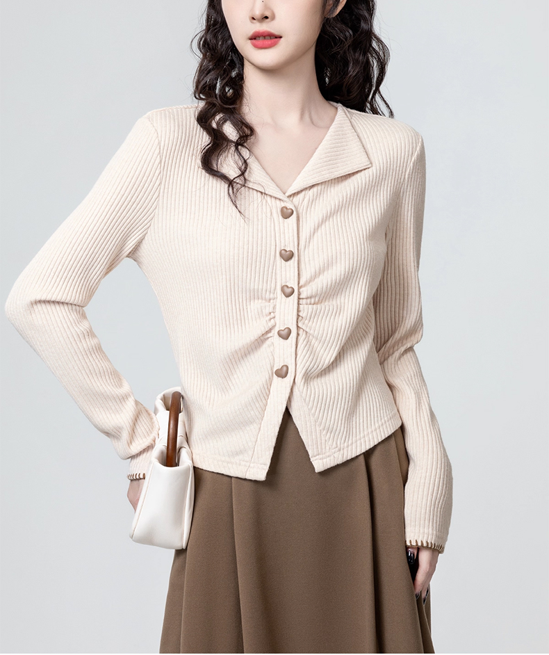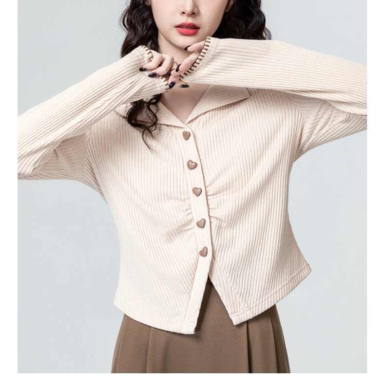 裁缝学苑AQ569V领针织开衫纸样女装新款褶皱翻领短款上衣样板