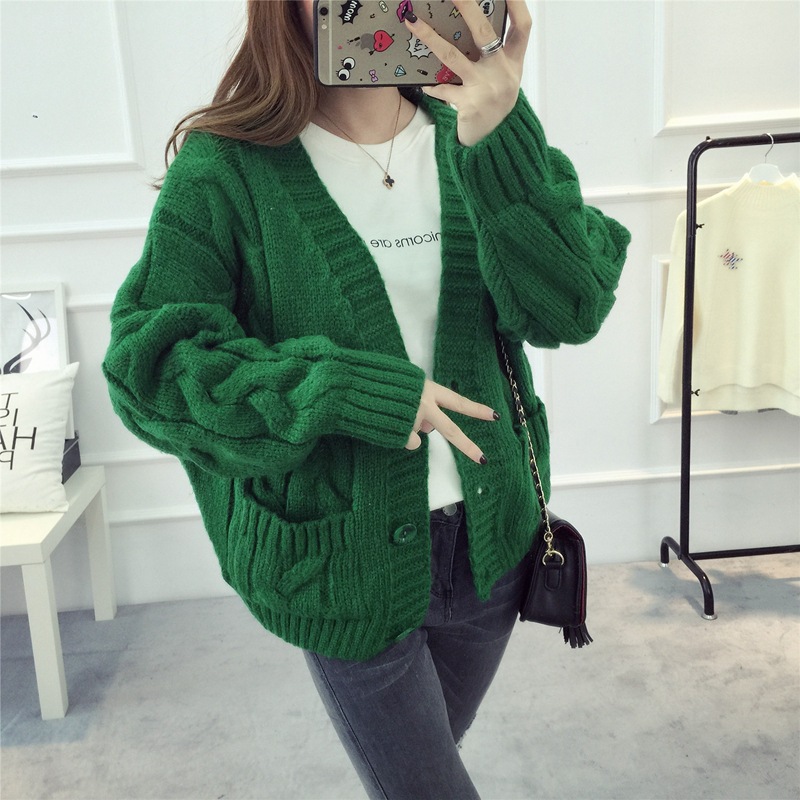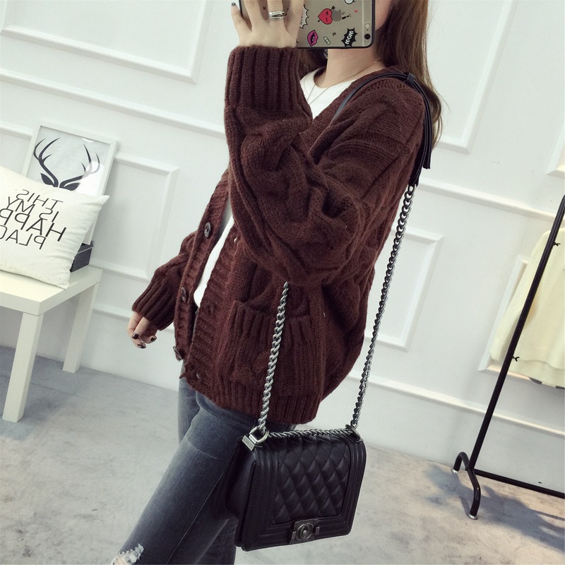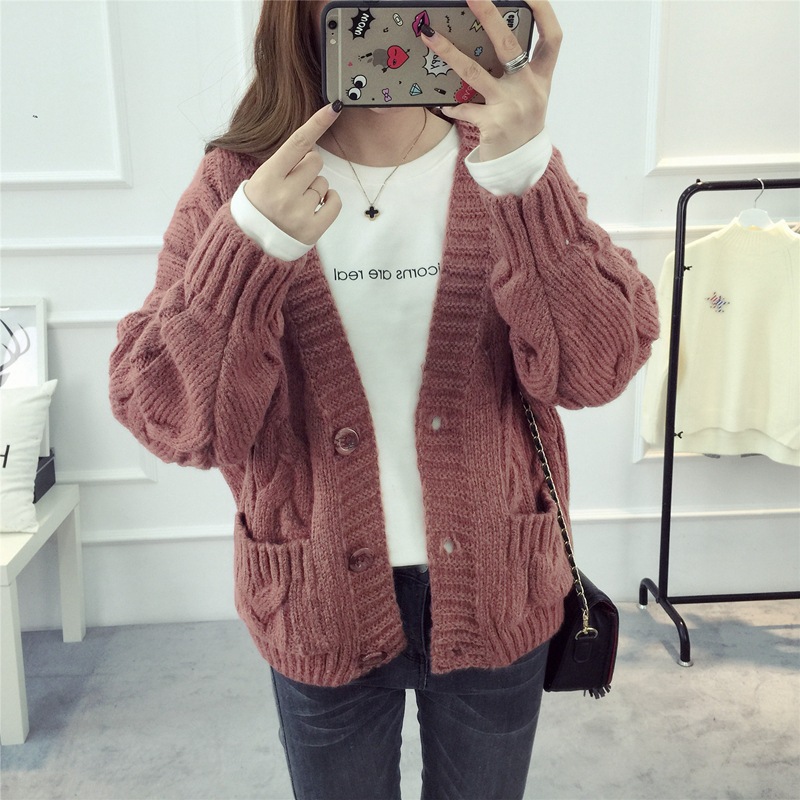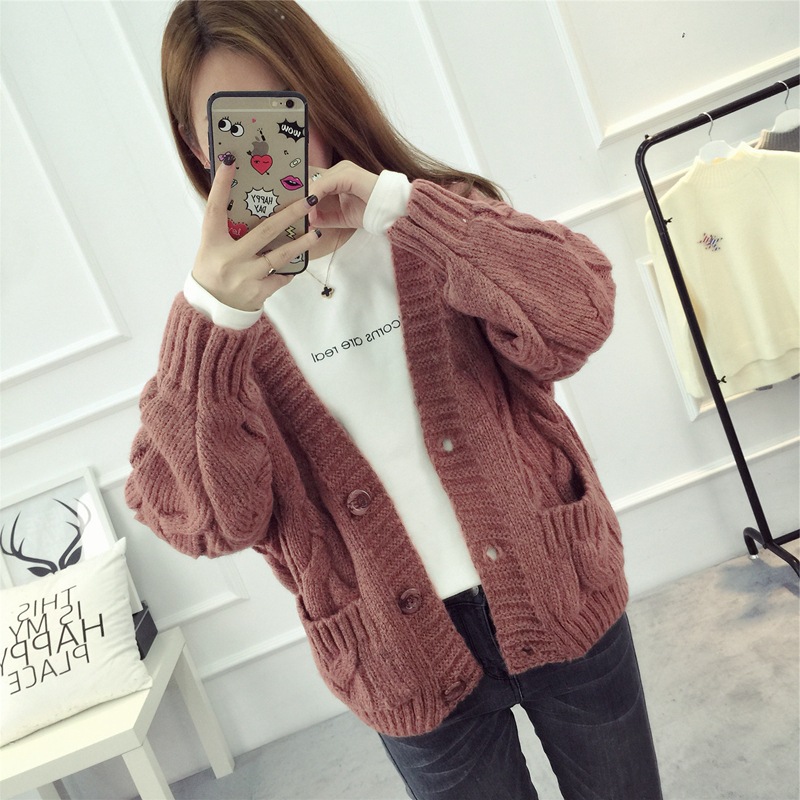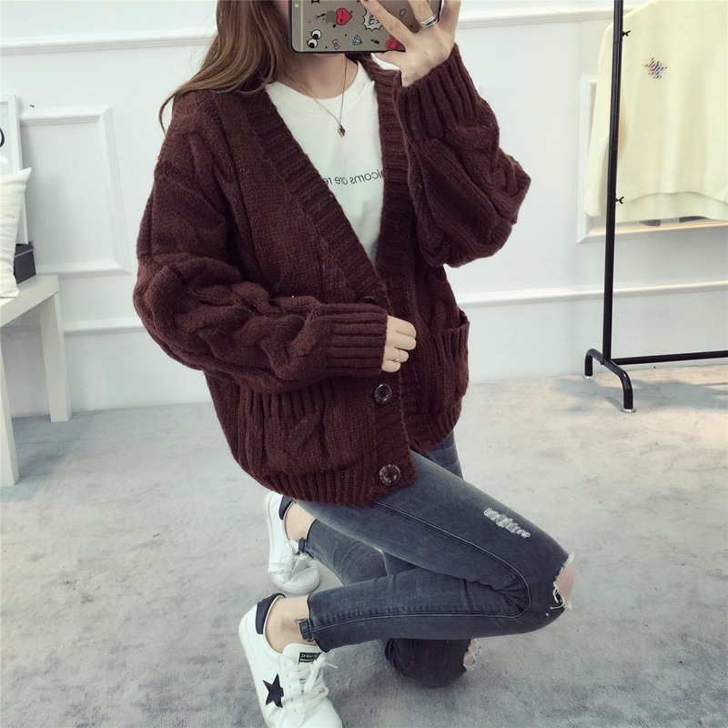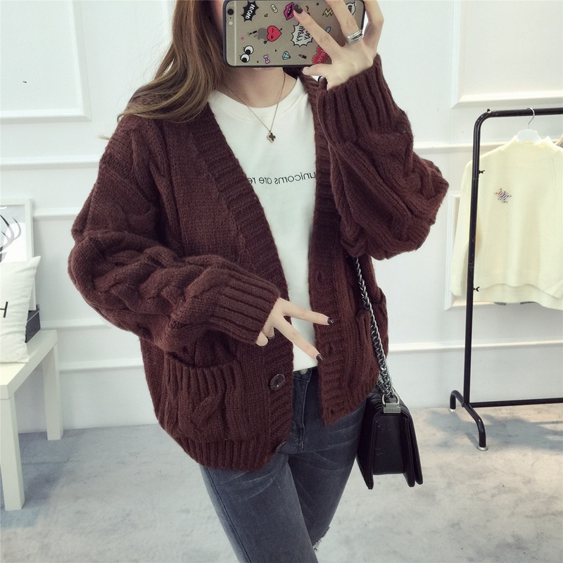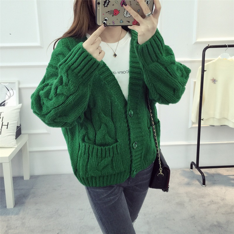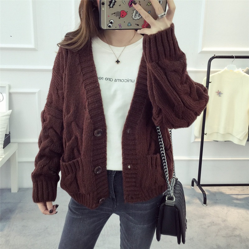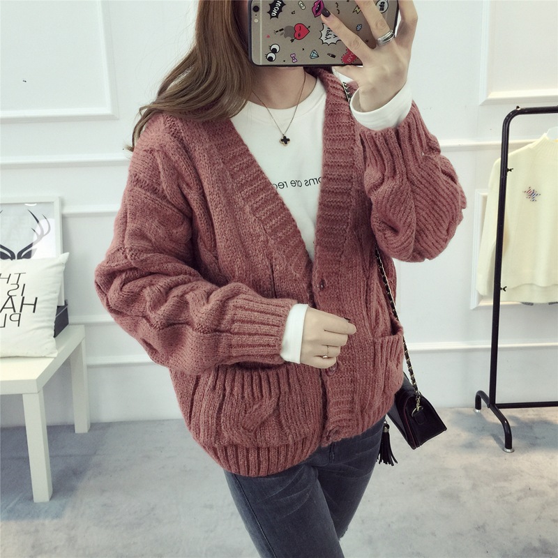 【服饰鞋包】毛衣 女春秋短款韩版女装潮宽松麻花新款V领开衫针织衫厚外套