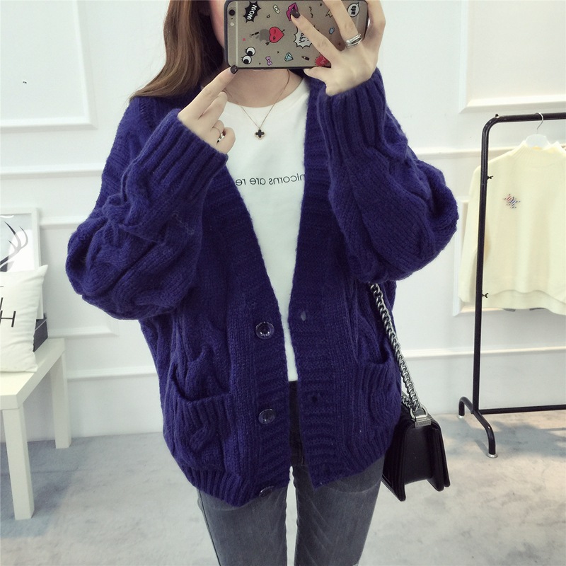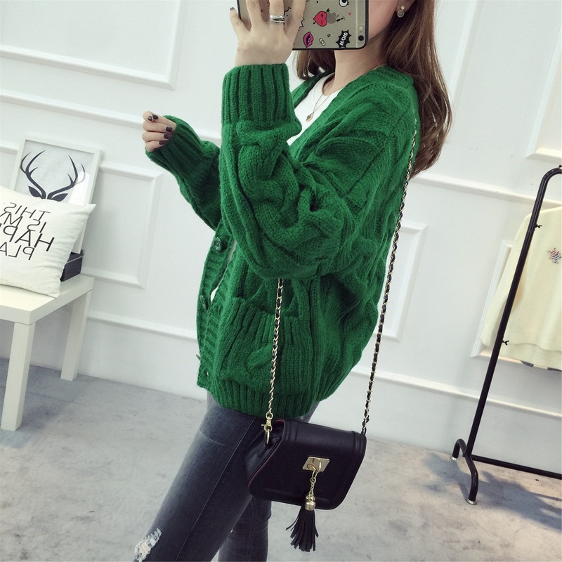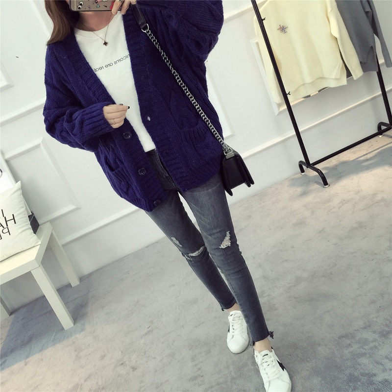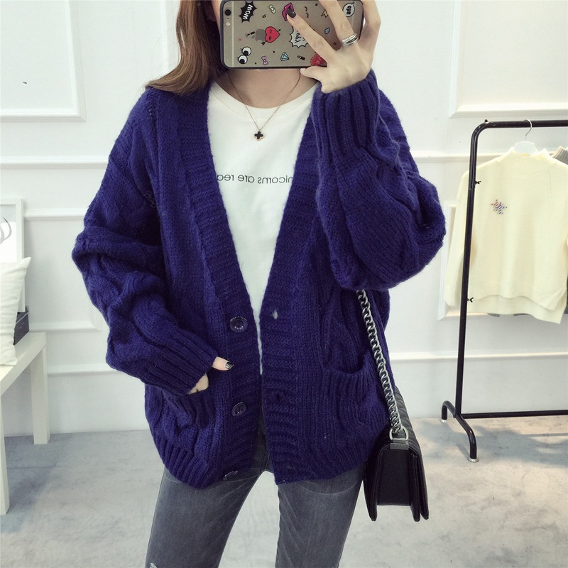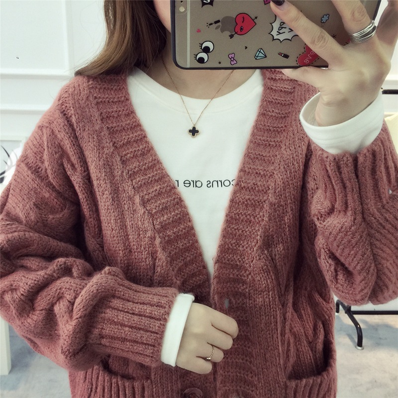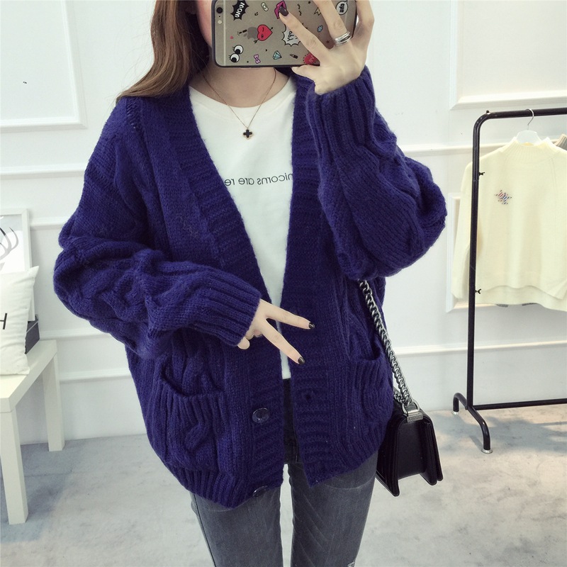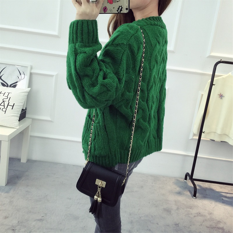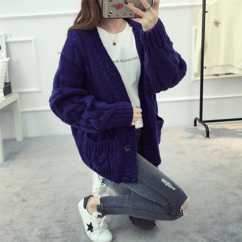 【服饰鞋包】毛衣 女春秋短款韩版女装潮宽松麻花新款V领开衫针织衫厚外套