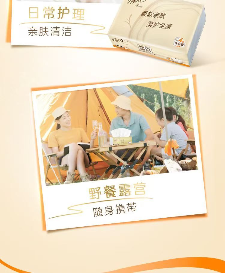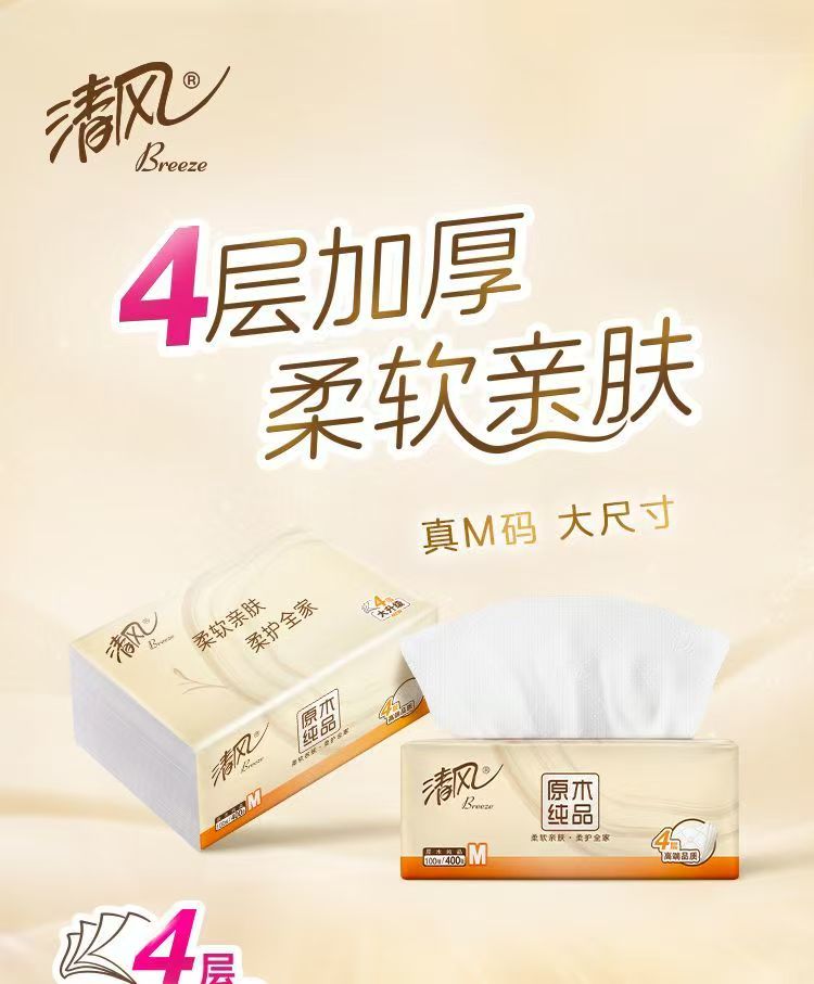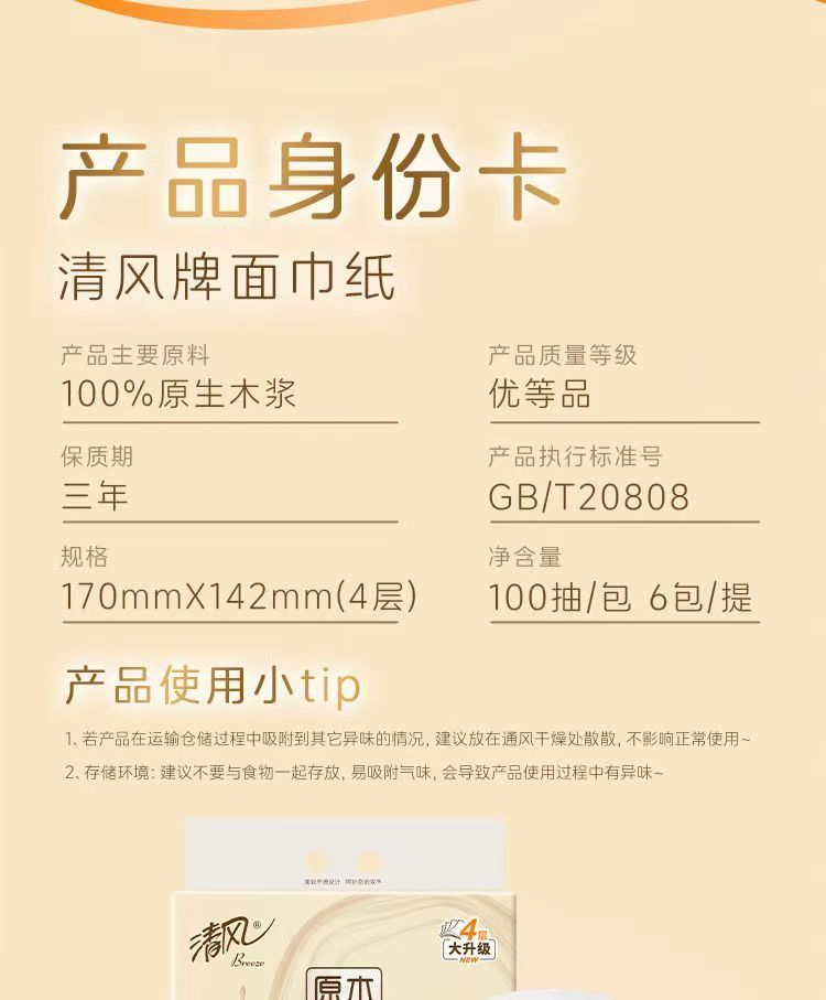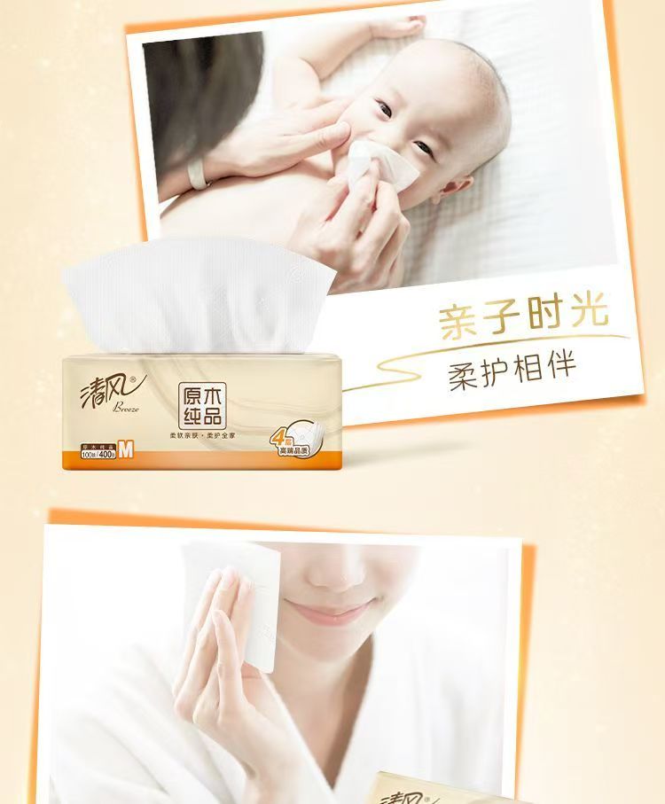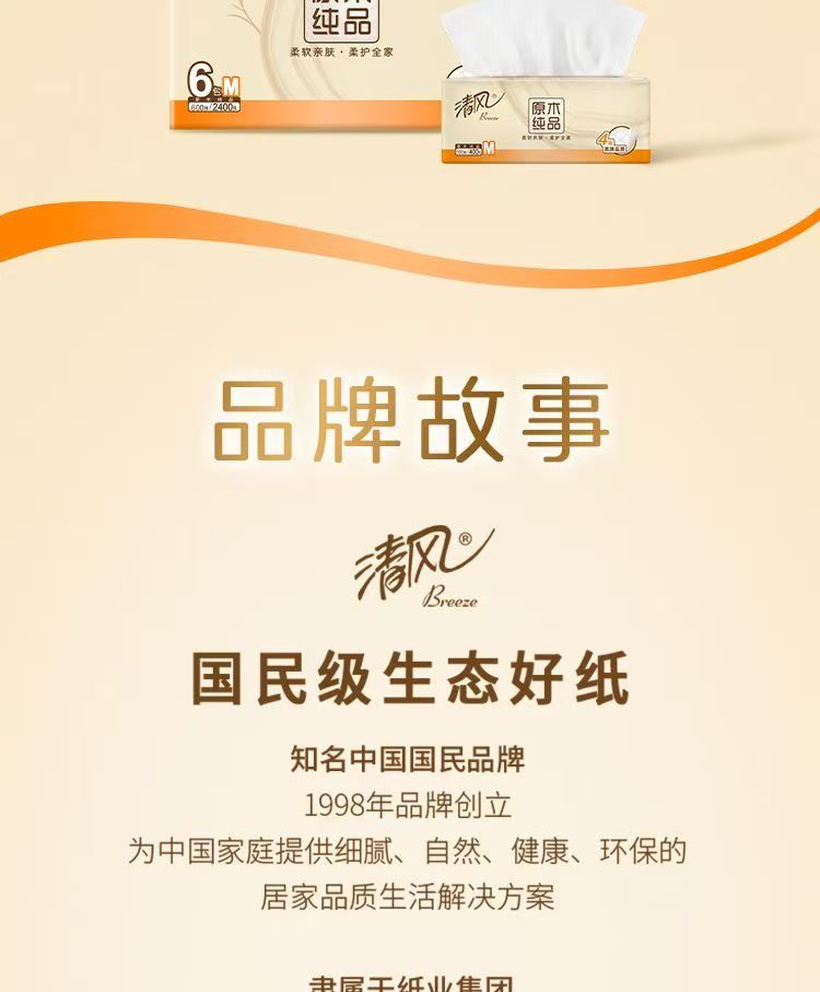 清风原木纯品四层加厚柔软亲肤抽纸 6包/提