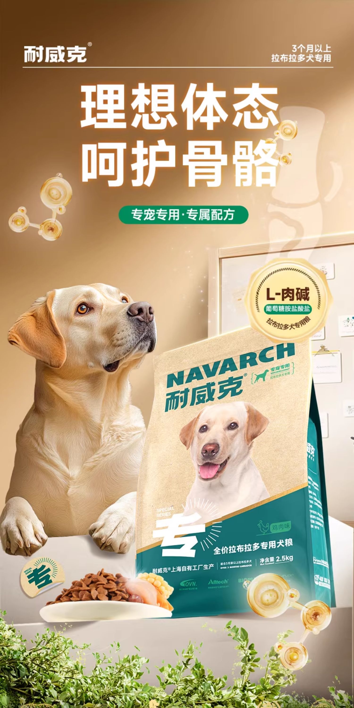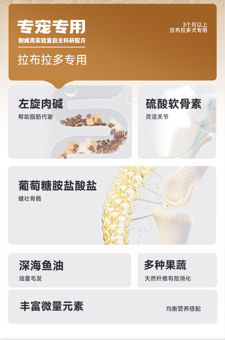 拉布拉多经典专用鲜肉狗粮 | 鸡肉配方 | 保护关节 | 靓毛健肤