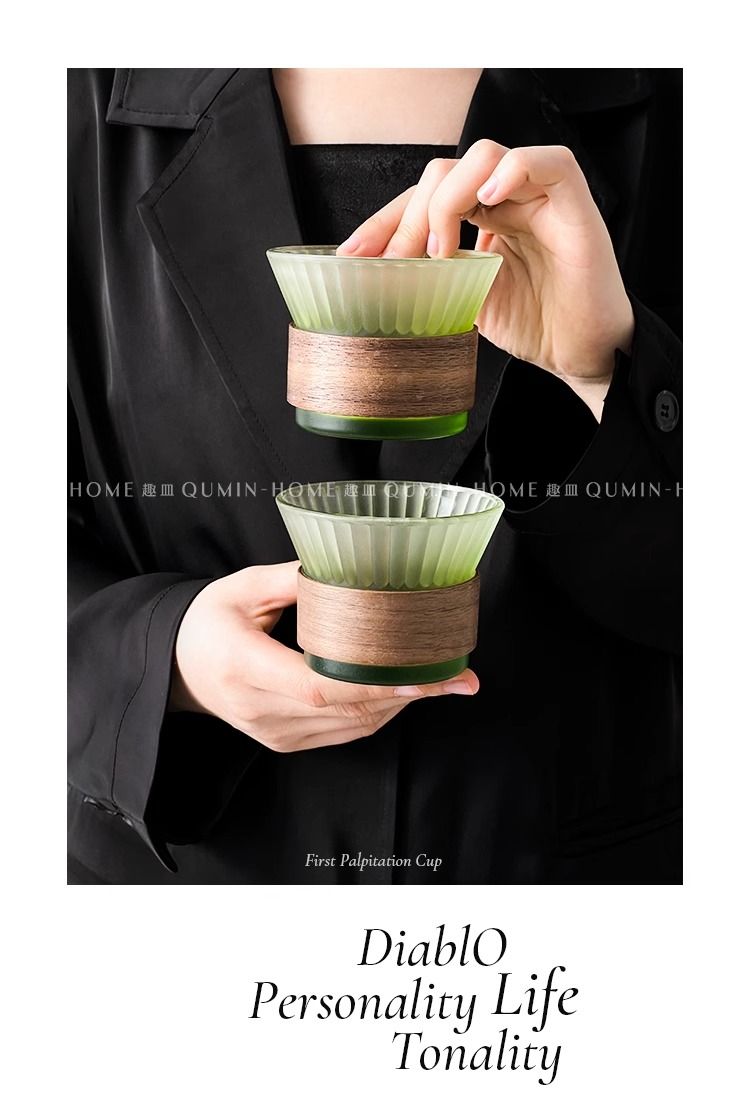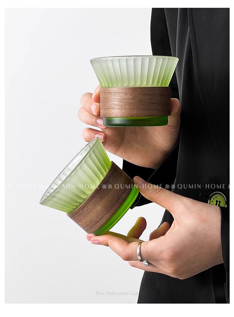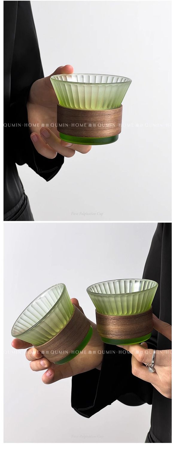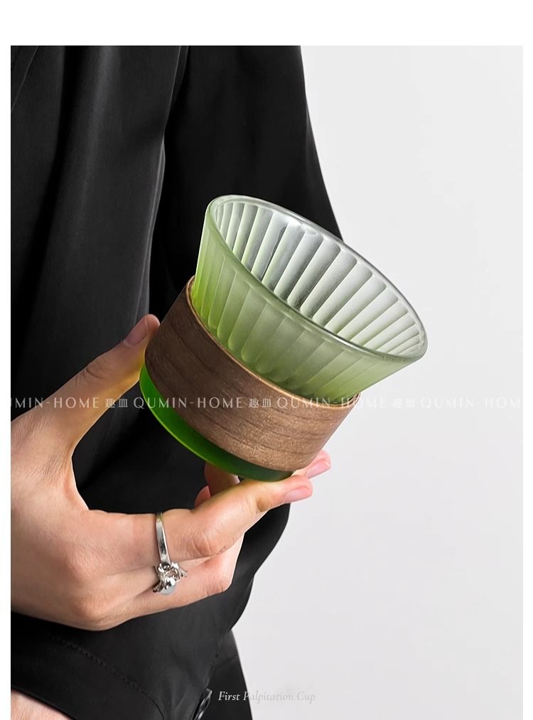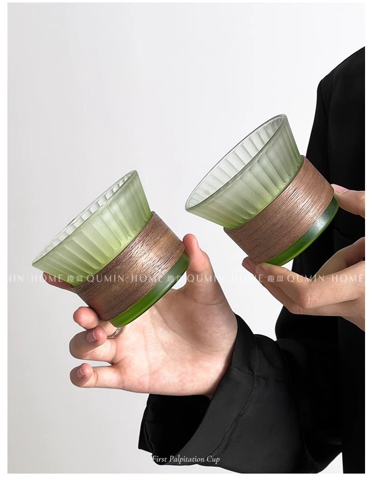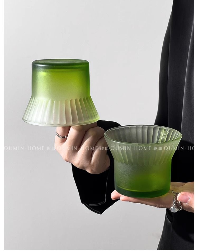 小众渐变绿竖纹玻璃杯家用喝水杯子高级感轻奢咖啡杯冷饮杯