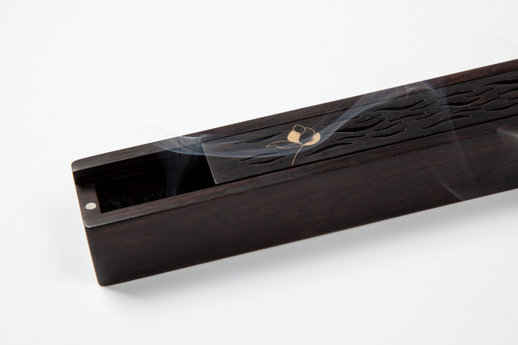 【夏荷】紫光檀镶铜便携随手小香盒两件套