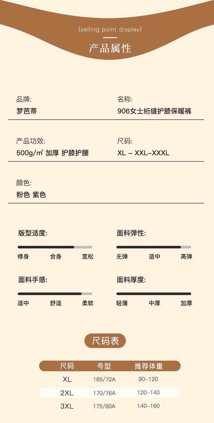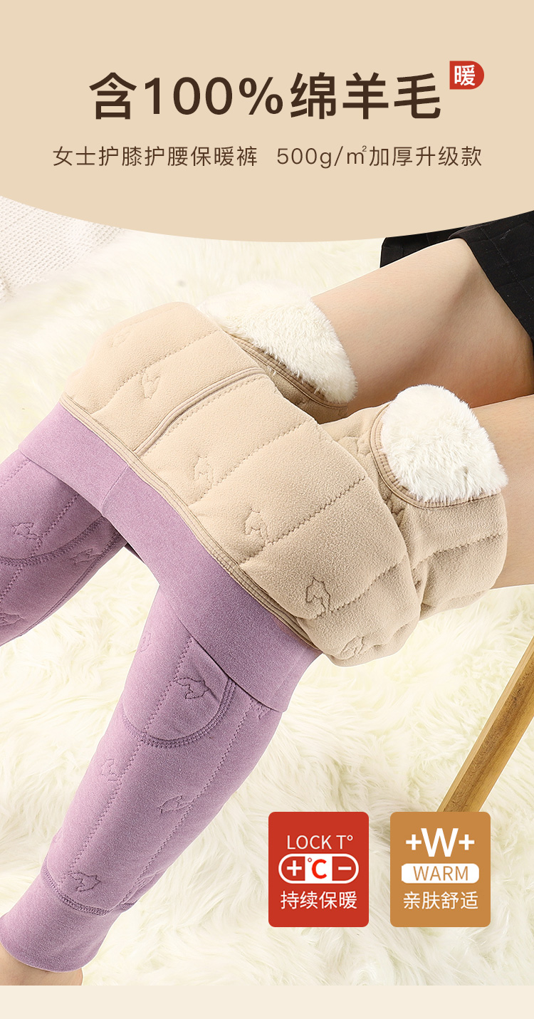 【100%绵羊毛填充】秋冬500g加厚护膝护腰女士保暖裤棉裤女士906女士绗缝护膝保暖裤