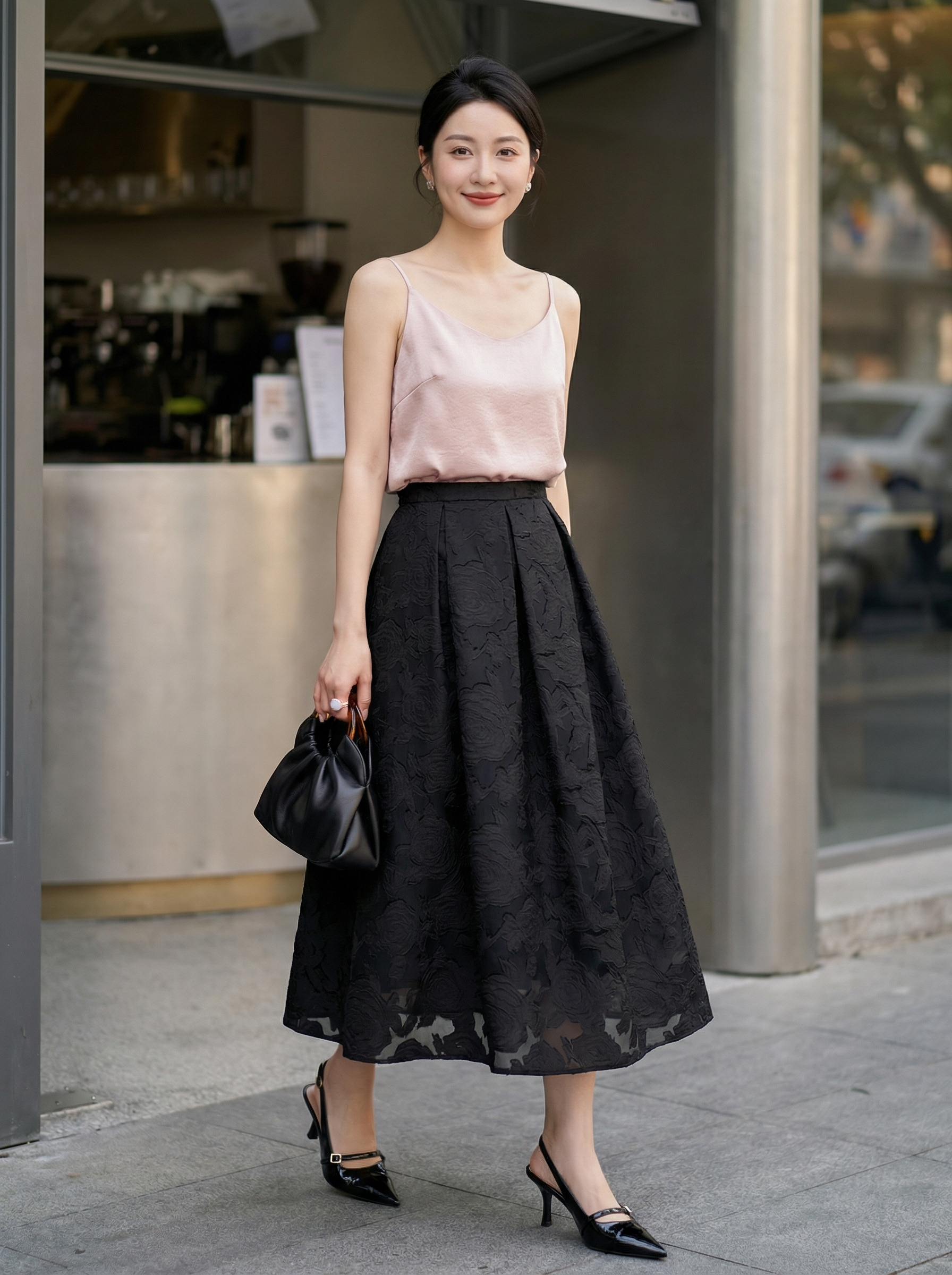 SC2B50 漆黑色 中长裙 四季 通勤优雅立体提花显瘦 高级女装 BERNIEELEN伯妮斯茵