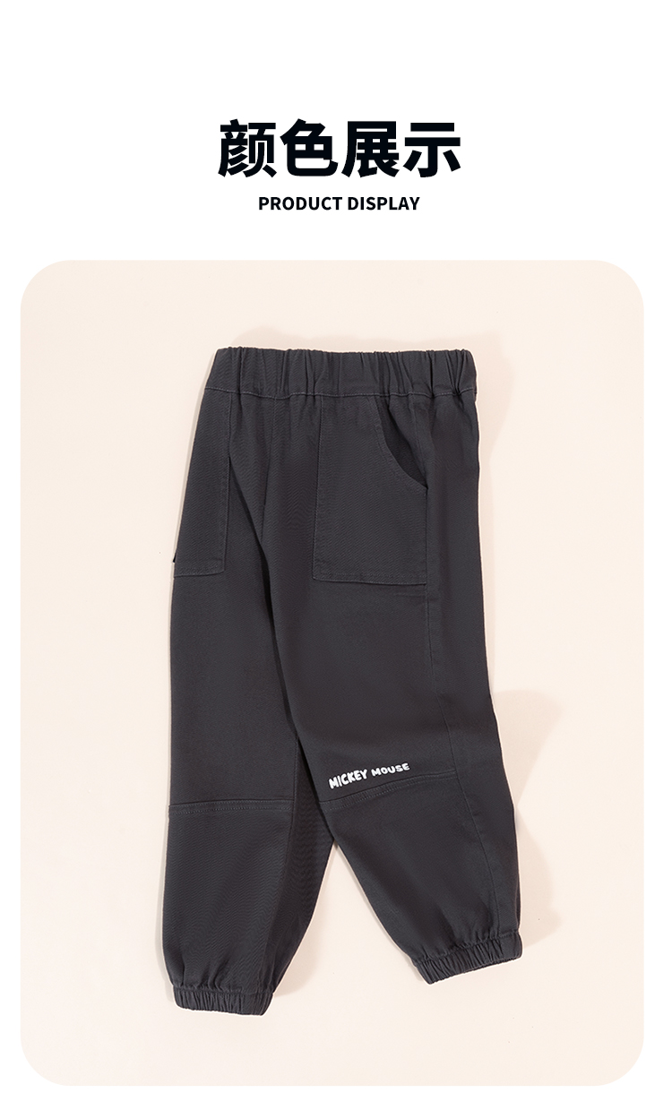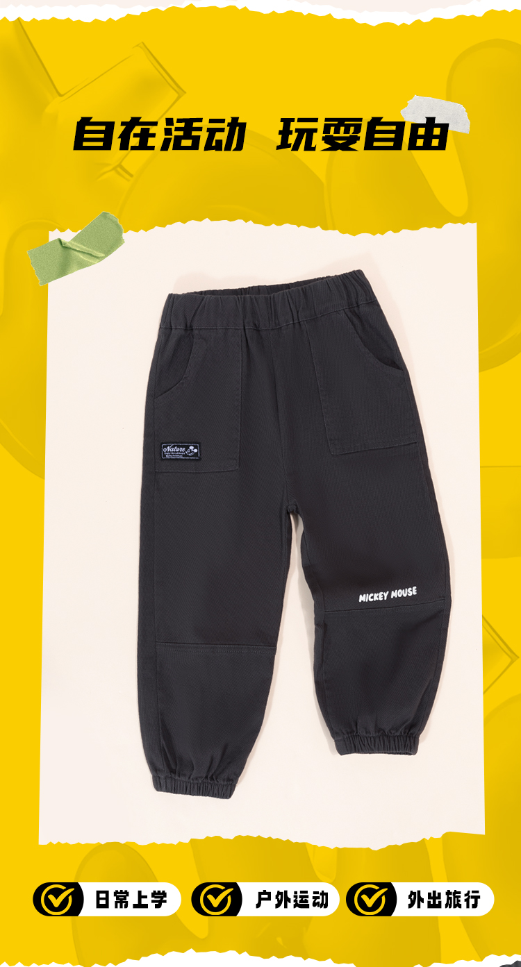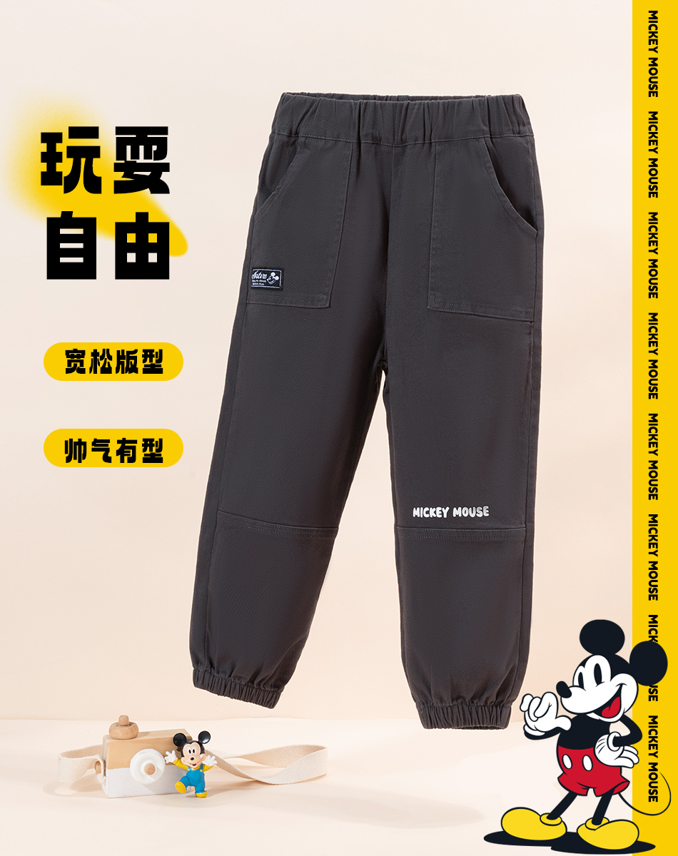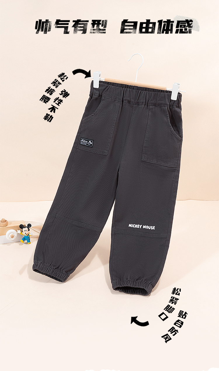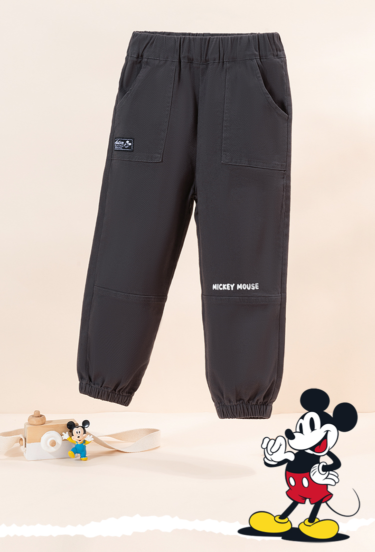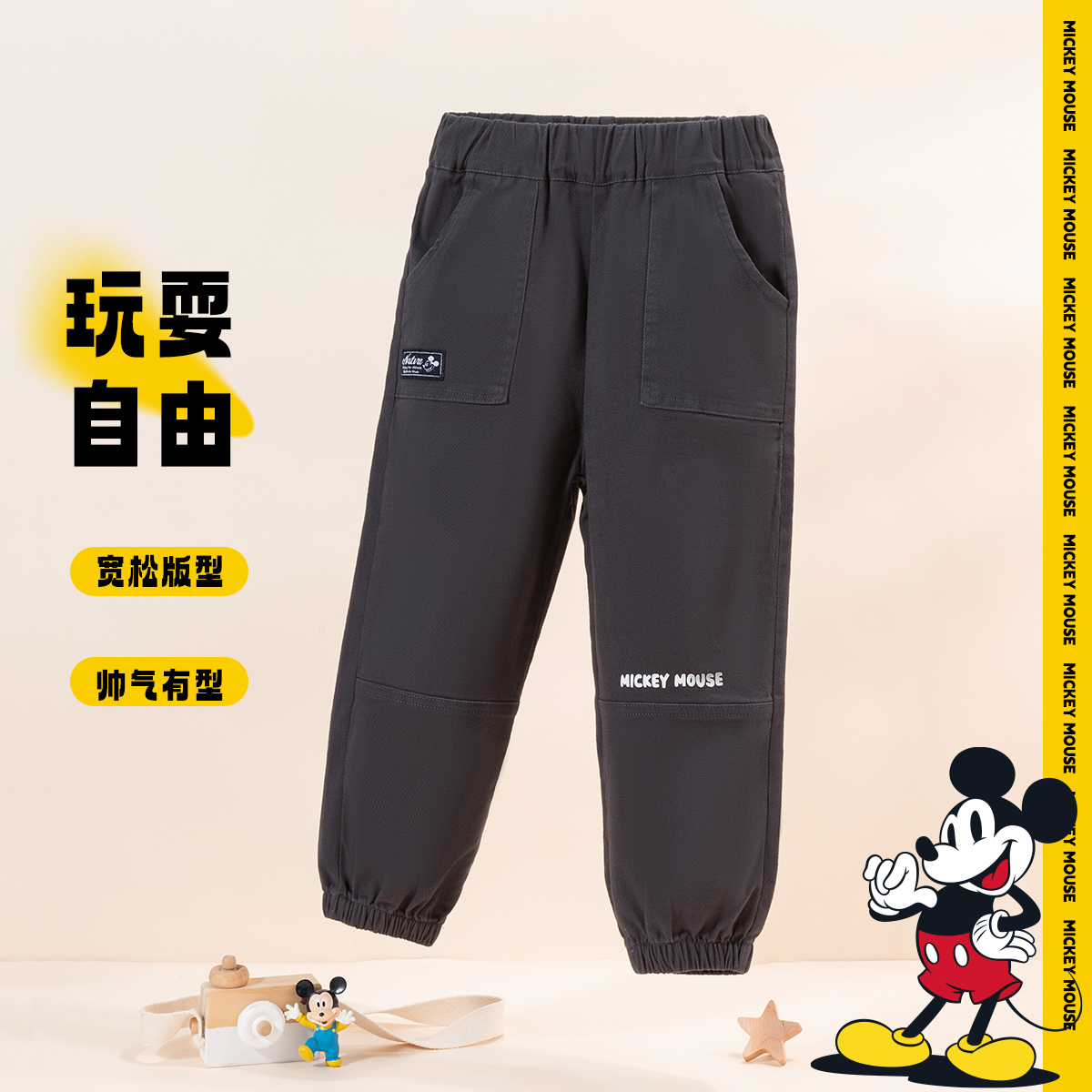 迪士尼春季2024新品男童纯棉简约休闲百搭长裤婴幼儿小童长裤子ZD3DK003