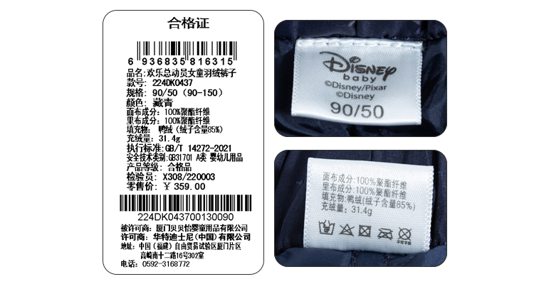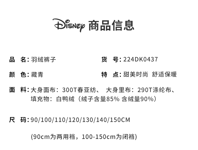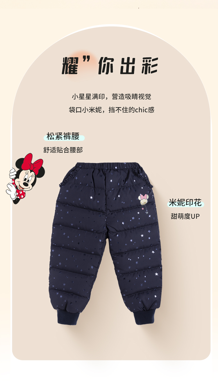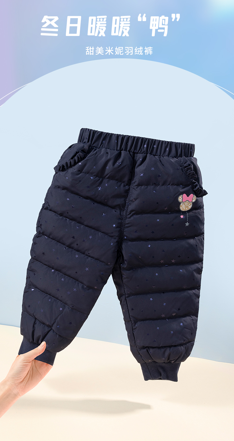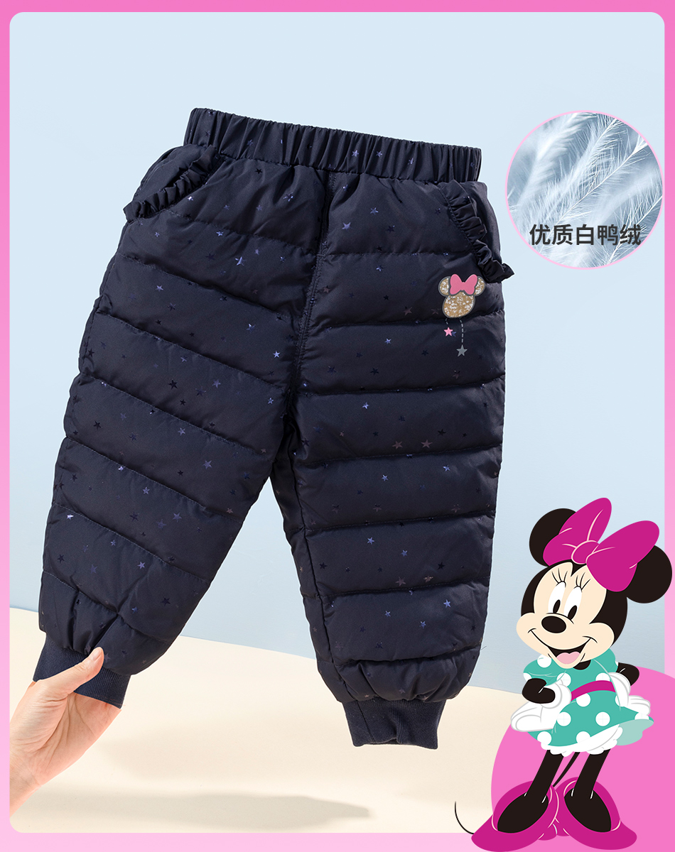 迪士尼【厚实保暖】冬季女童甜美羽绒休闲裤婴幼儿防风外出长裤224DK0437