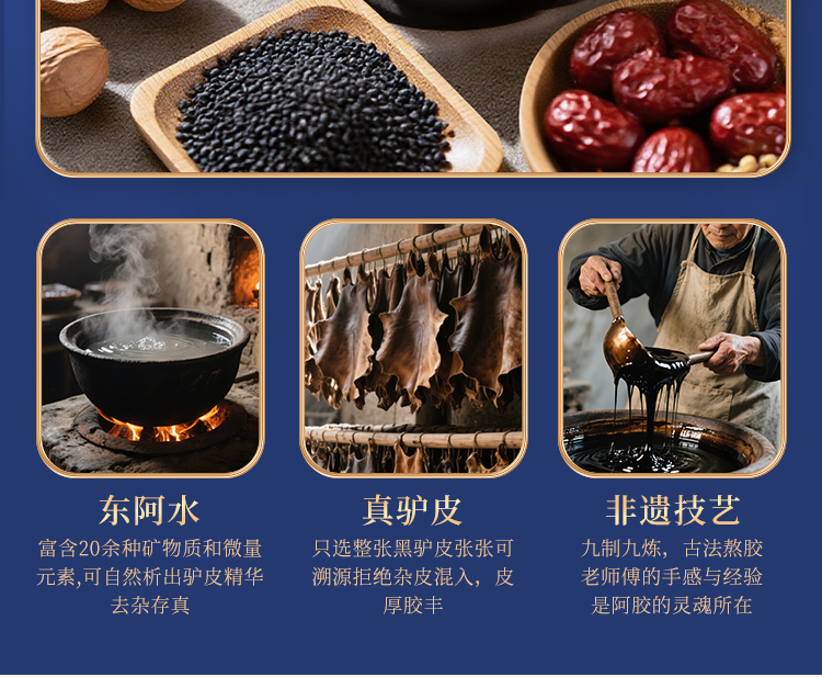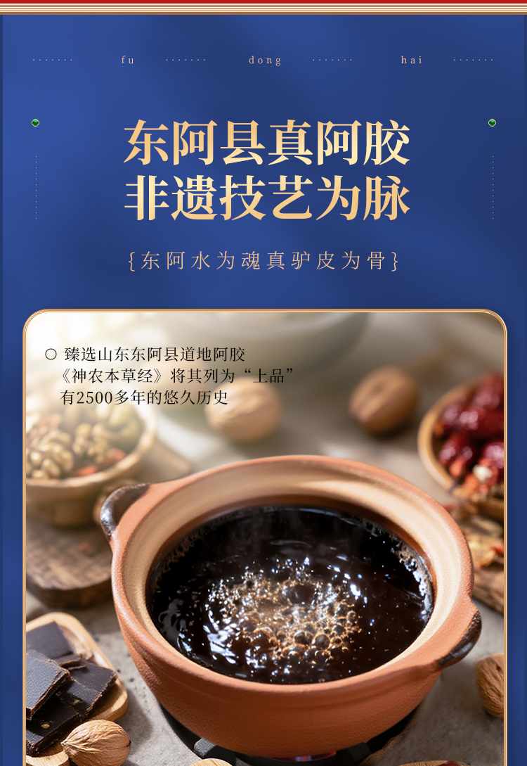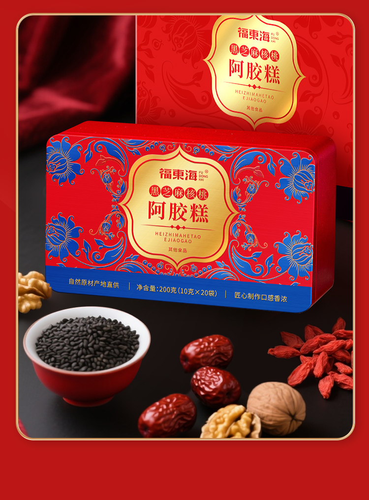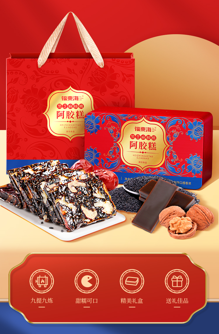 福东海 黑芝麻核桃阿胶糕200克 即食零食阿胶固元糕补品送长辈 开袋即食