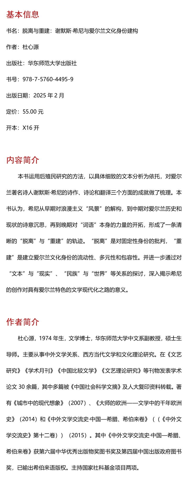 脱离与重建 谢默斯·希尼与爱尔兰文化身份建构 杜心源