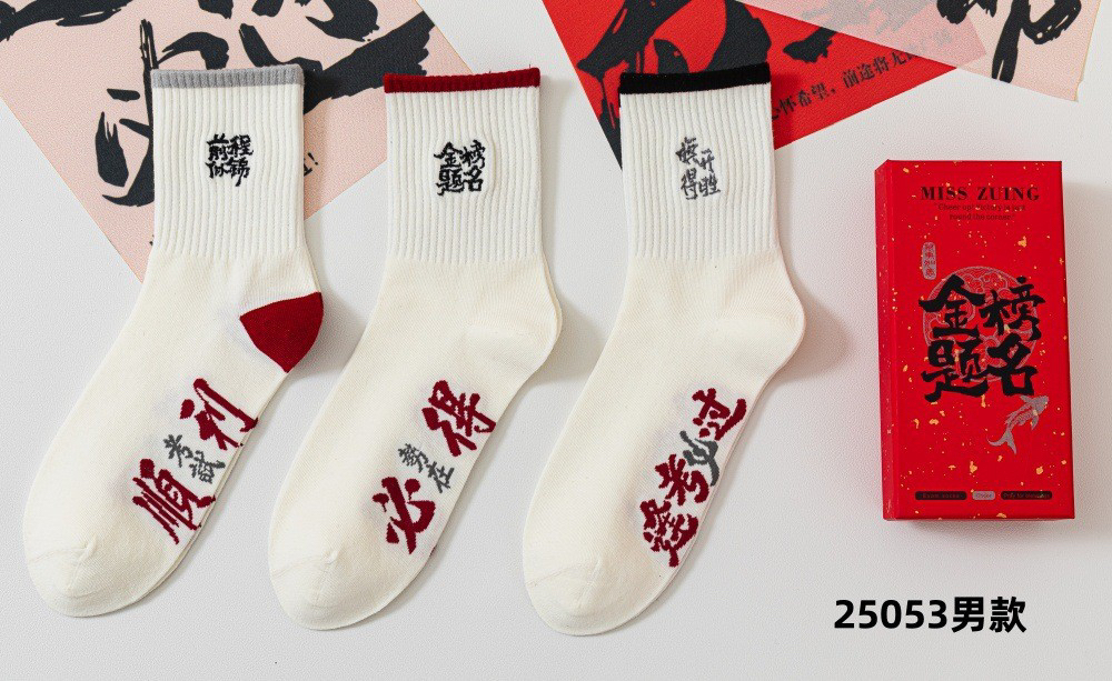 3双装!春夏全棉状元袜高考女袜男袜中筒袜礼盒+礼袋 无骨工艺更舒适 金榜题名 旗开得胜 逢考必过 美好祝愿~
