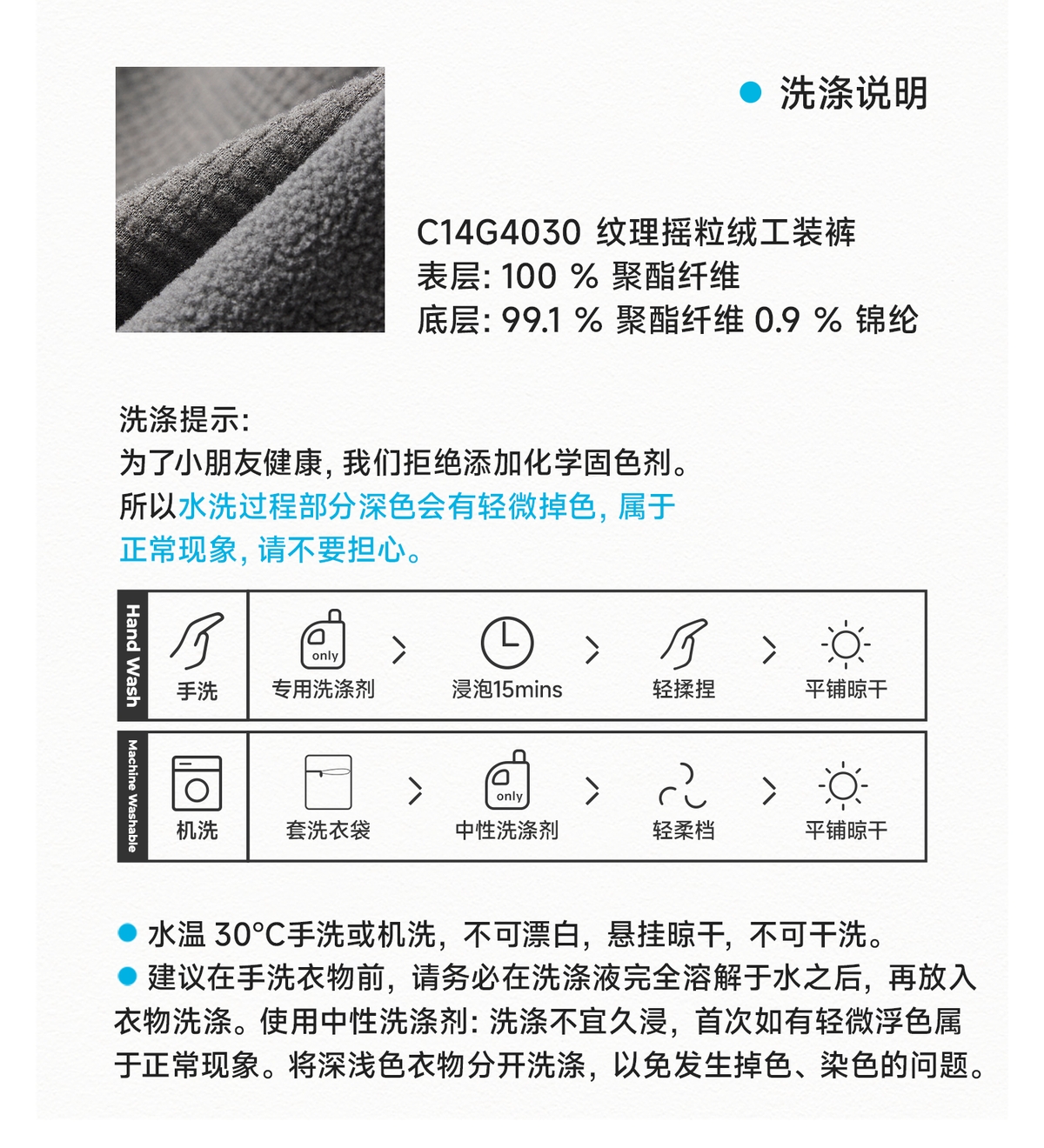 【达人专属】allblu幼岚【纹理摇粒绒工装裤】儿童裤子男童女童秋冬季保暖裤子