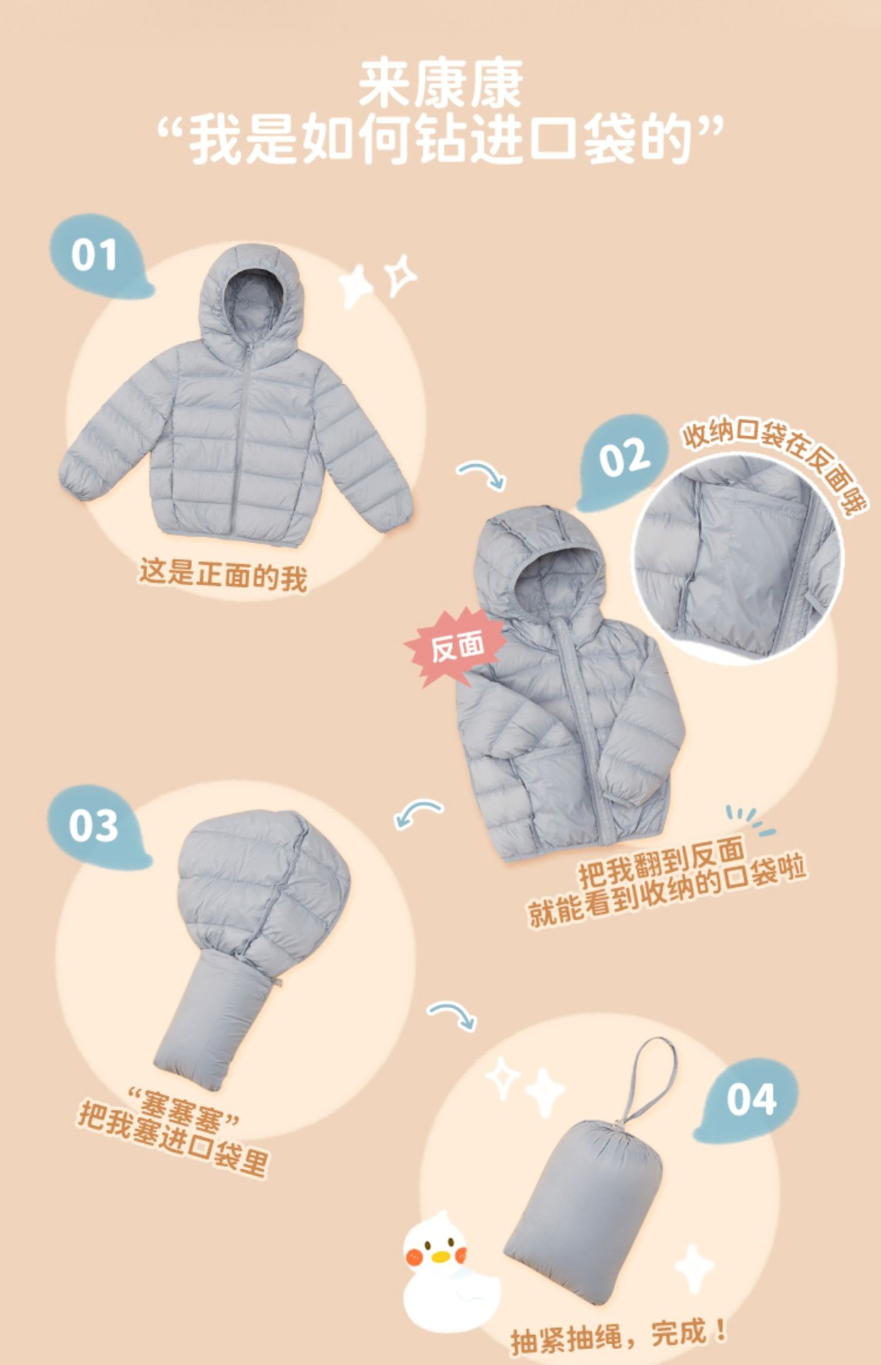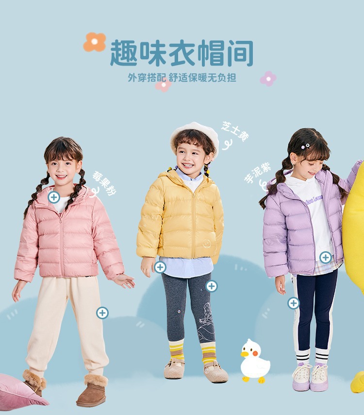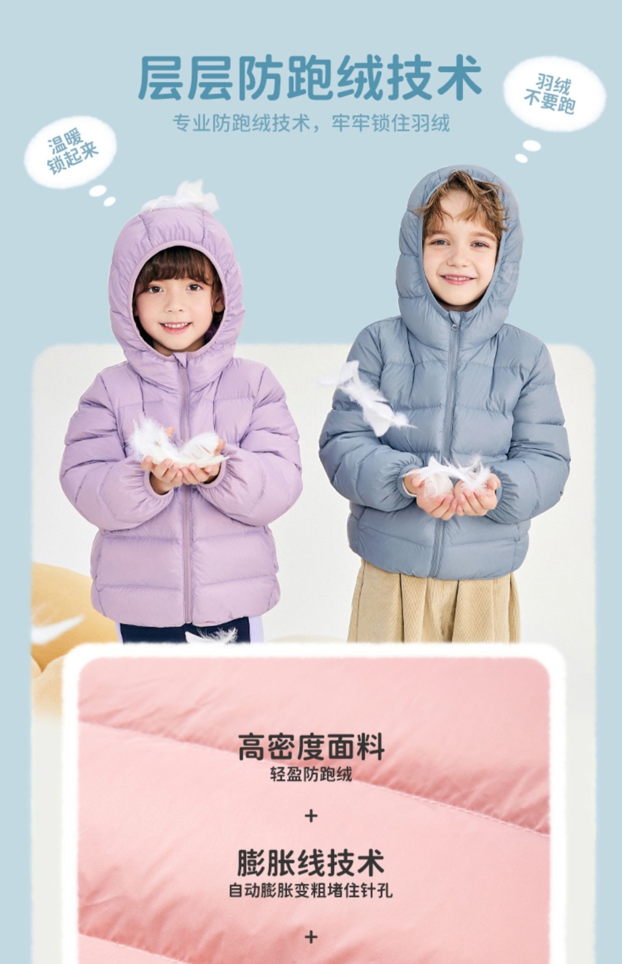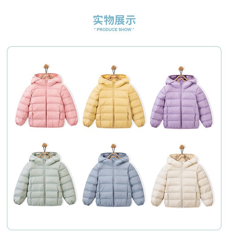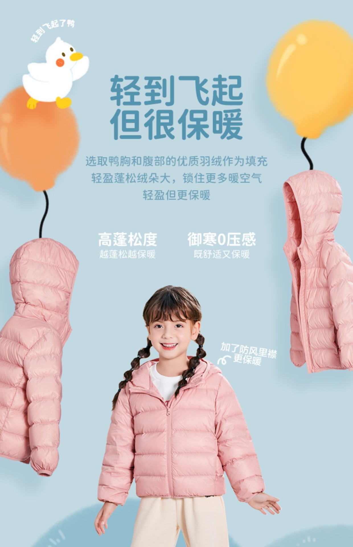 儿童轻薄款羽绒服童装冬季新款男女童小孩宝宝连帽白鸭绒短款外套