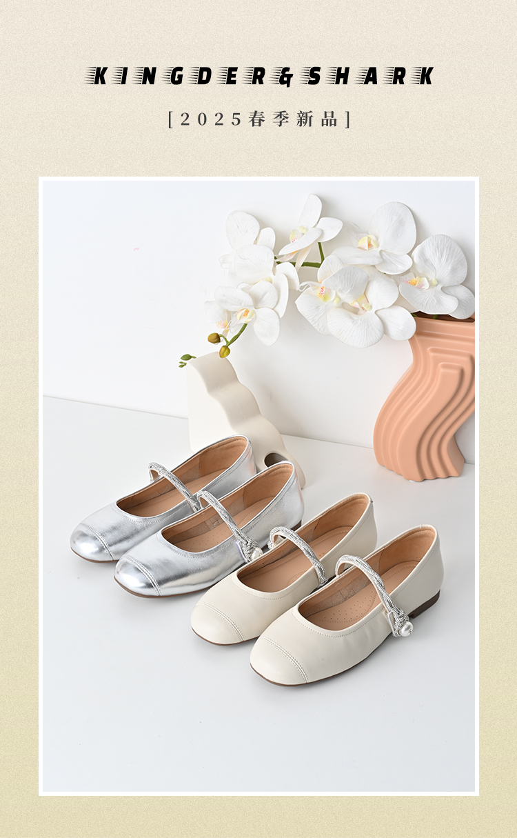 经典鲨2025春季新品时尚简约一字带平底舒适通勤气质单鞋女KG25-517031