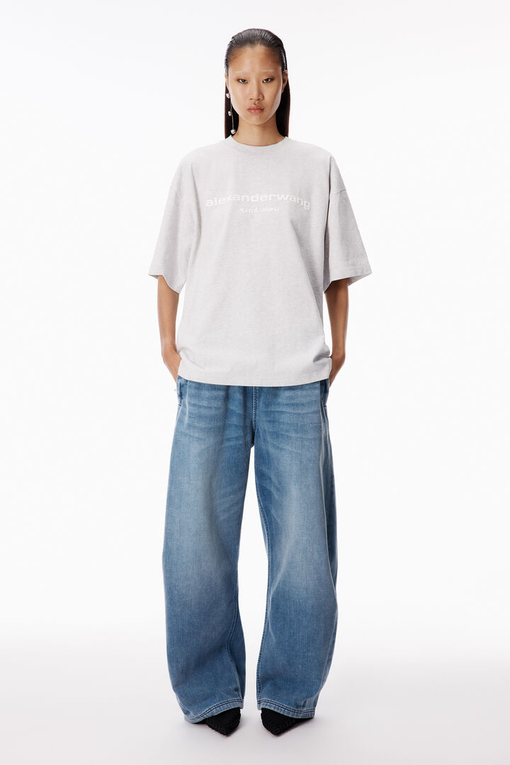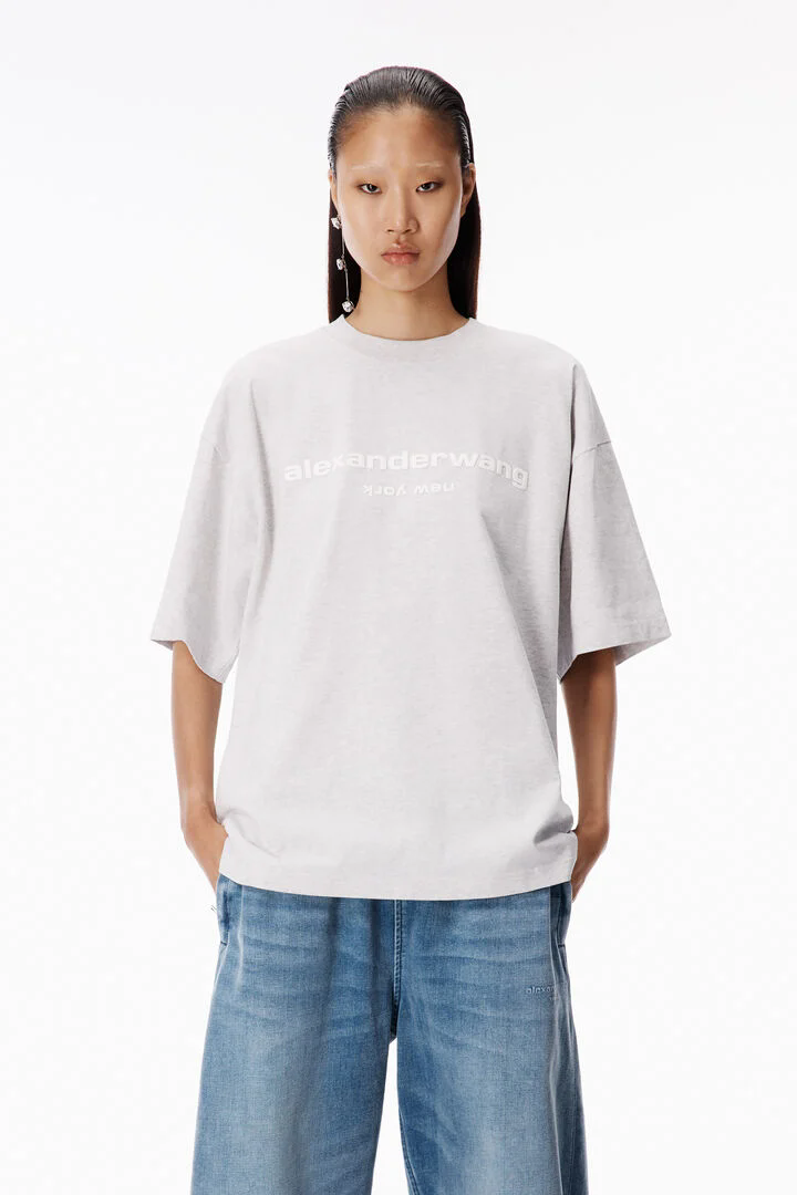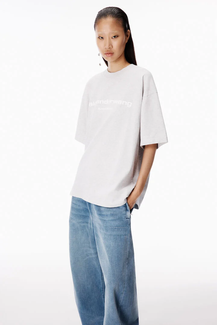 复古美式大tee,胸口徽标印花。情侣款宽松氛围感圆领t恤E032488