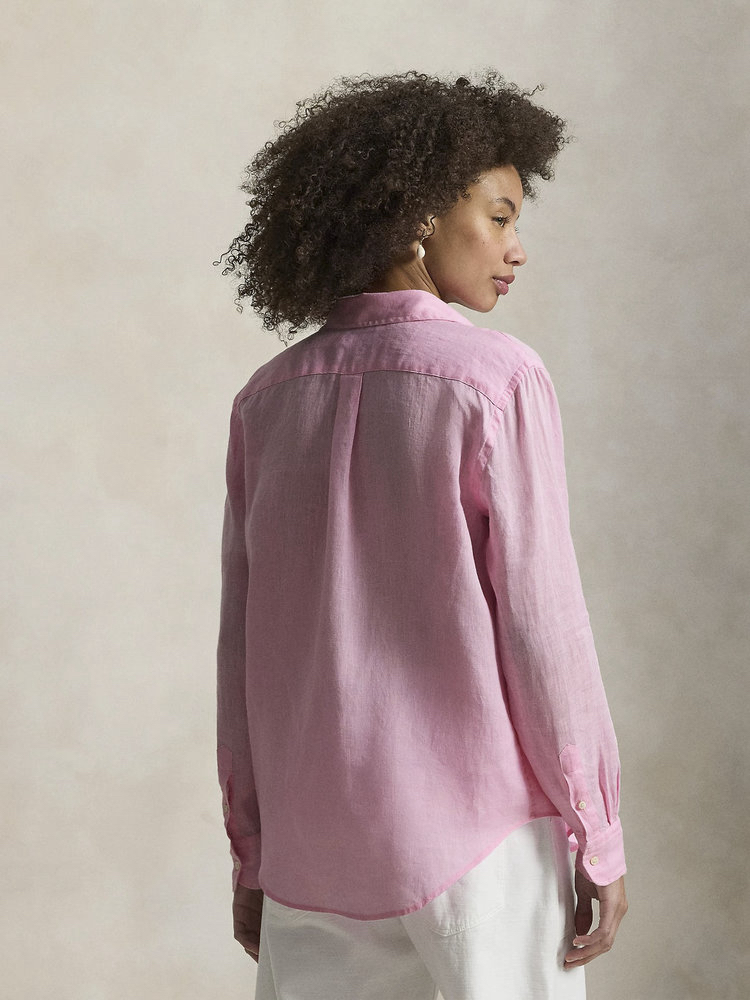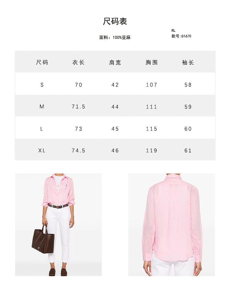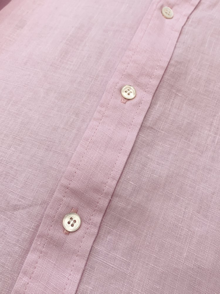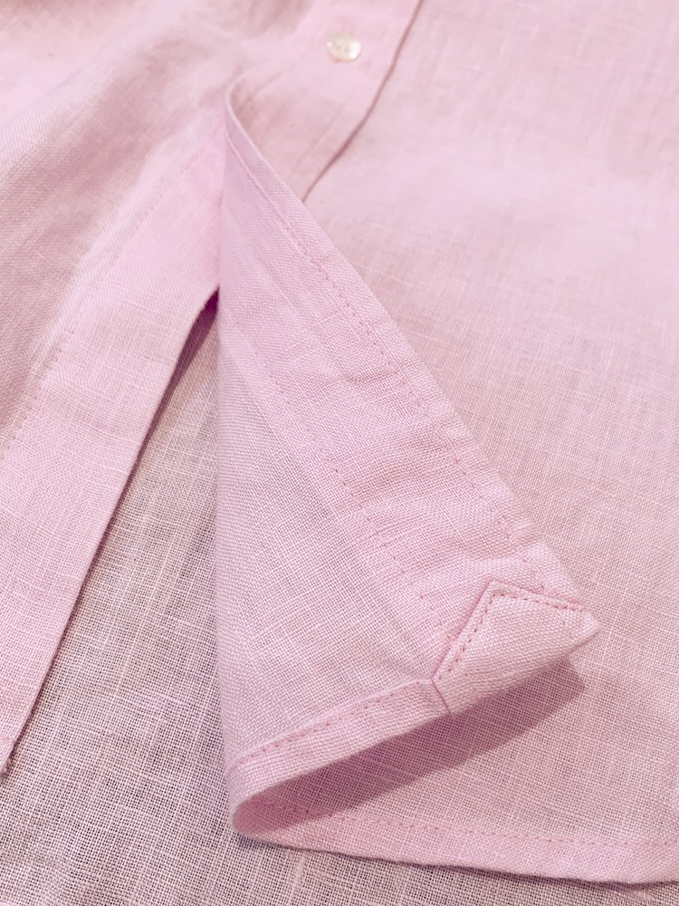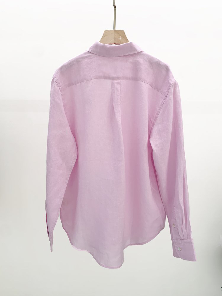 经典版型粉色亚麻衬衫 淡淡的樱花粉 不挑年龄的少女感 100%优质亚麻 吸湿速干 自然褶皱 好打理 宽松H版型 肩线自然垂落