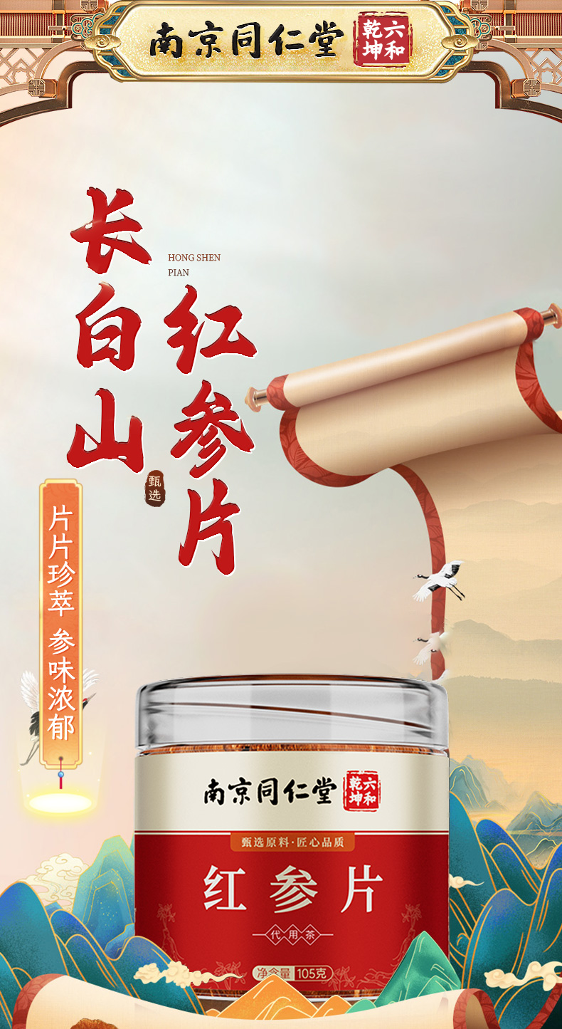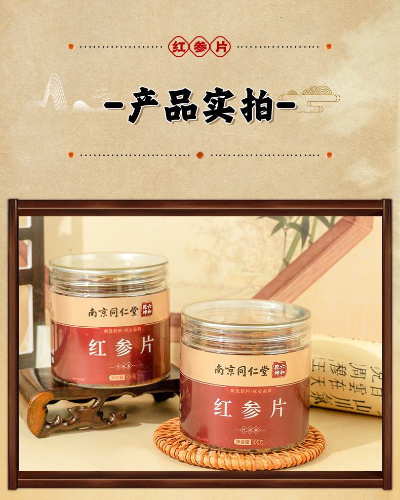 【南京同仁堂】红参片 乾坤六和 甄选长白山红参 产自吉林足龄老参 传统蒸晒主根切片 高皂苷菊花芯人参片100g/罐