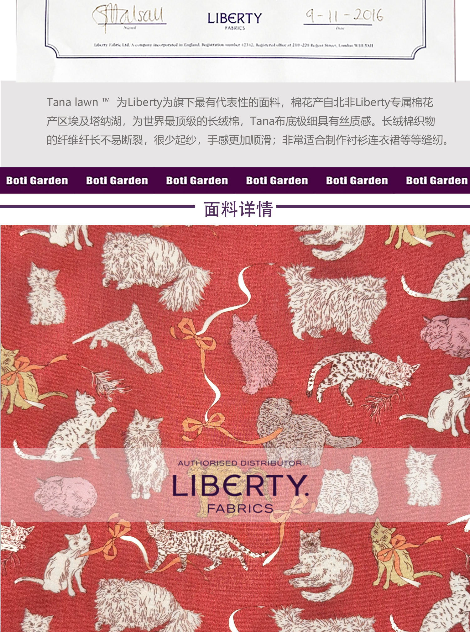 LT297B 科赫与艾托KOH & EITO Liberty塔纳棉 胶囊系列 猫咪 269元/米