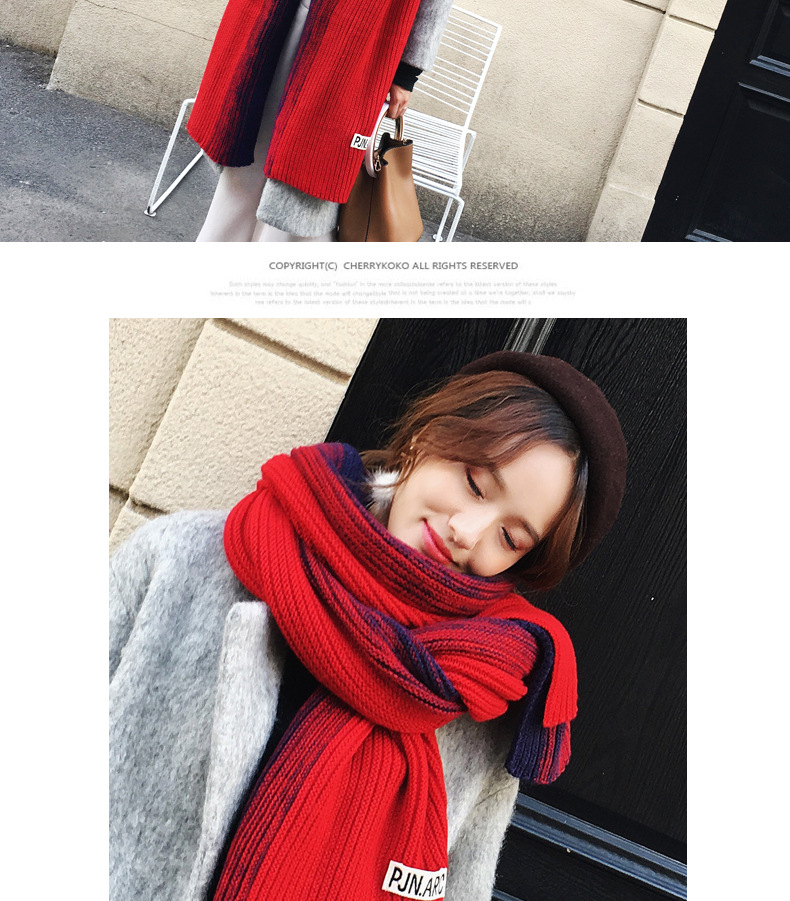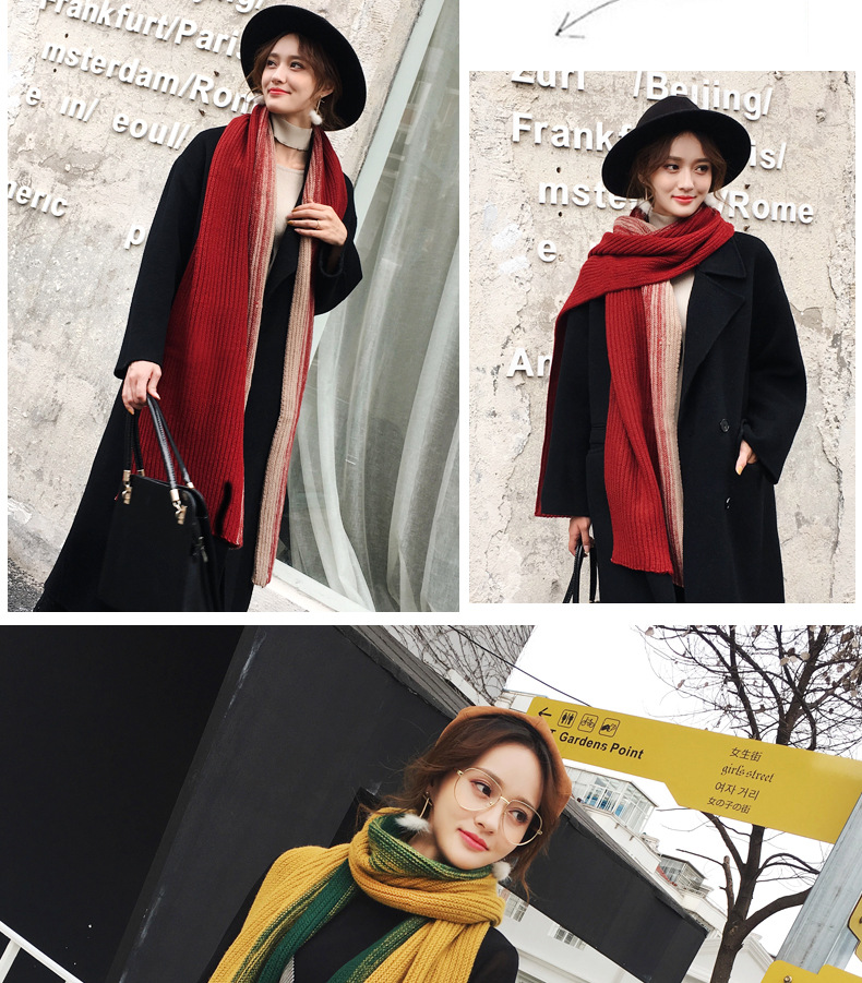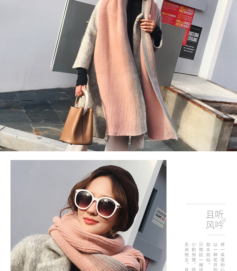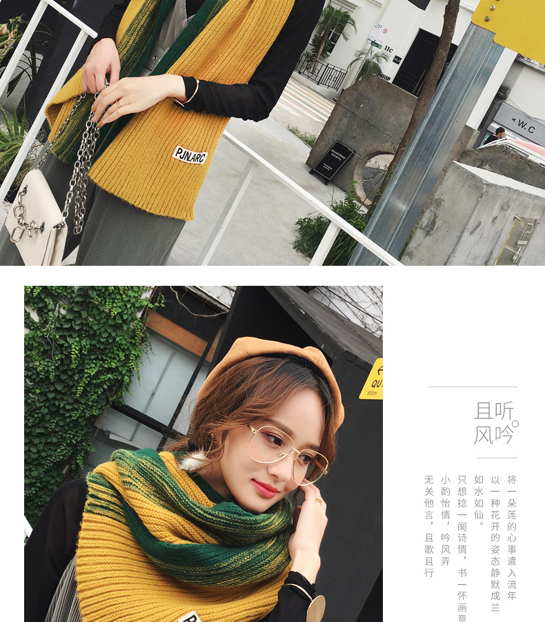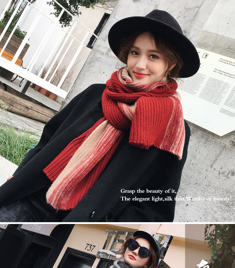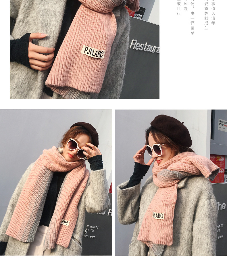 【围巾女】秋冬季新款渐变色加厚毛线长围巾时尚贴标针织保暖围脖女